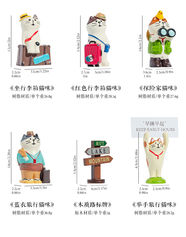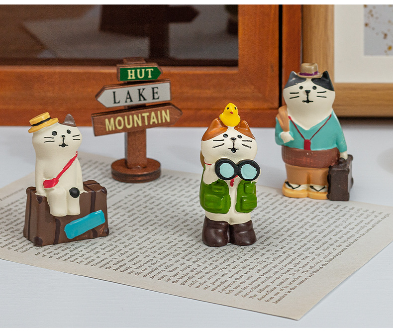 여행 고양이 치유 생일 선물 일본식 데스크탑 미니 작은 장식품 중앙 제어 수지 장식스토어 가기