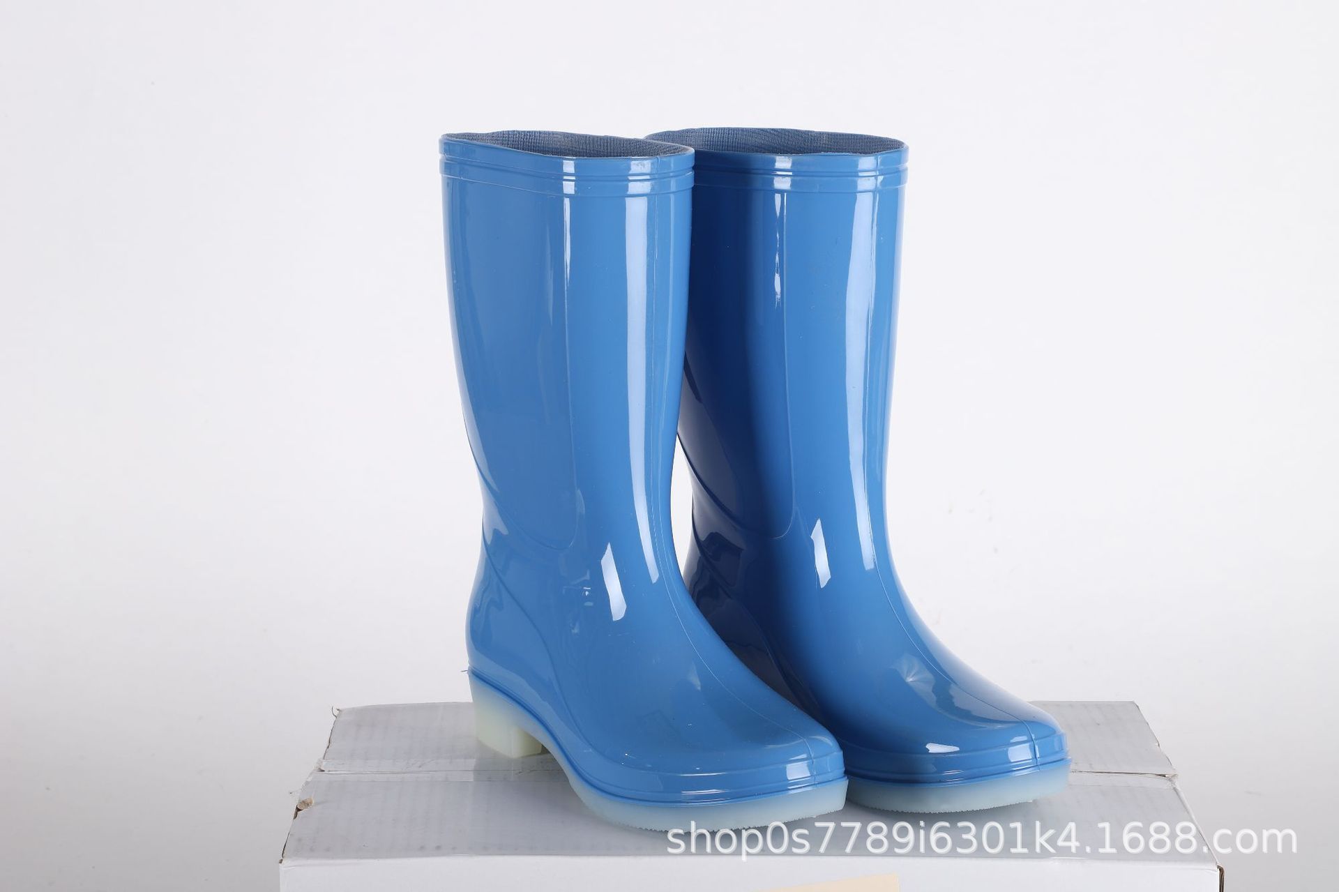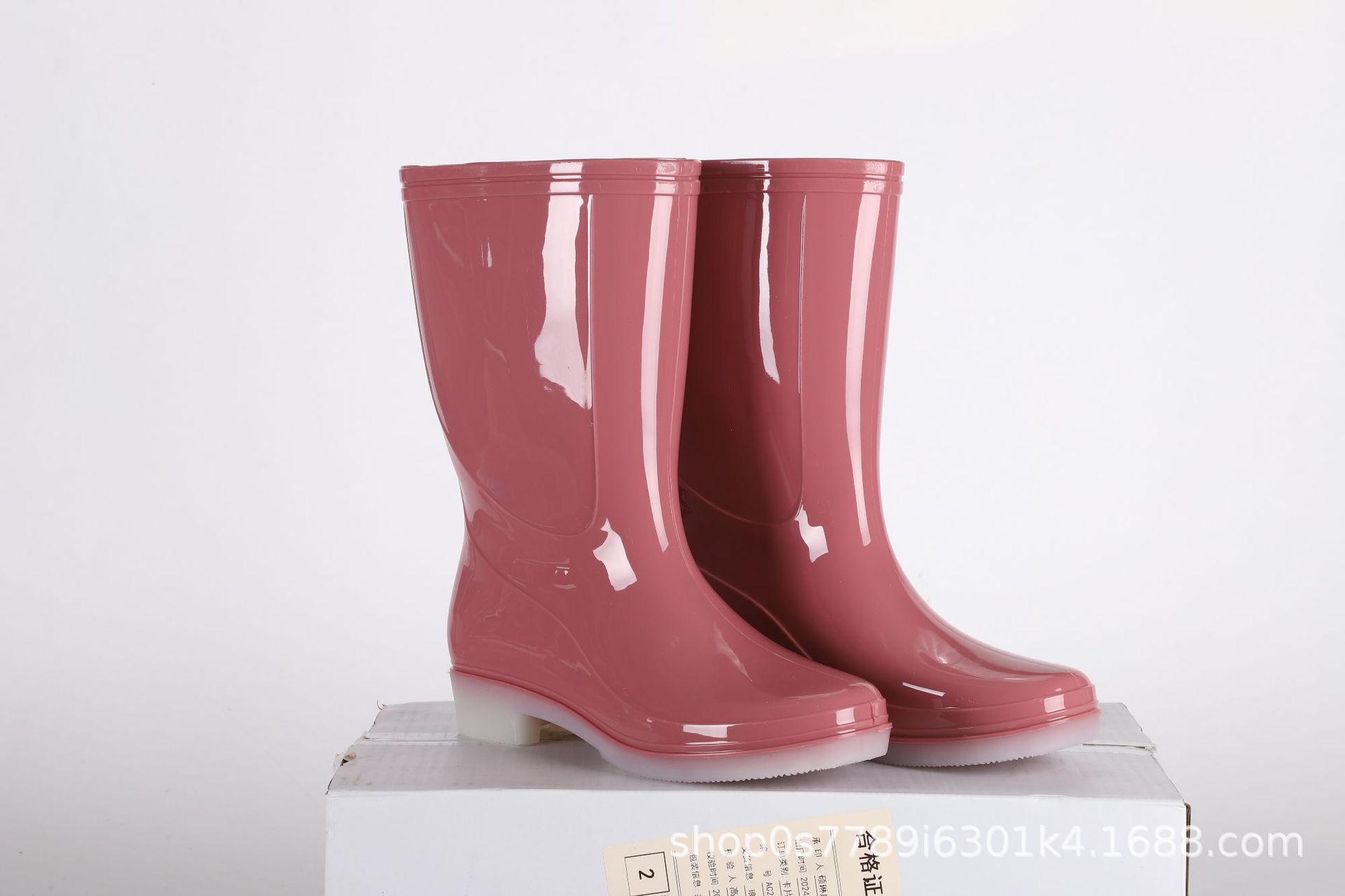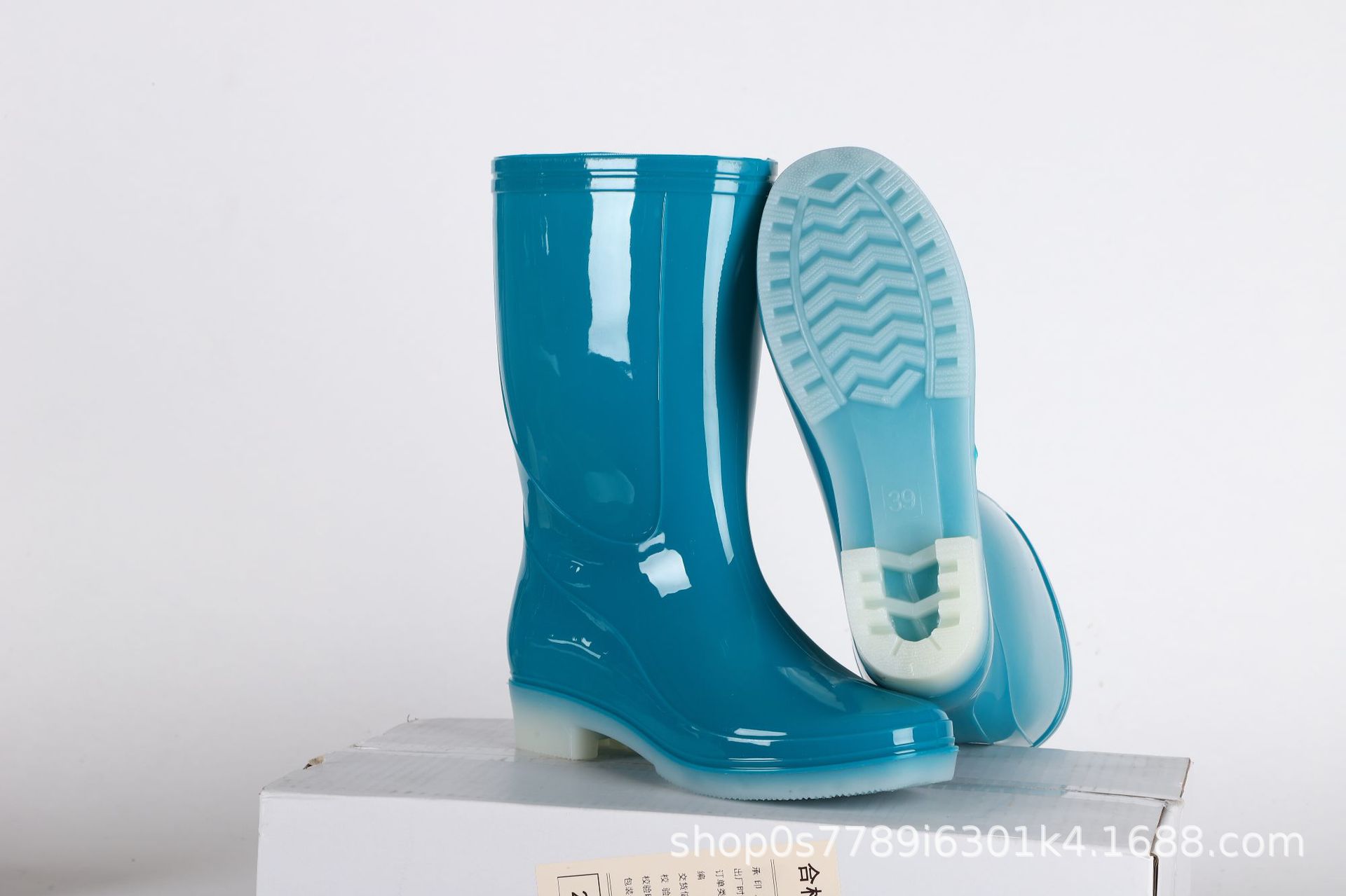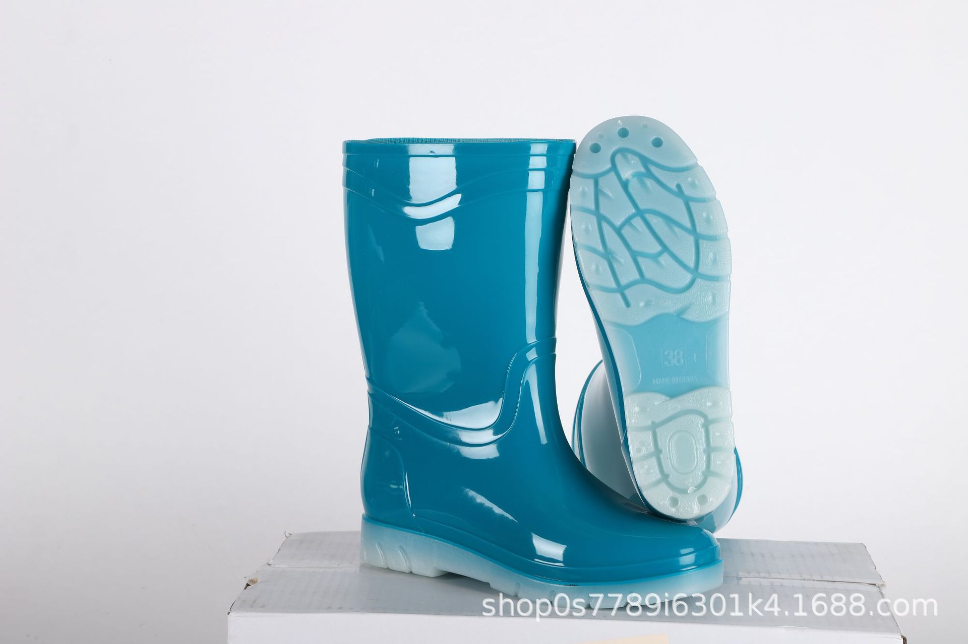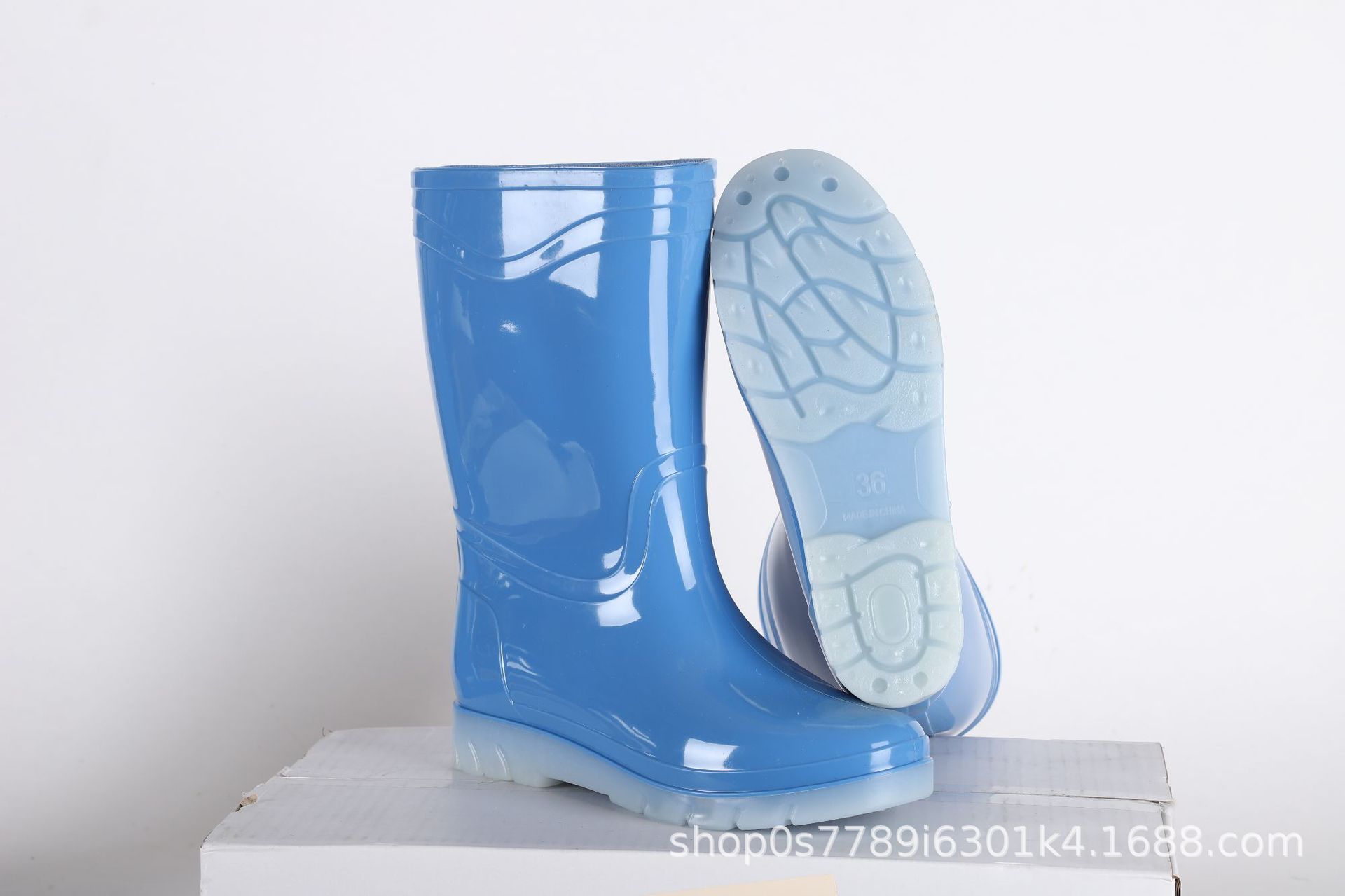 【매장 인기상품】도매 여성용 레인부츠 중간 길이 PVC 산업용 방수화 야외 작업장용 패셔너블하고 가벼움스토어 가기