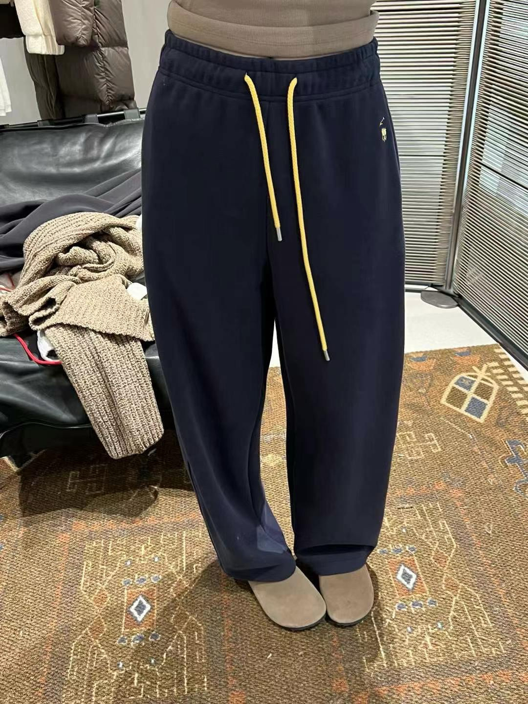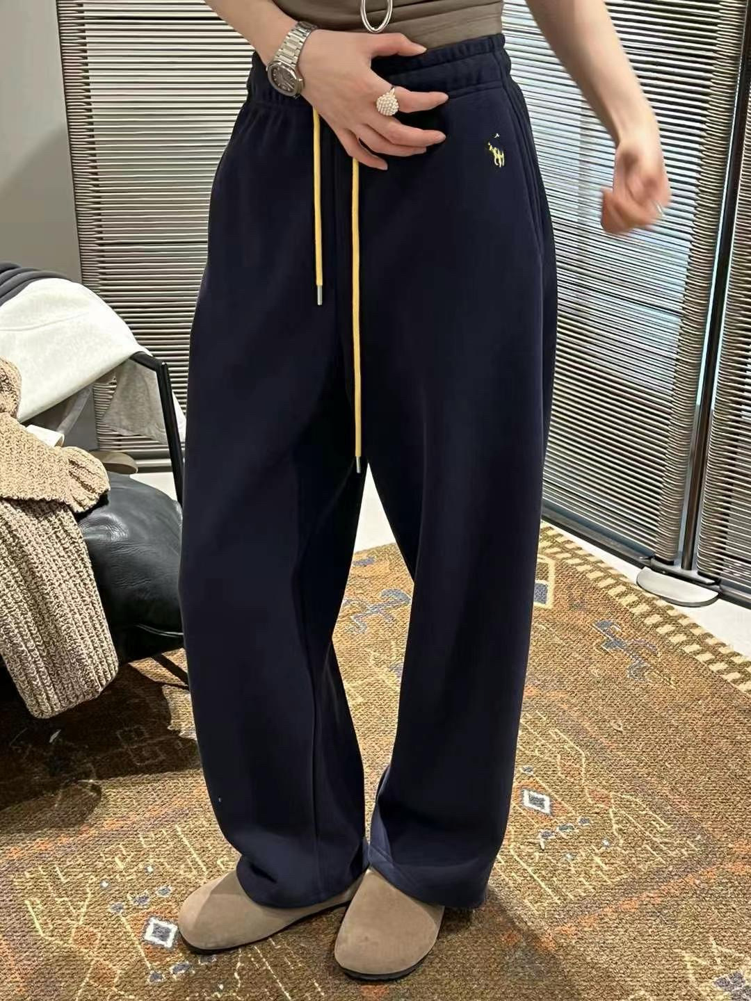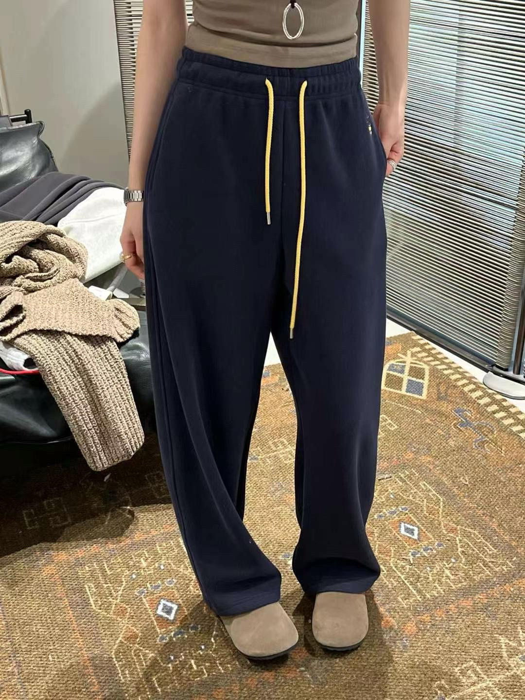 유럽 역 2024 겨울 새 기모 명암 Drawstring 자수 라벨 기모 넓은 다리 바지 캐주얼 마체테 바지스토어 가기