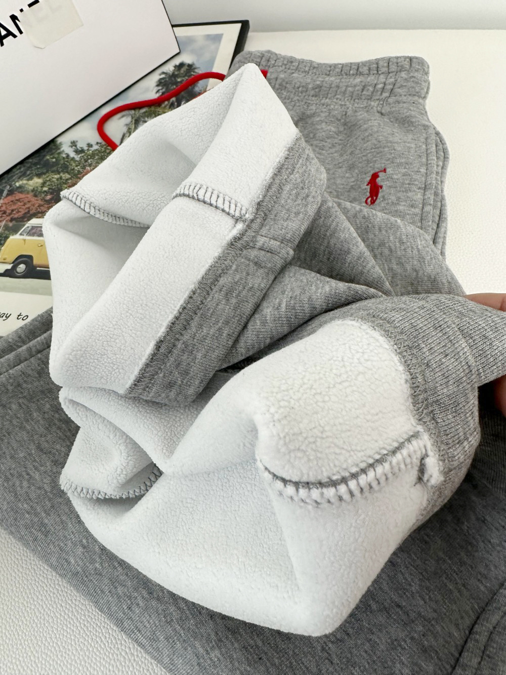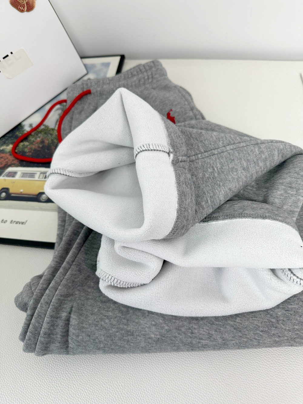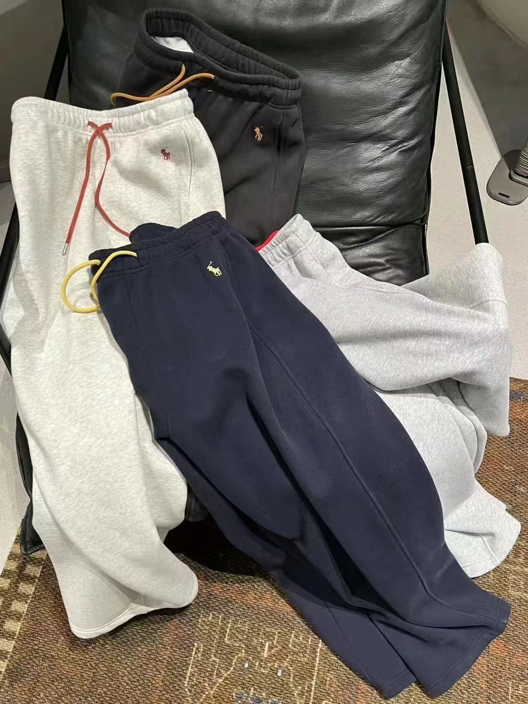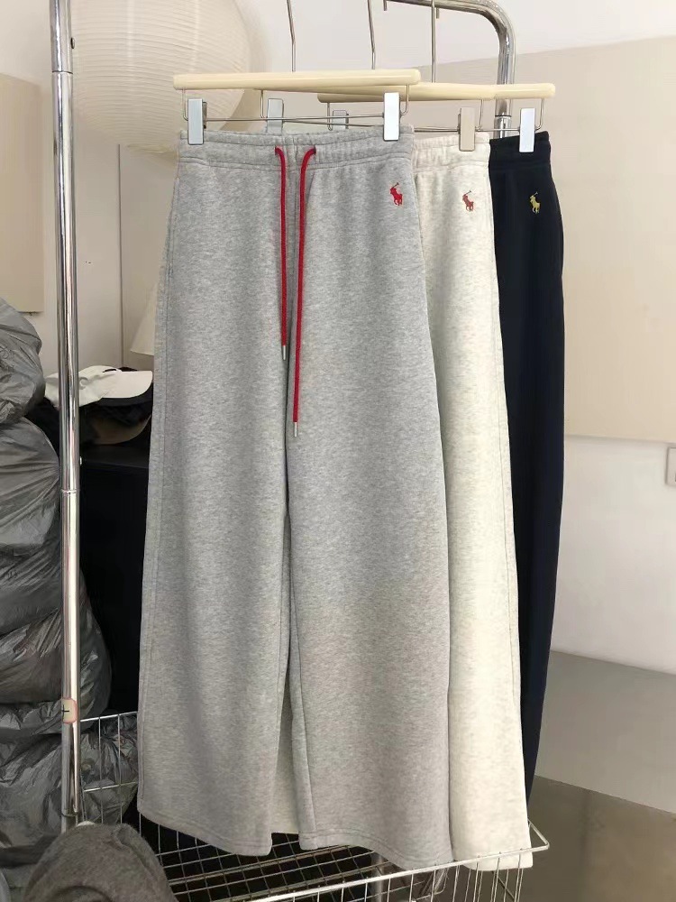 유럽 역 2024 겨울 새 기모 명암 Drawstring 자수 라벨 기모 넓은 다리 바지 캐주얼 마체테 바지스토어 가기