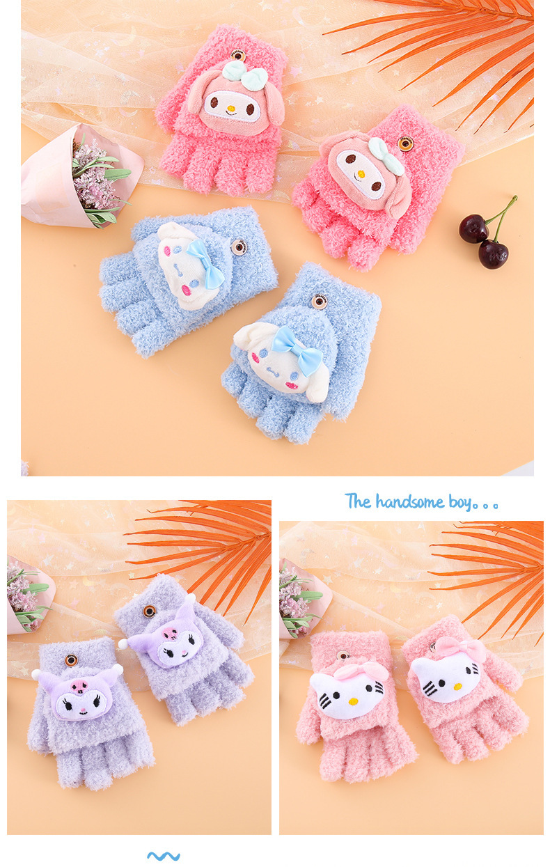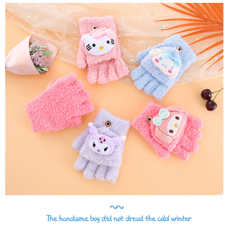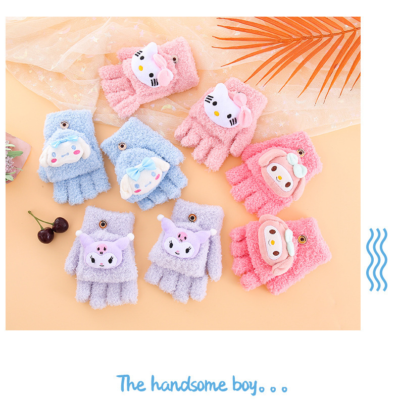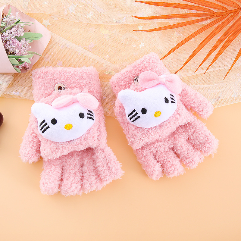 어린이 장갑 겨울 귀여운 만화 따뜻한 감기 방지 다섯 손가락 손가락 플립 6-12 초등학교 봉제 니트 핸드스토어 가기