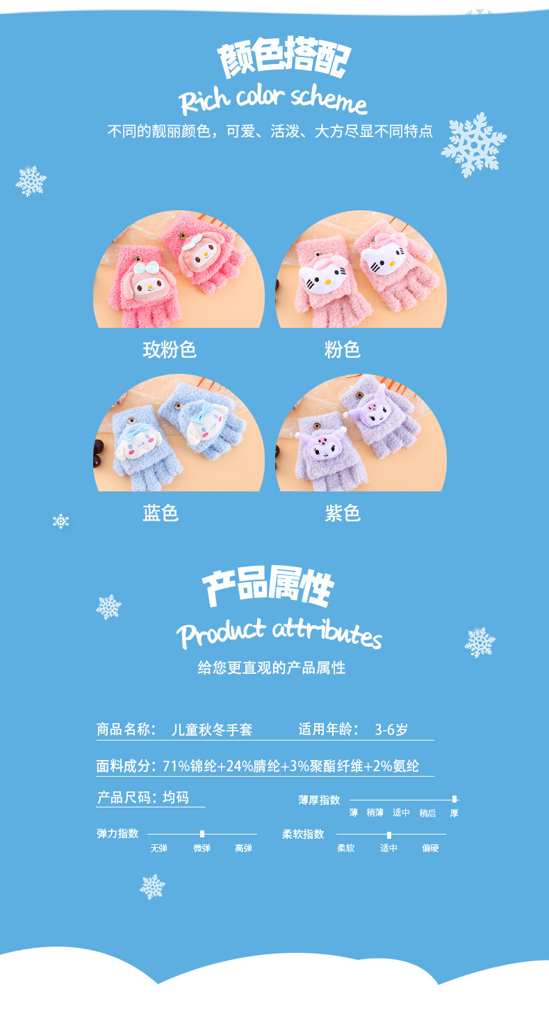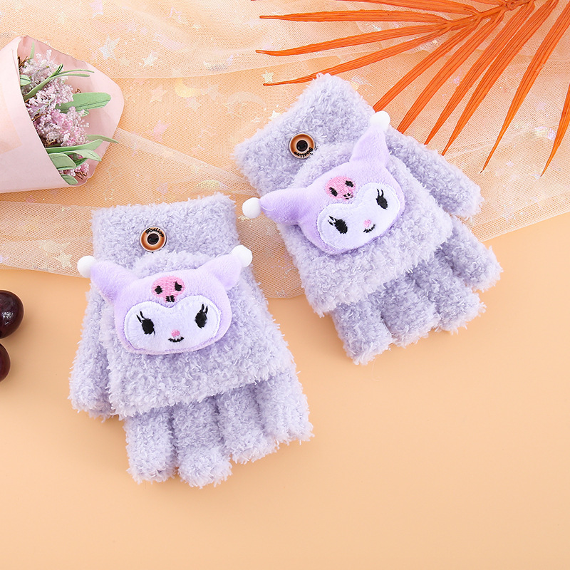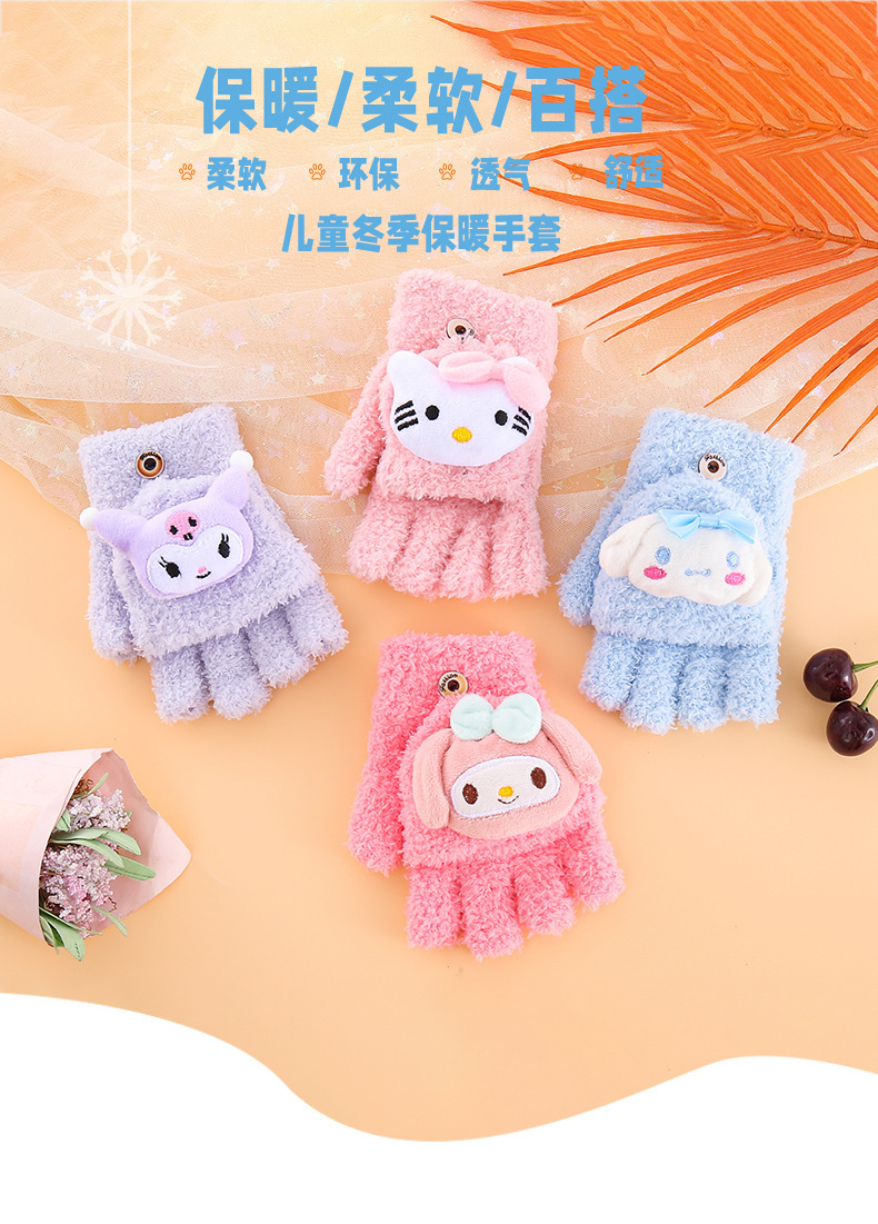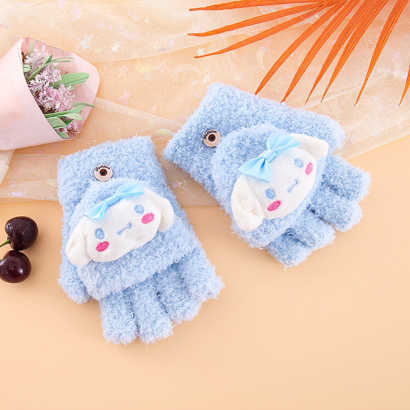 어린이 장갑 겨울 귀여운 만화 따뜻한 감기 방지 다섯 손가락 손가락 플립 6-12 초등학교 봉제 니트 핸드스토어 가기
