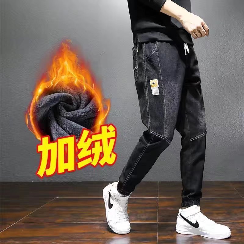 청바지 남자 기모 스키니 바지 가을과 겨울 따뜻한 겨울 바지 유행 브랜드 플러스 사이즈 중학교 남자 바지 겨울스토어 가기