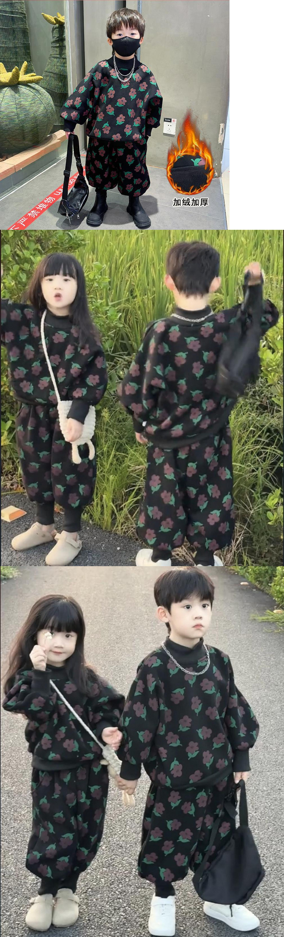 새 형제 자매 꽃 패션 캐주얼 한국 긴 소매 어린이 세트 겨울 세련된 느슨한 소년 트렌디스토어 가기
