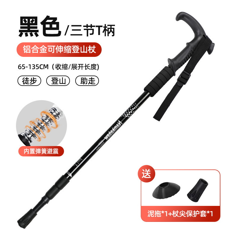 • [업그레이드된 경량 3단 텔레스코픽 모델] 곡선형 핸들 블랙|65-135cm|충격 흡수 시스템 내장