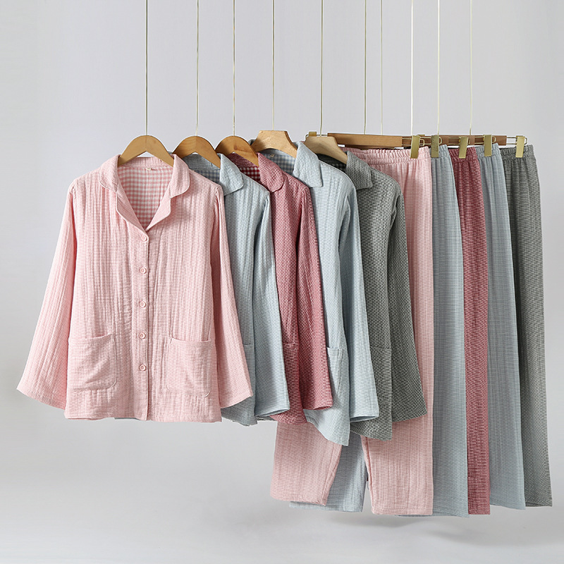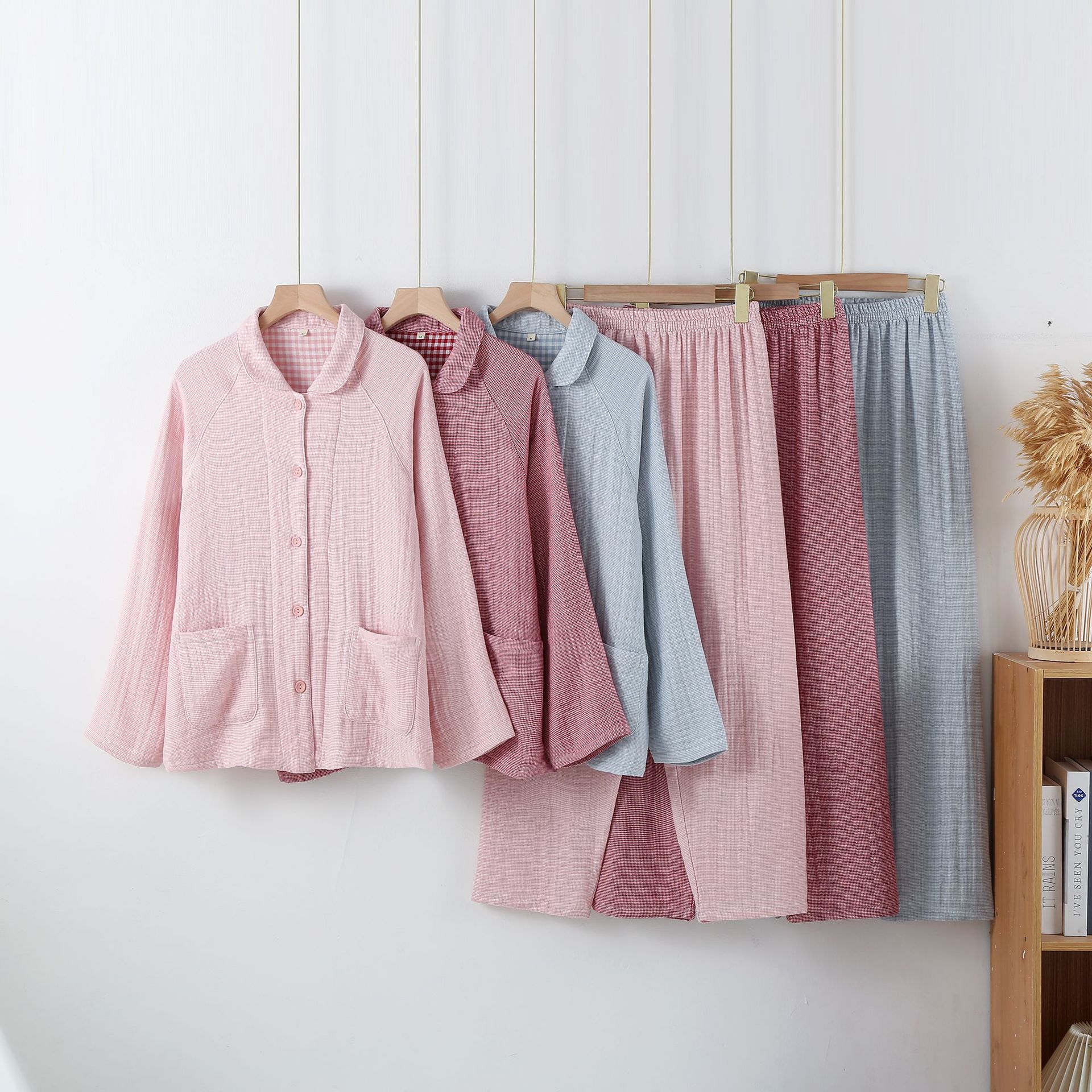 가을과 겨울에 두꺼운 면화 남성과 여성 잠옷을 세트 새로운 테두리 면 4 층 거즈 애호가의 홈 의류