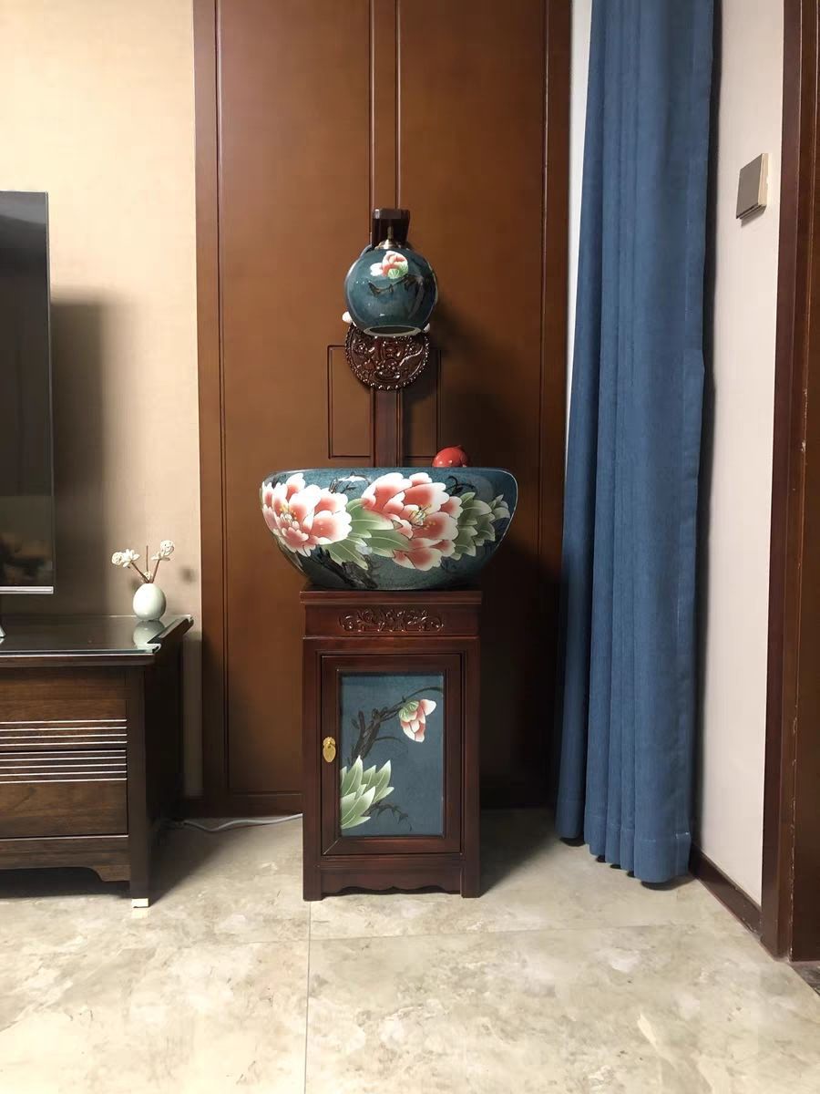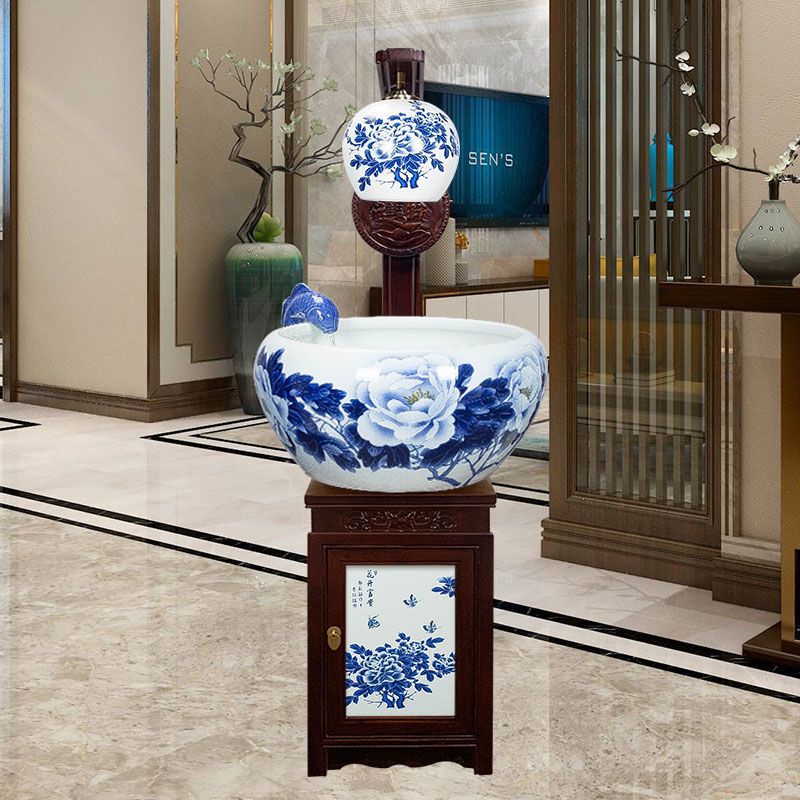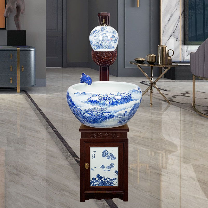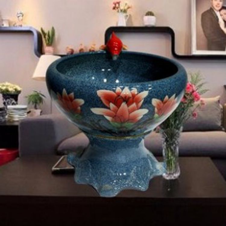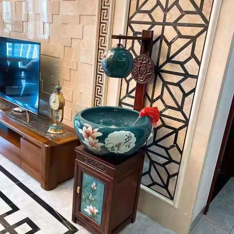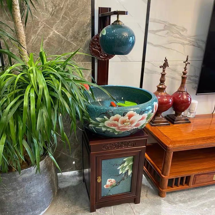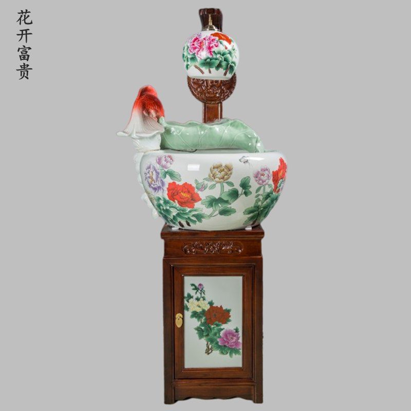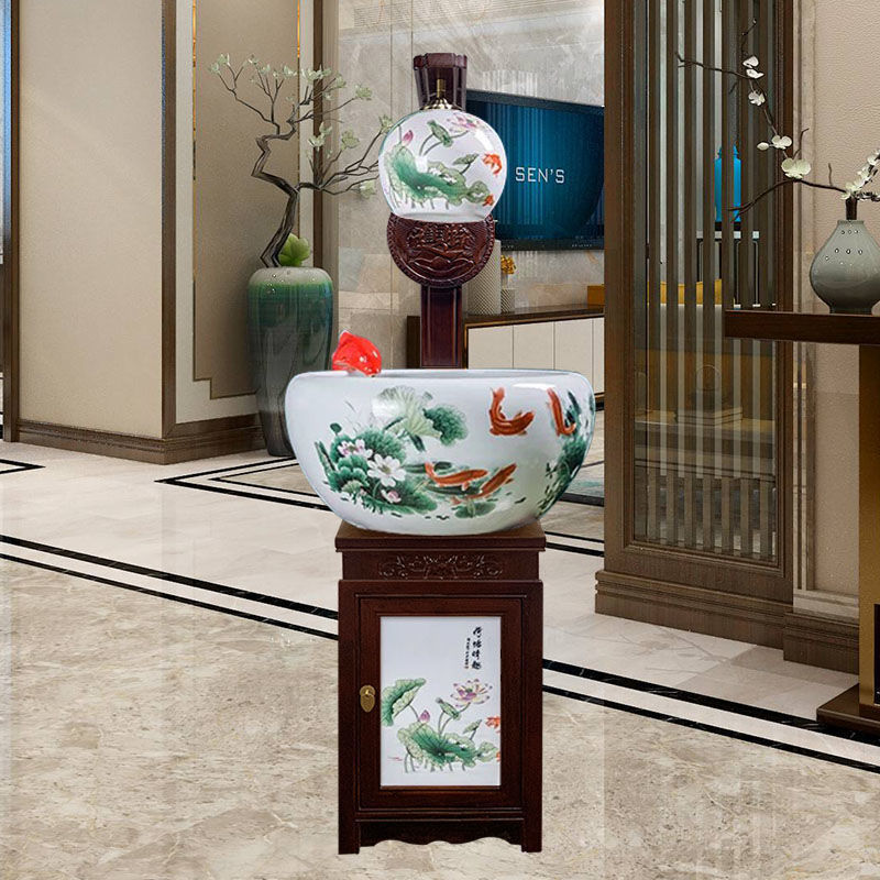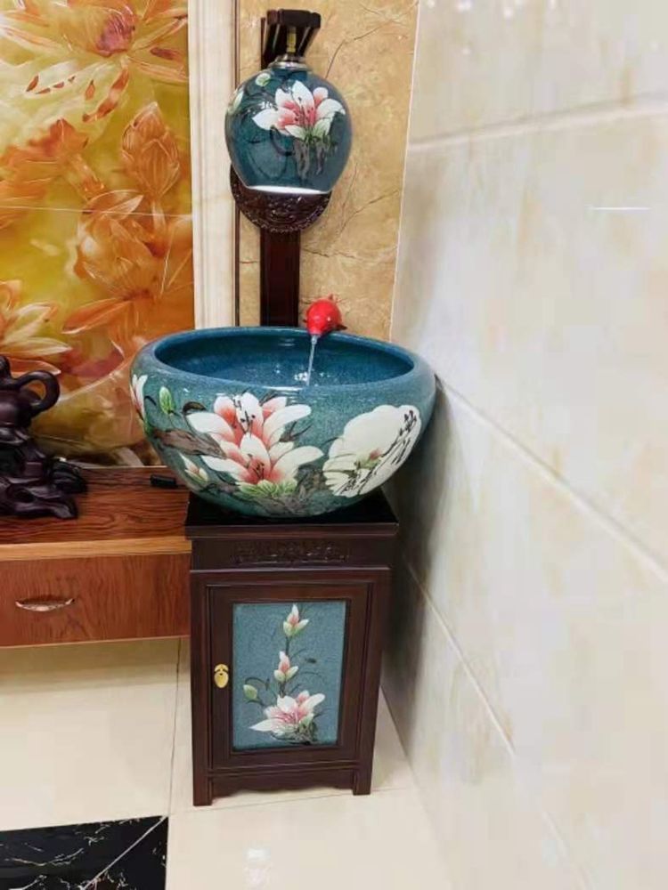 절묘한 목련 난초 세라믹 캐비닛 금붕어 탱크 바닥 서 세라믹 생선 냄비 바람 물 탱크 가구 순환 물 스프레이 거실