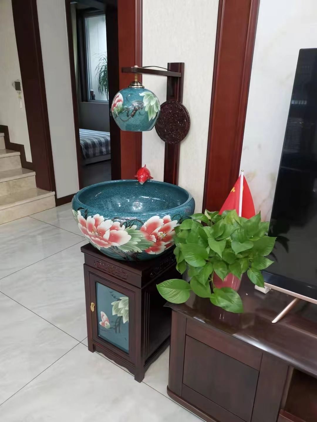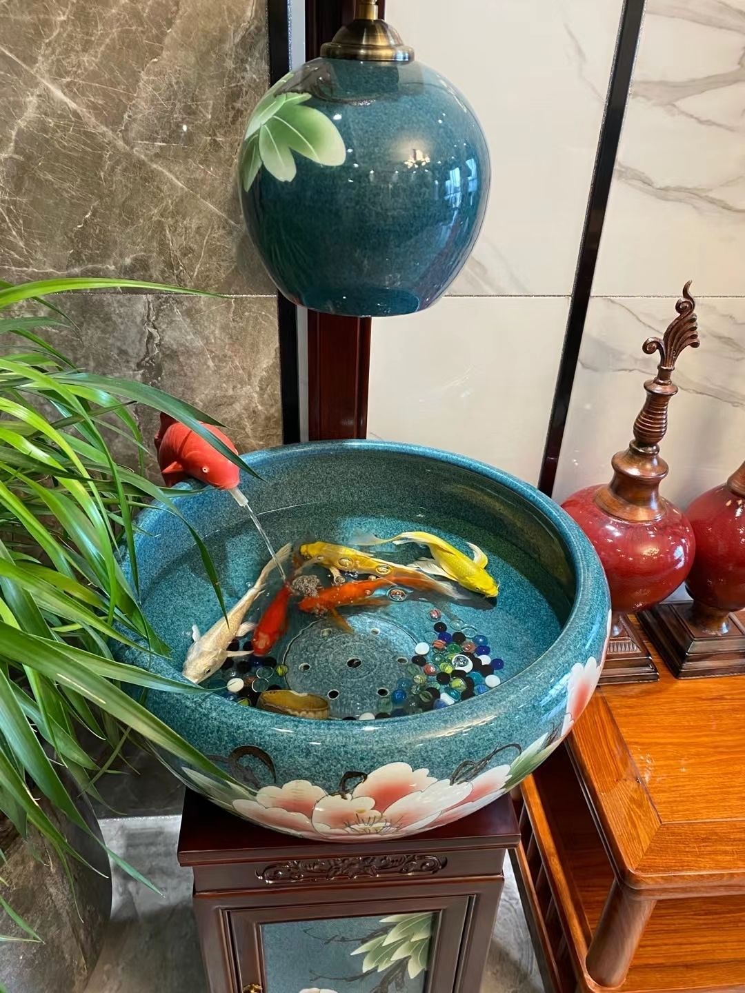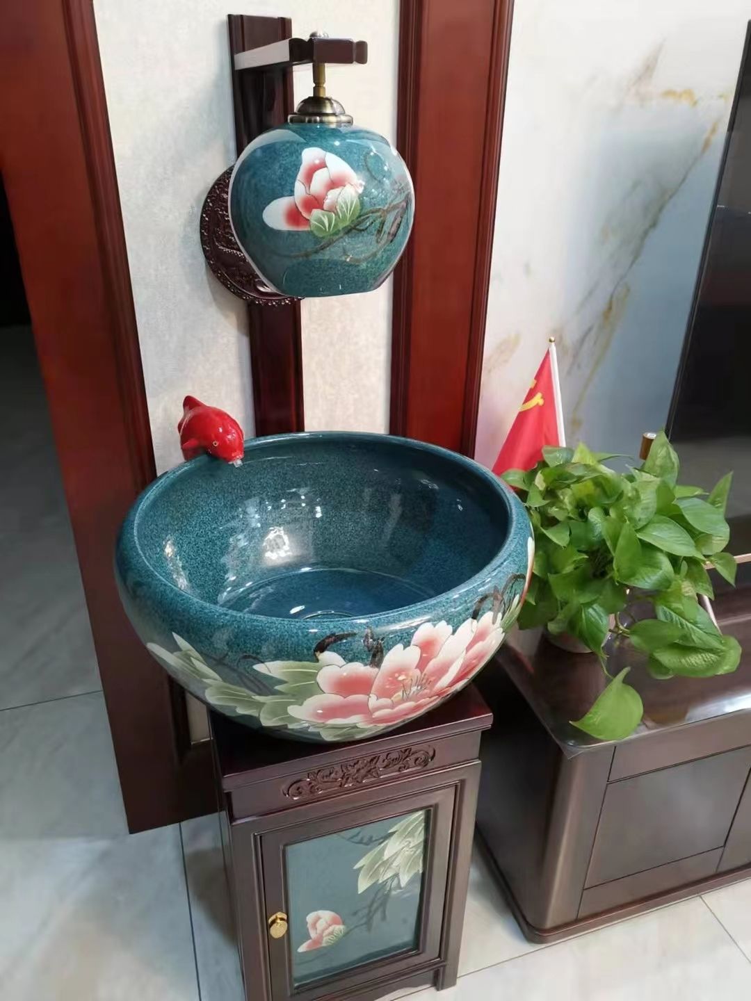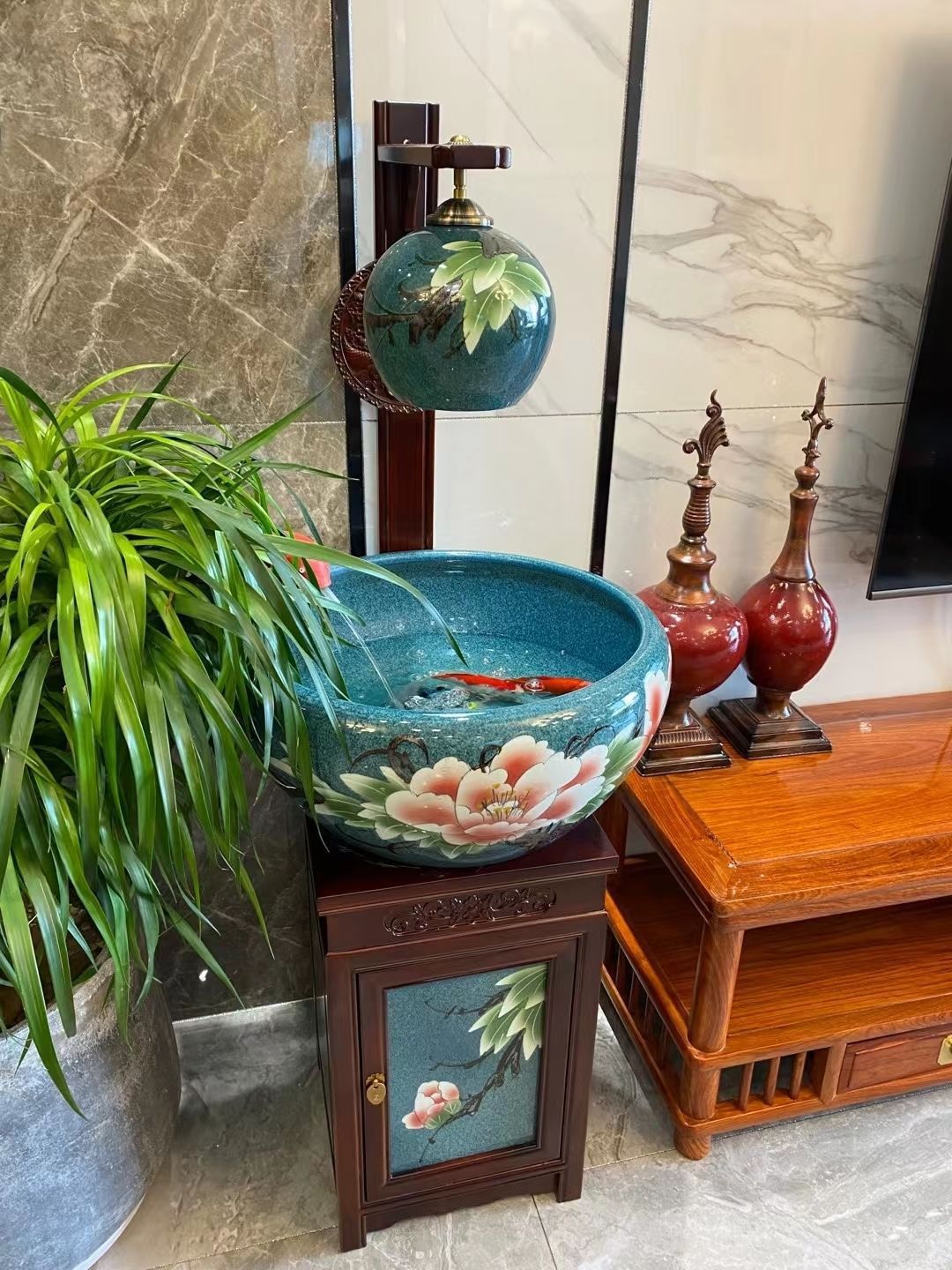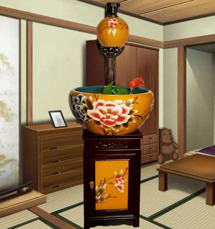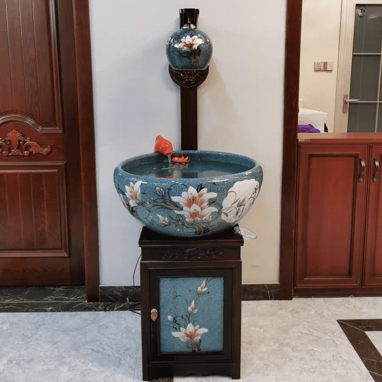 절묘한 목련 난초 세라믹 캐비닛 금붕어 탱크 바닥 서 세라믹 생선 냄비 바람 물 탱크 가구 순환 물 스프레이 거실