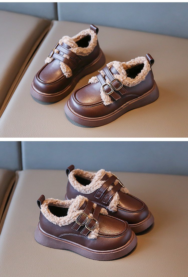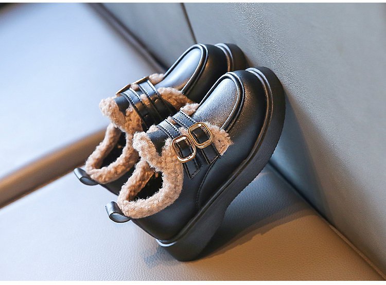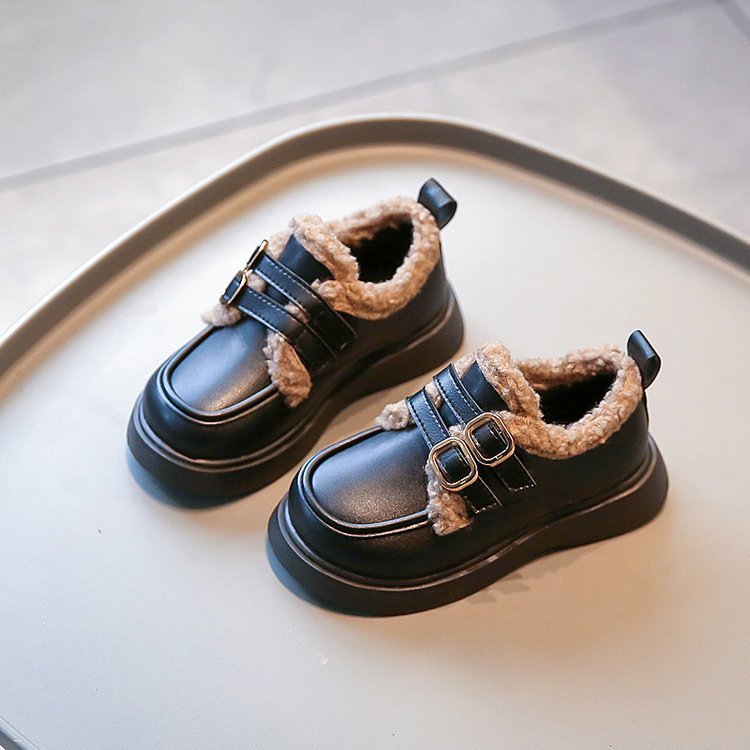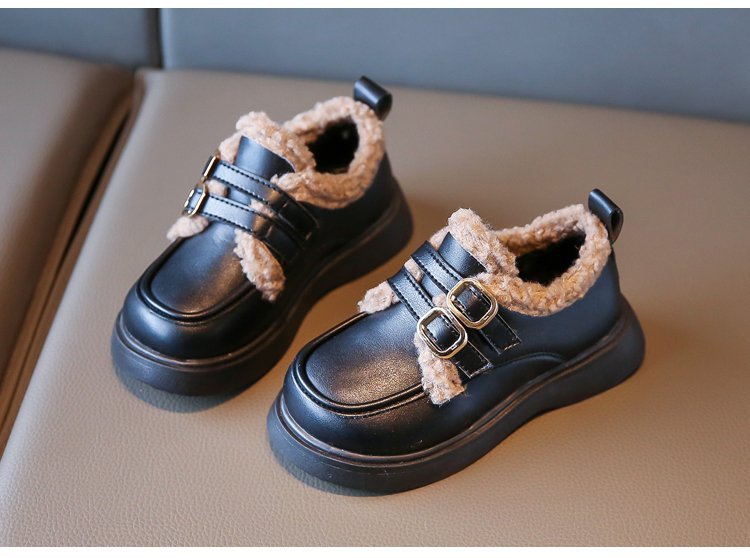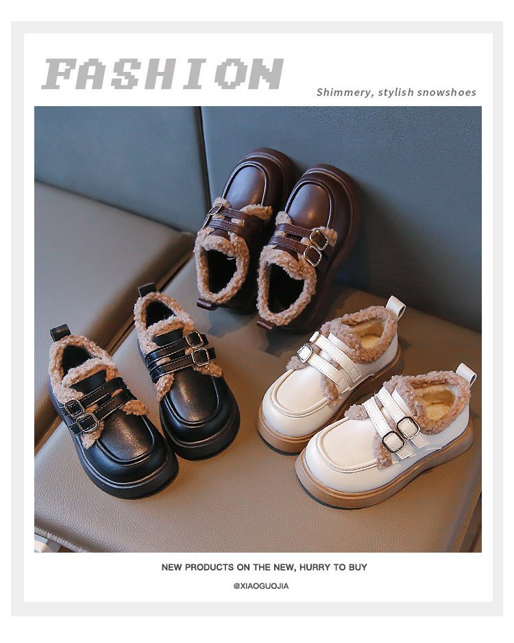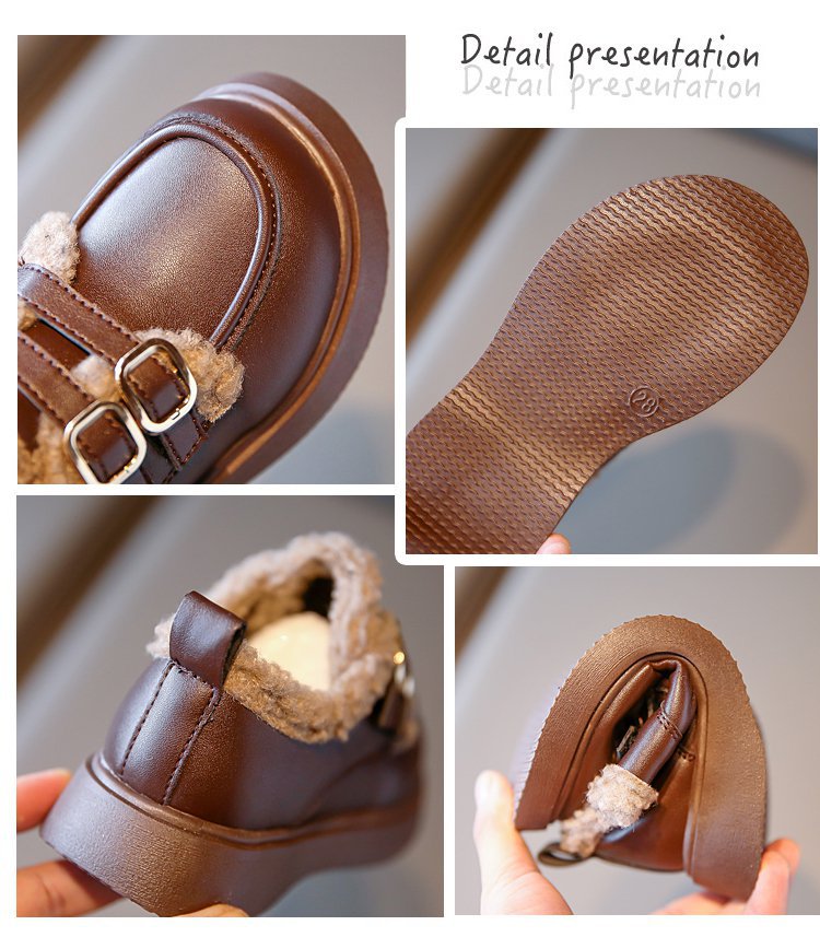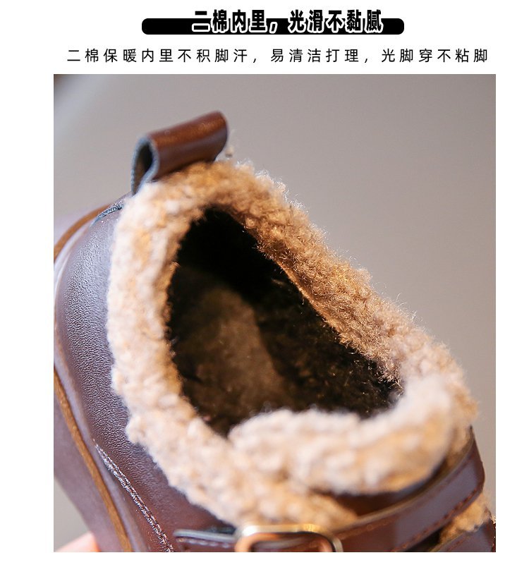 소녀 코튼 신발 기모 공주 신발 2024 가을과 겨울 영국 스타일 따뜻한 콩 신발 두껍게 부드러운 바닥 작은 소녀 가죽 신발