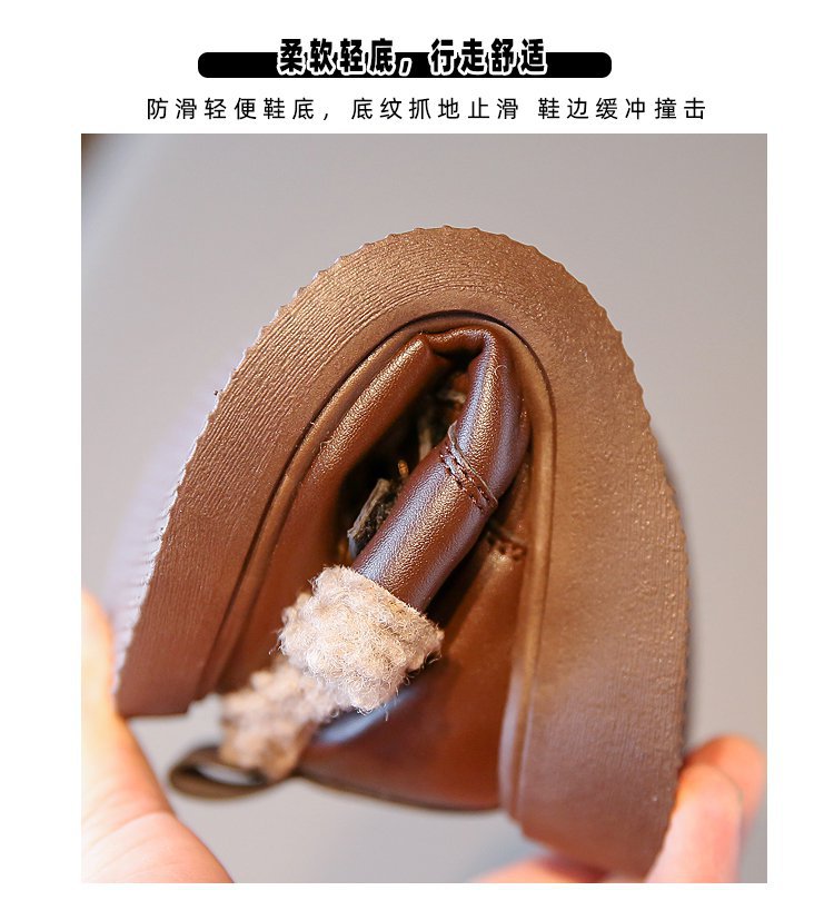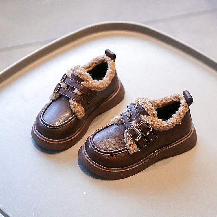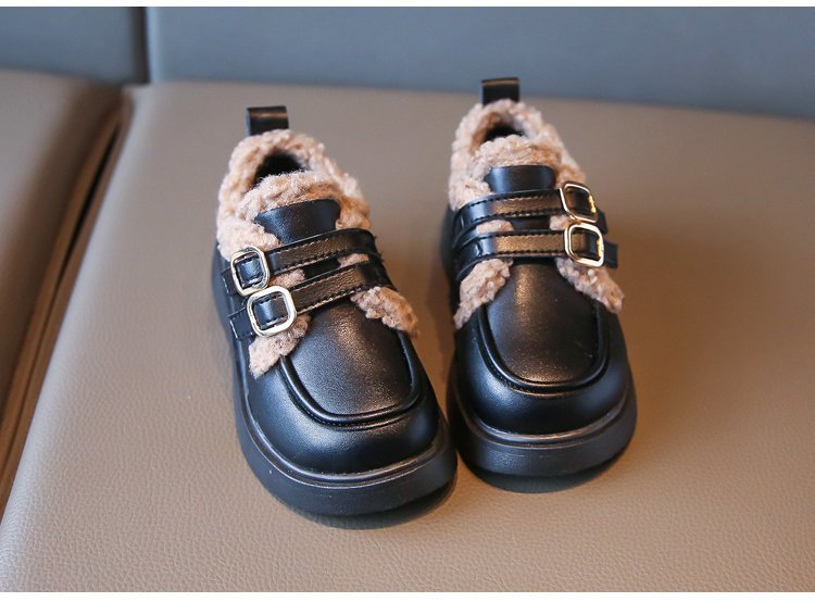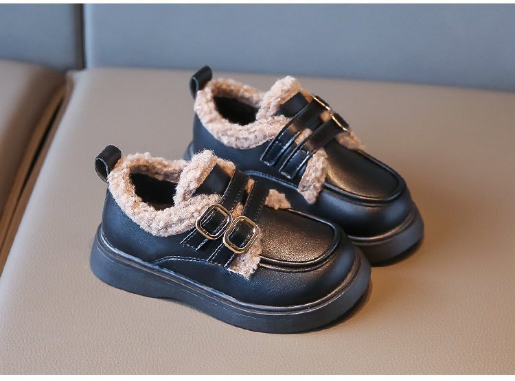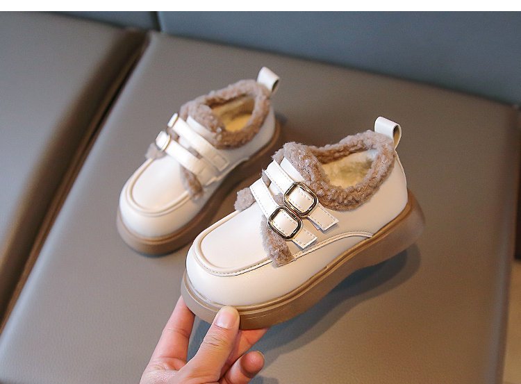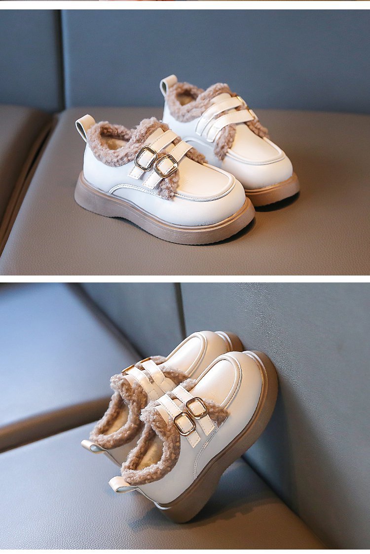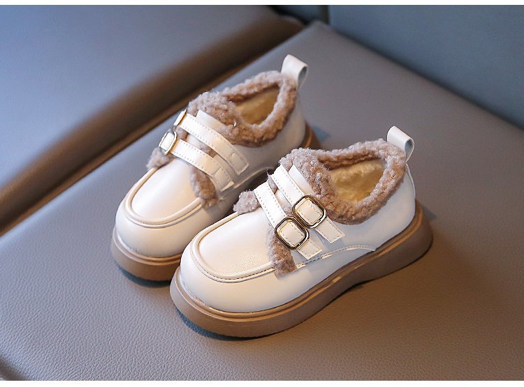 소녀 코튼 신발 기모 공주 신발 2024 가을과 겨울 영국 스타일 따뜻한 콩 신발 두껍게 부드러운 바닥 작은 소녀 가죽 신발