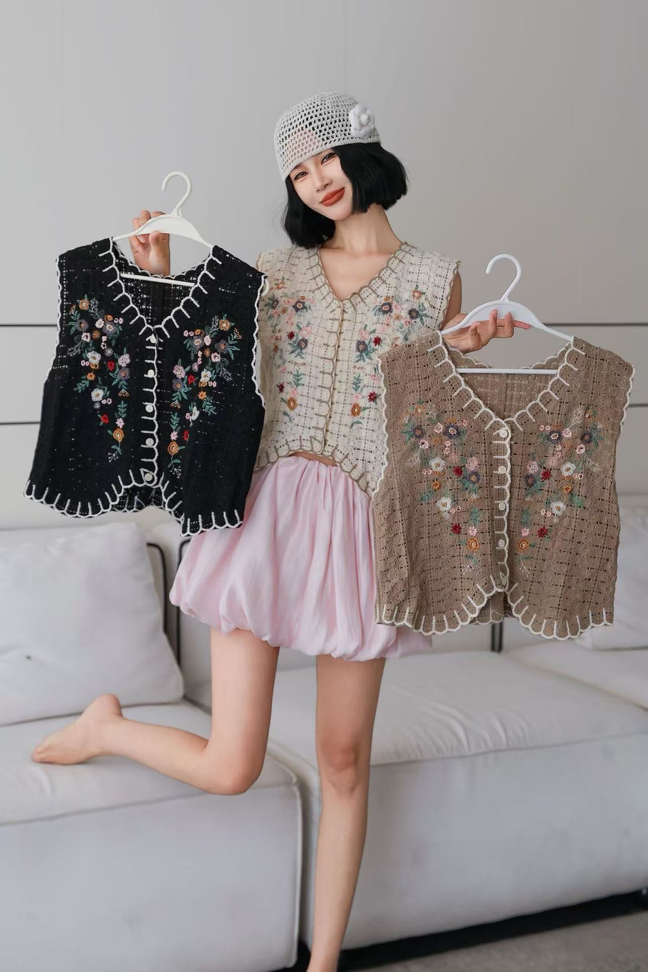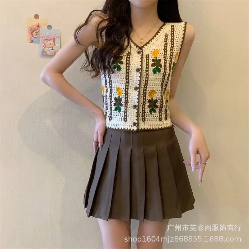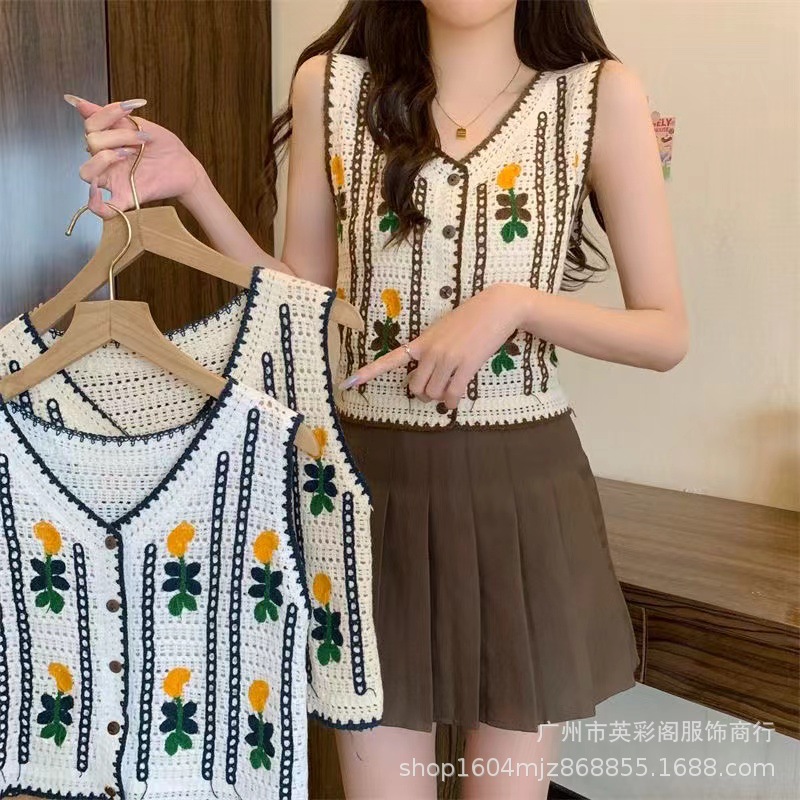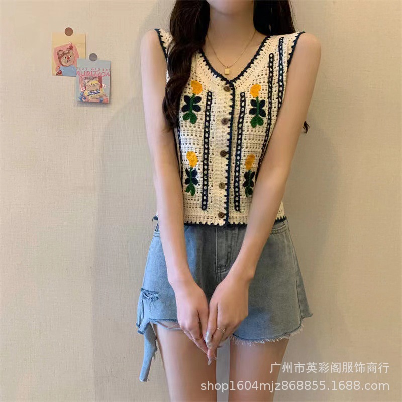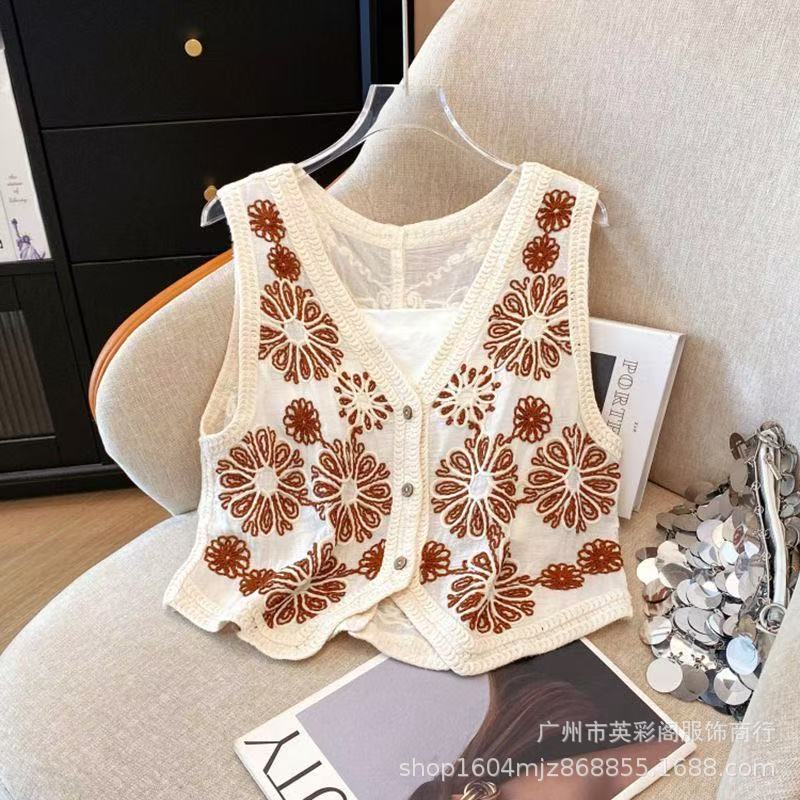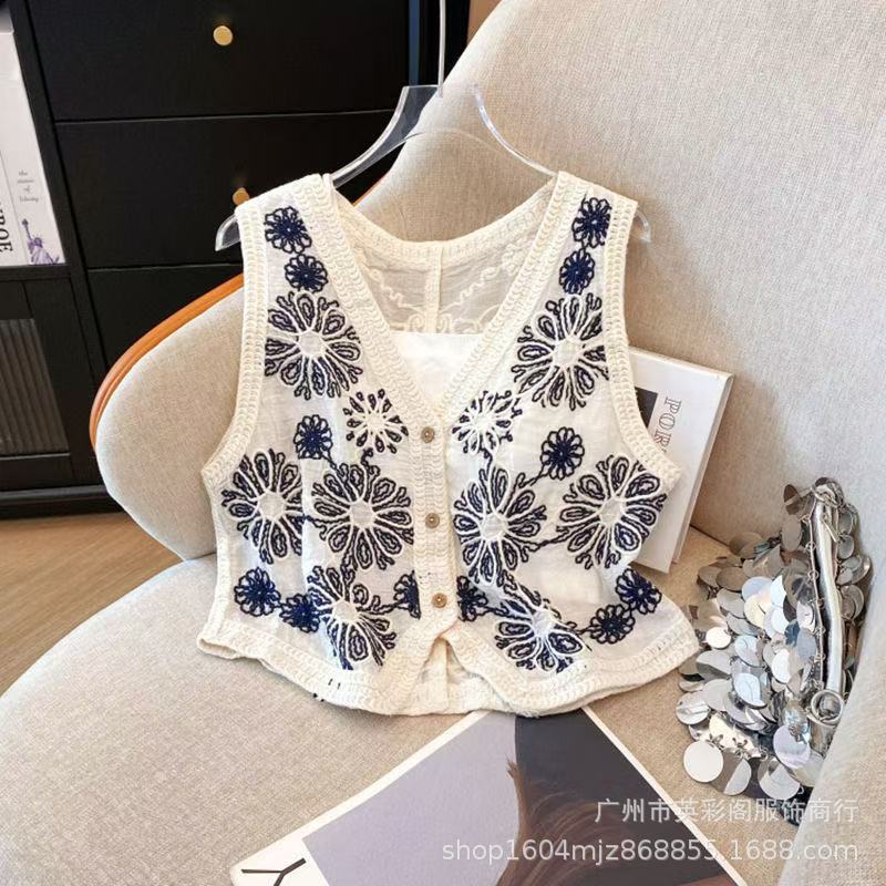 여름 새로운 디자인 감각 중공업 자카드 국가 스타일 작은 조끼 여성 휴가 스타일 스택 올매치 루즈 탑스토어 가기