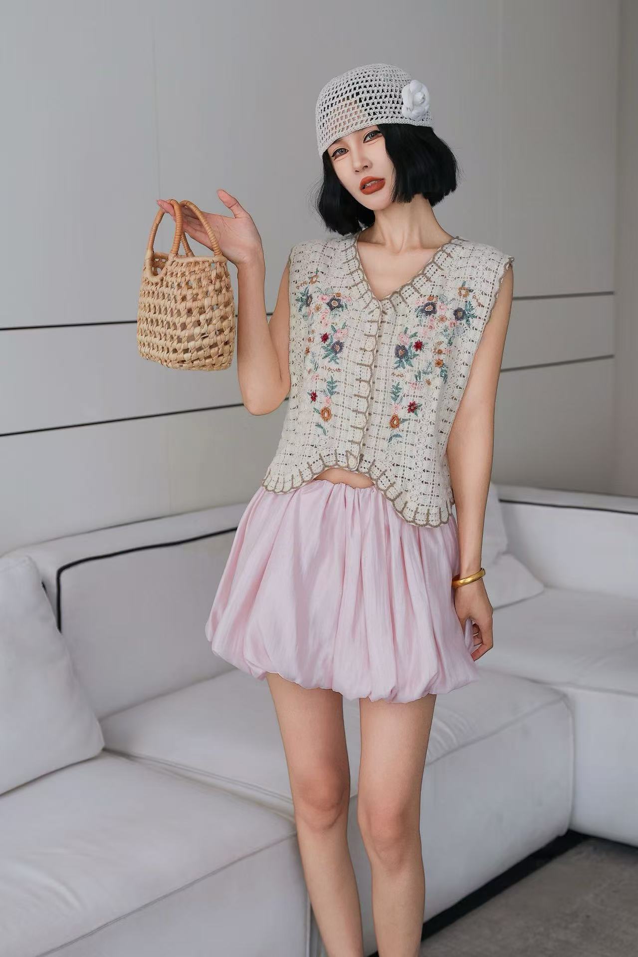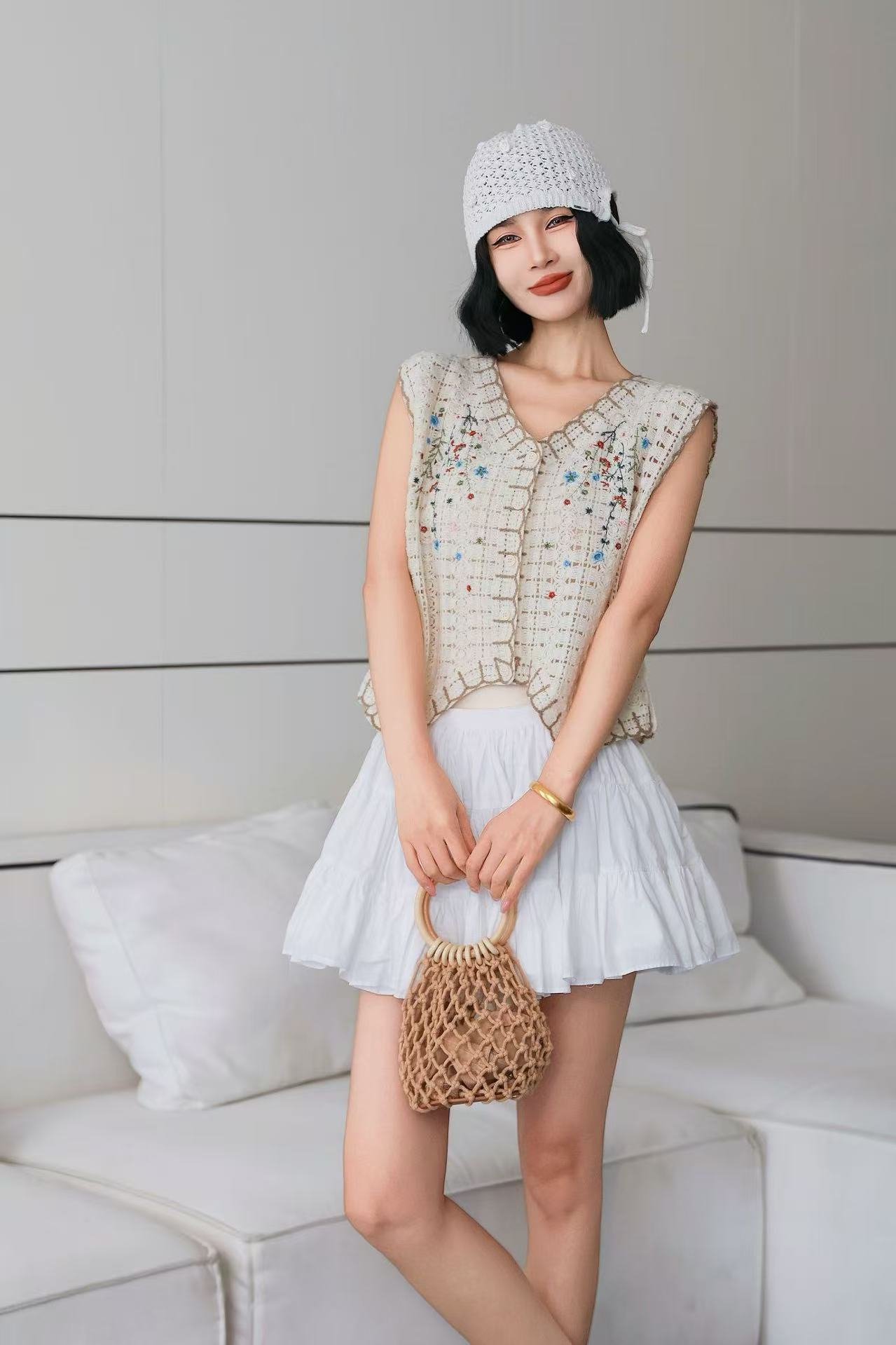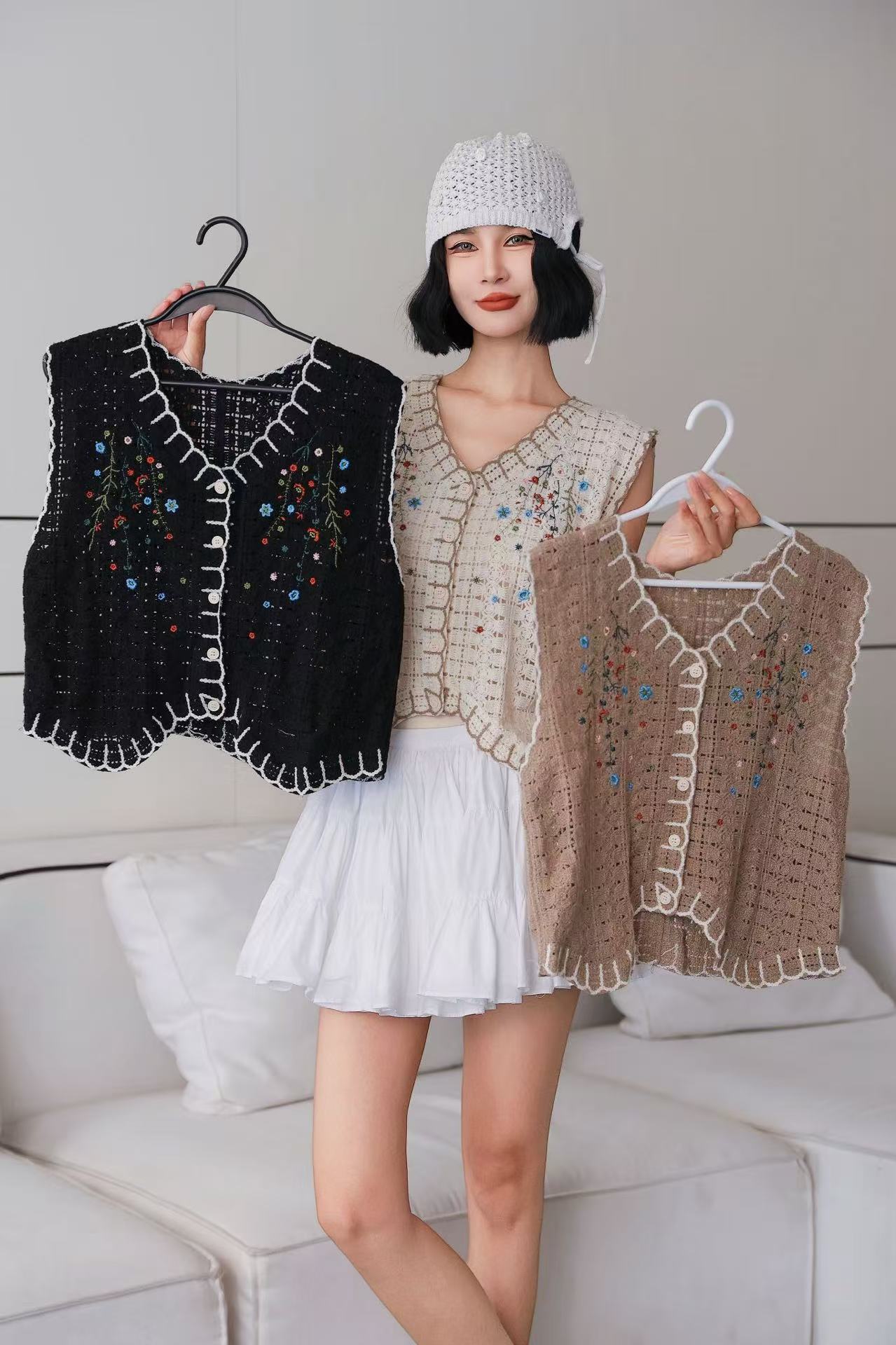 여름 새로운 디자인 감각 중공업 자카드 국가 스타일 작은 조끼 여성 휴가 스타일 스택 올매치 루즈 탑스토어 가기