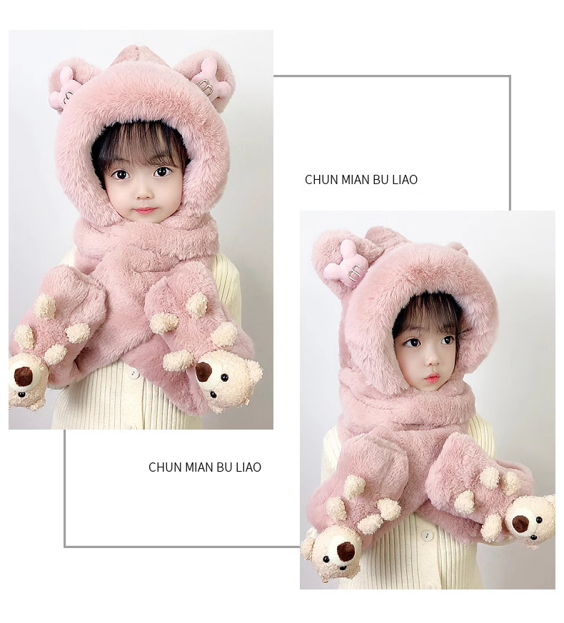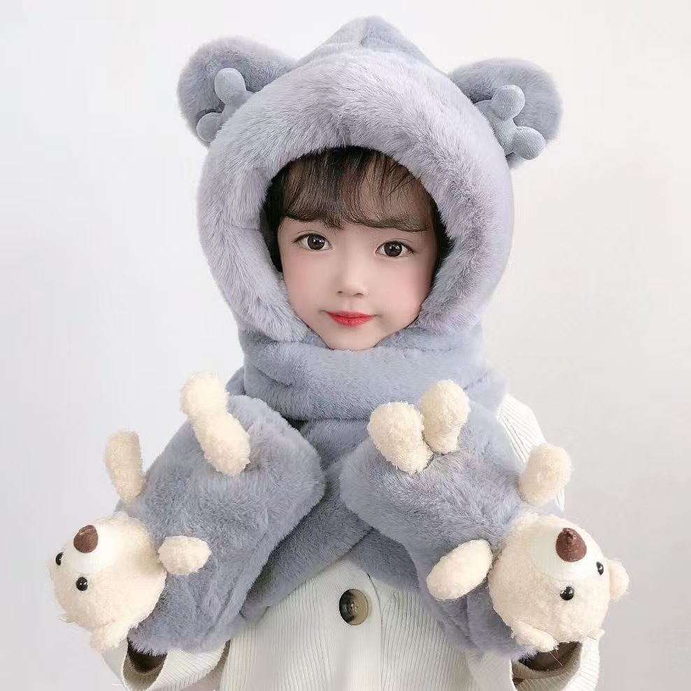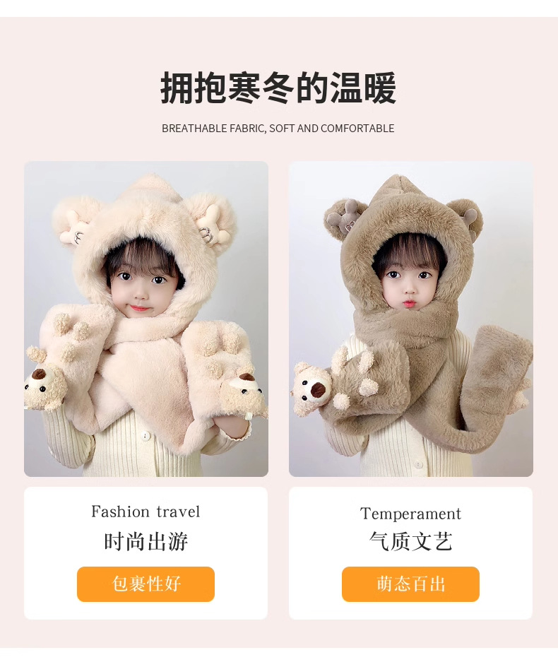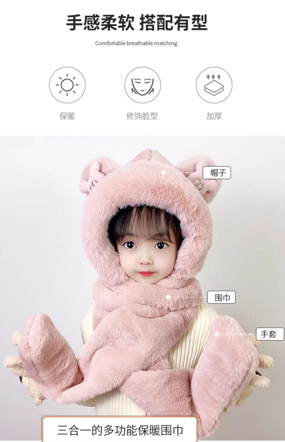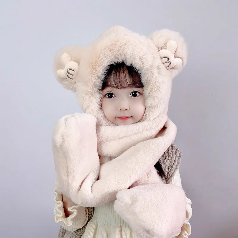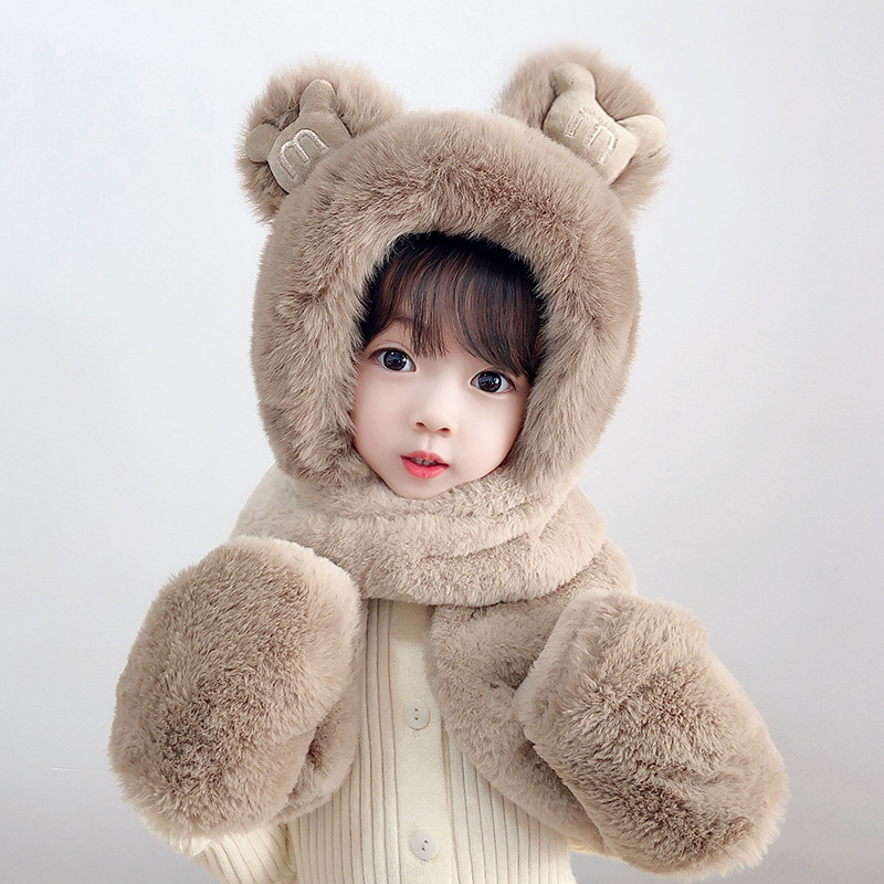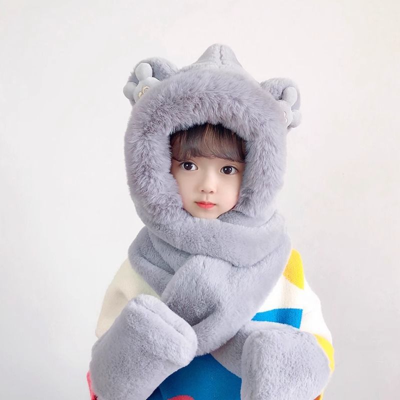 가을과 겨울 어린이 모자 스카프 한 봉제 모자 소년과 소녀 겨울 두꺼운 3 피스 모자 방풍 따뜻한 모자스토어 가기