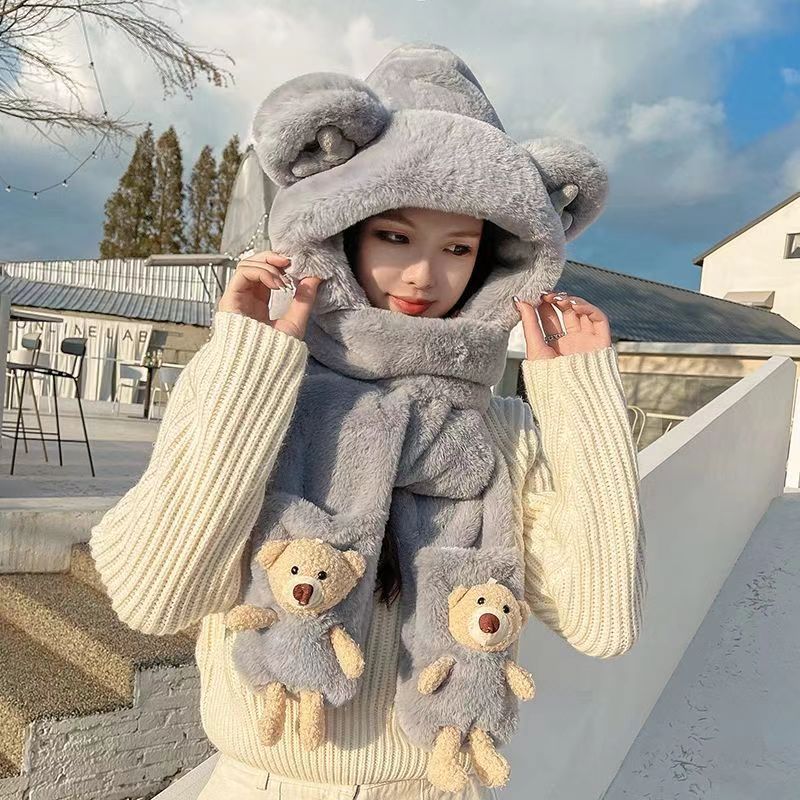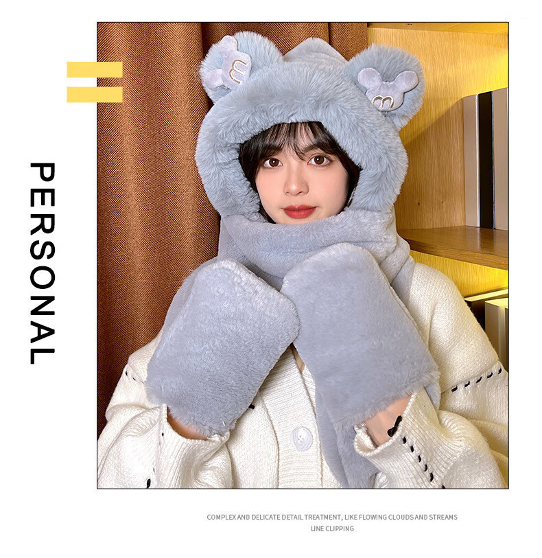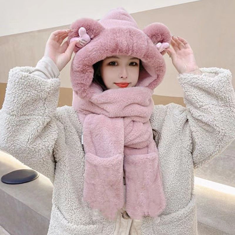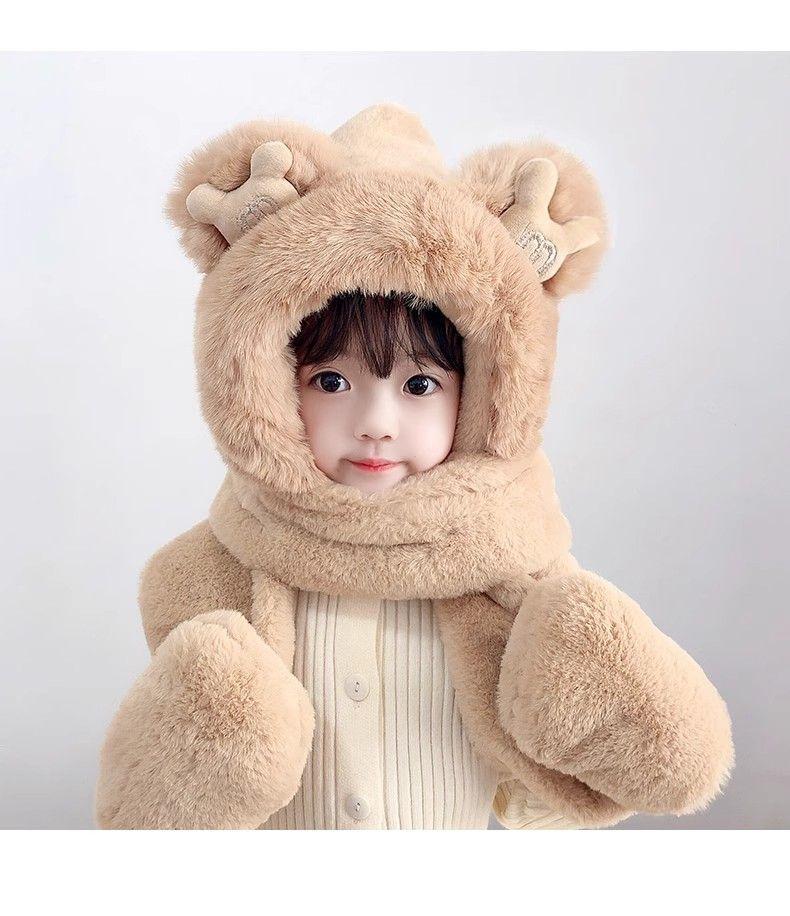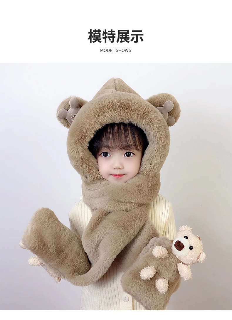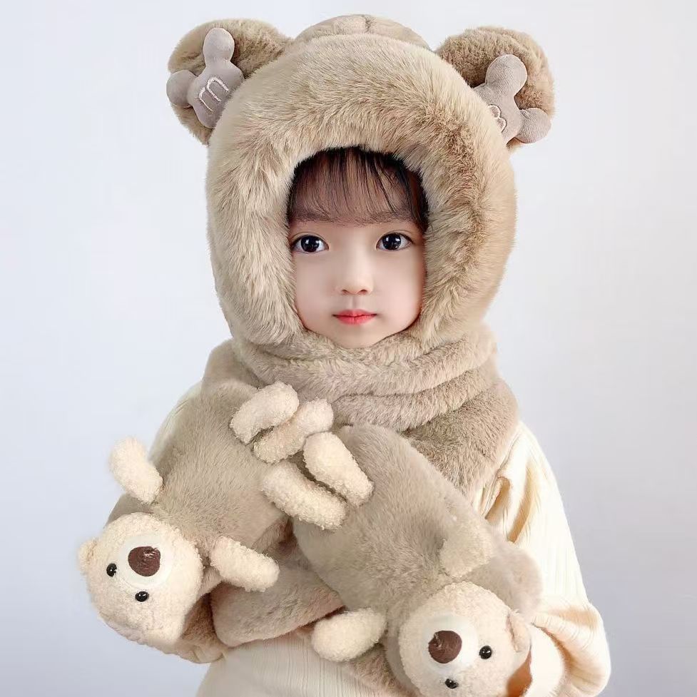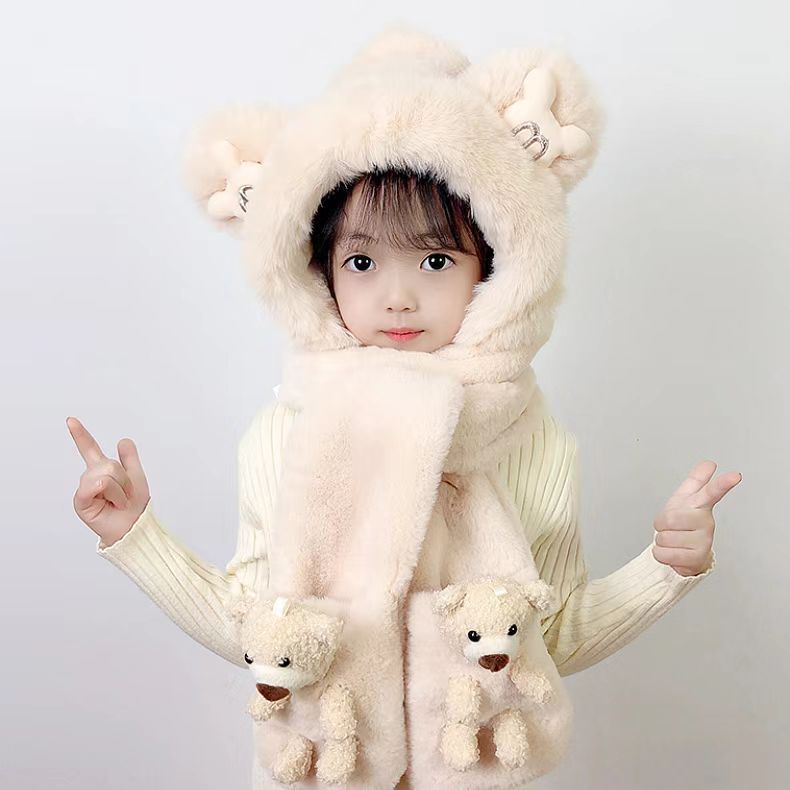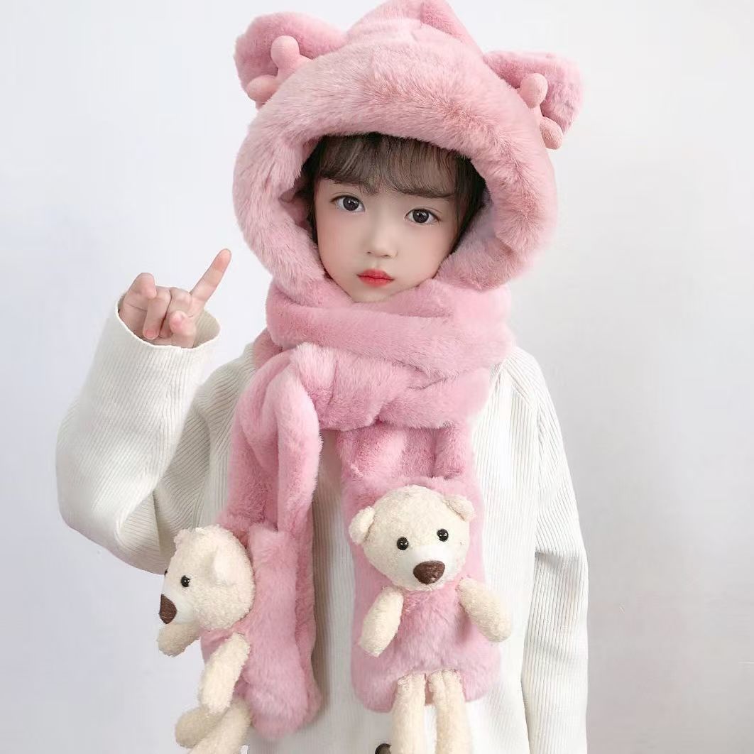 가을과 겨울 어린이 모자 스카프 한 봉제 모자 소년과 소녀 겨울 두꺼운 3 피스 모자 방풍 따뜻한 모자스토어 가기