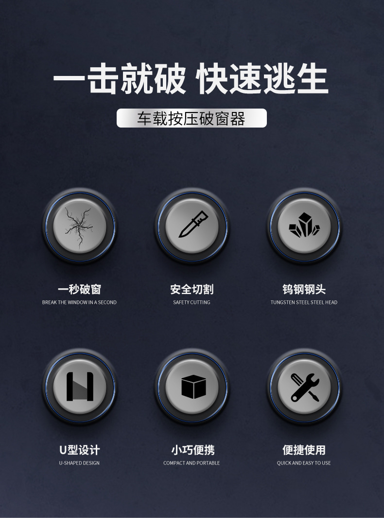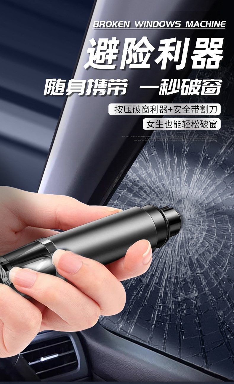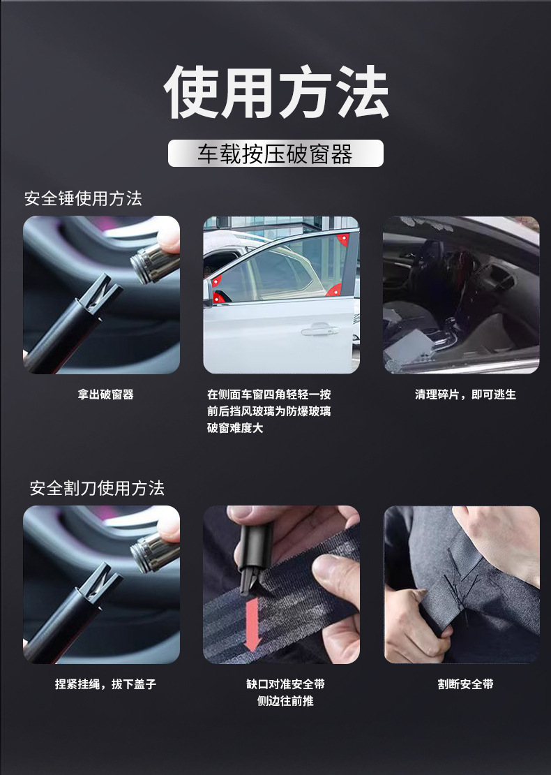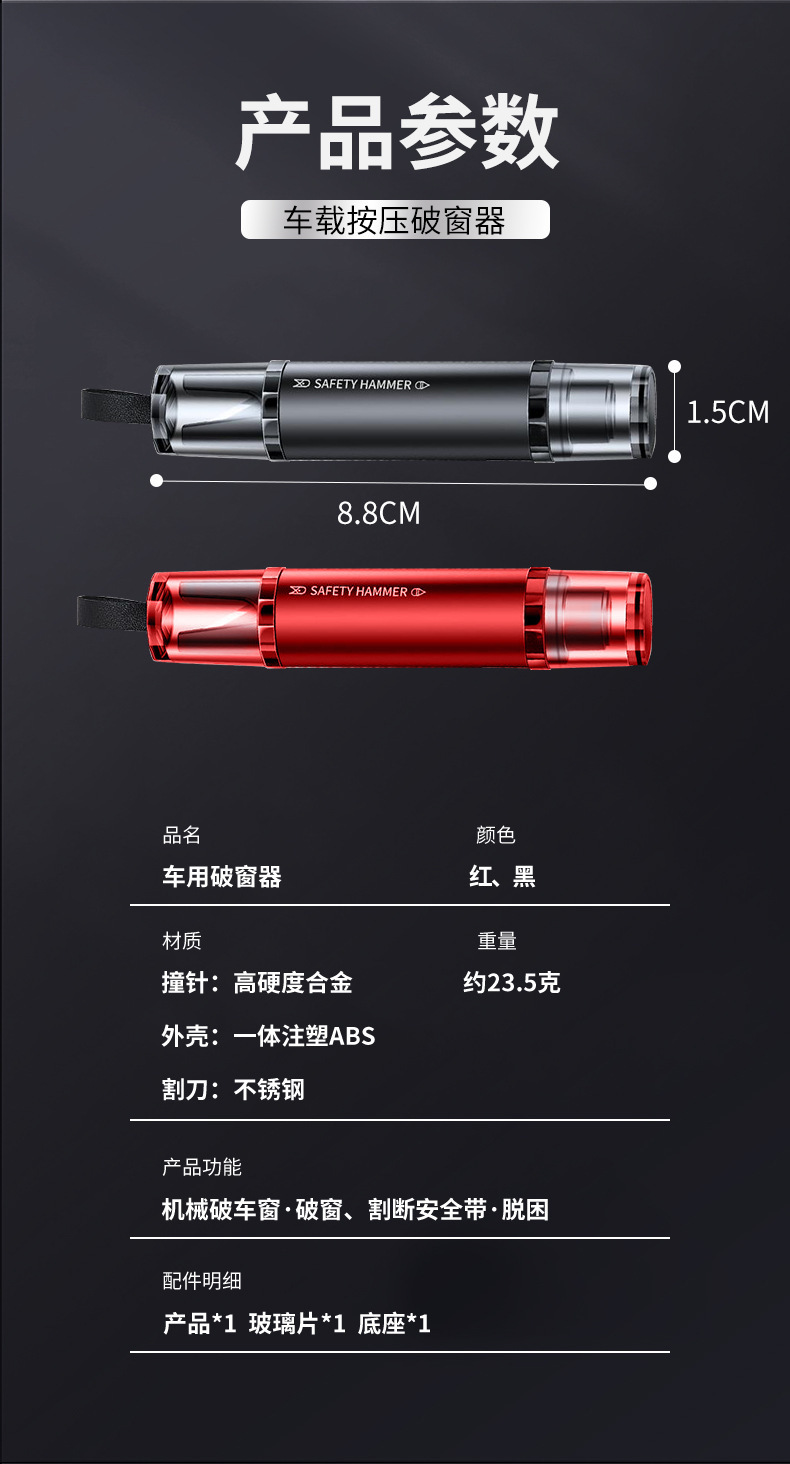 커팅 나이프가있는 2 대 1 차량 장착 창 차단기 차량 공구로 1 초 깨진 창 탈출을위한 다기능 비상 생존 망치