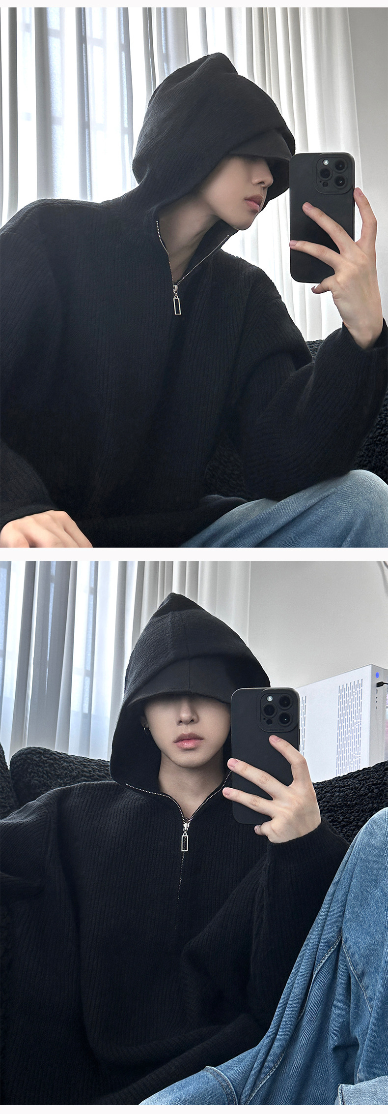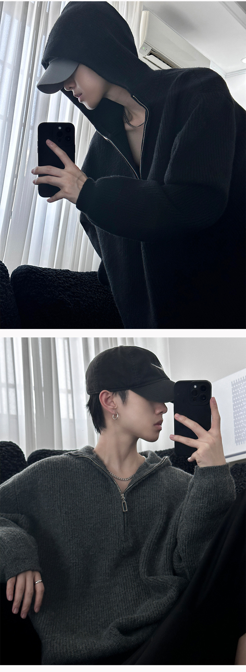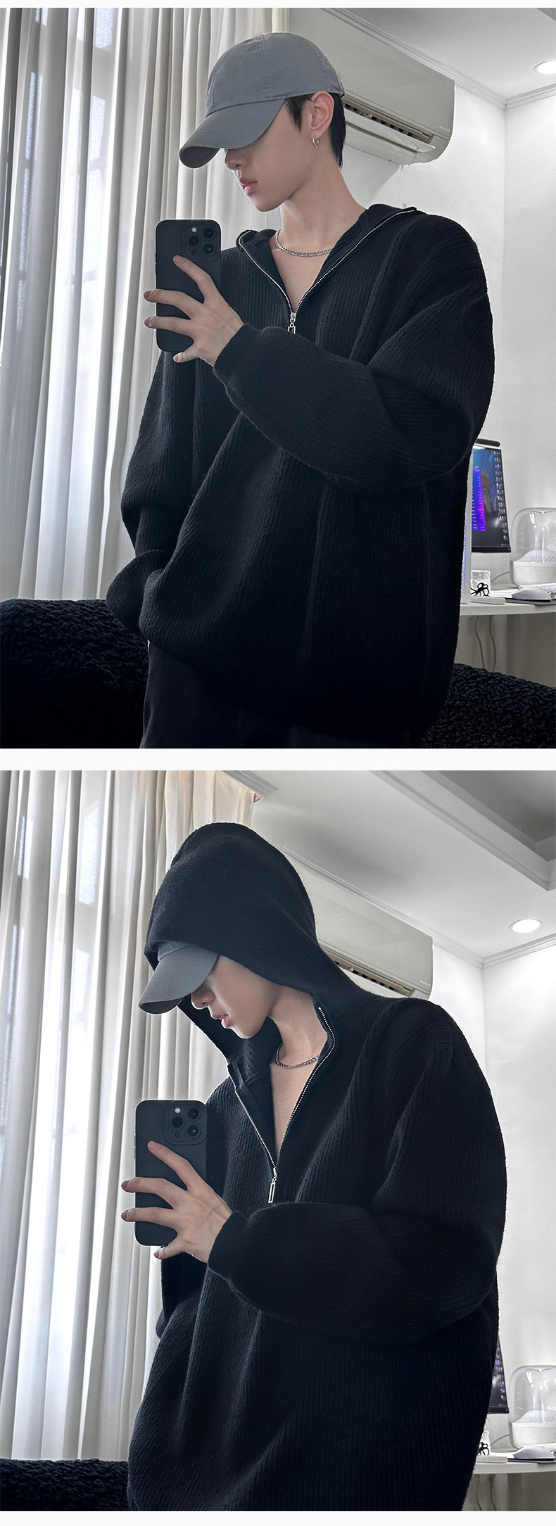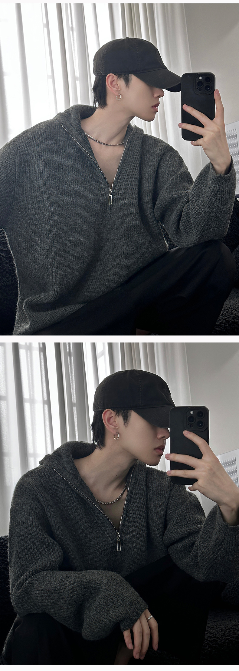카키 클린 핏 니트 후드 스웨터 남자 가을 겨울 반 지퍼베이스 셔츠 게으른 스타일 고급 스웨터스토어 가기
