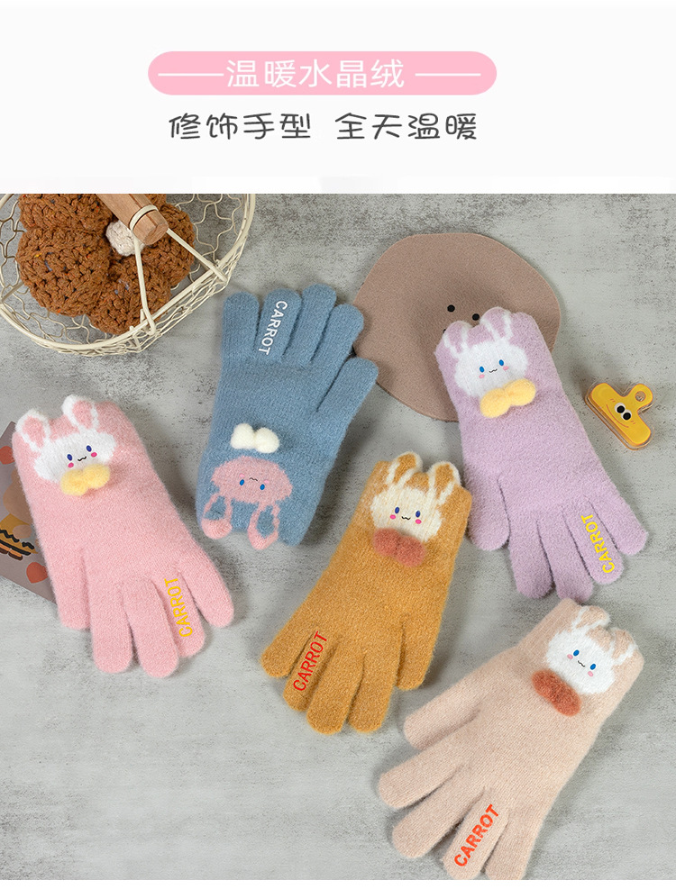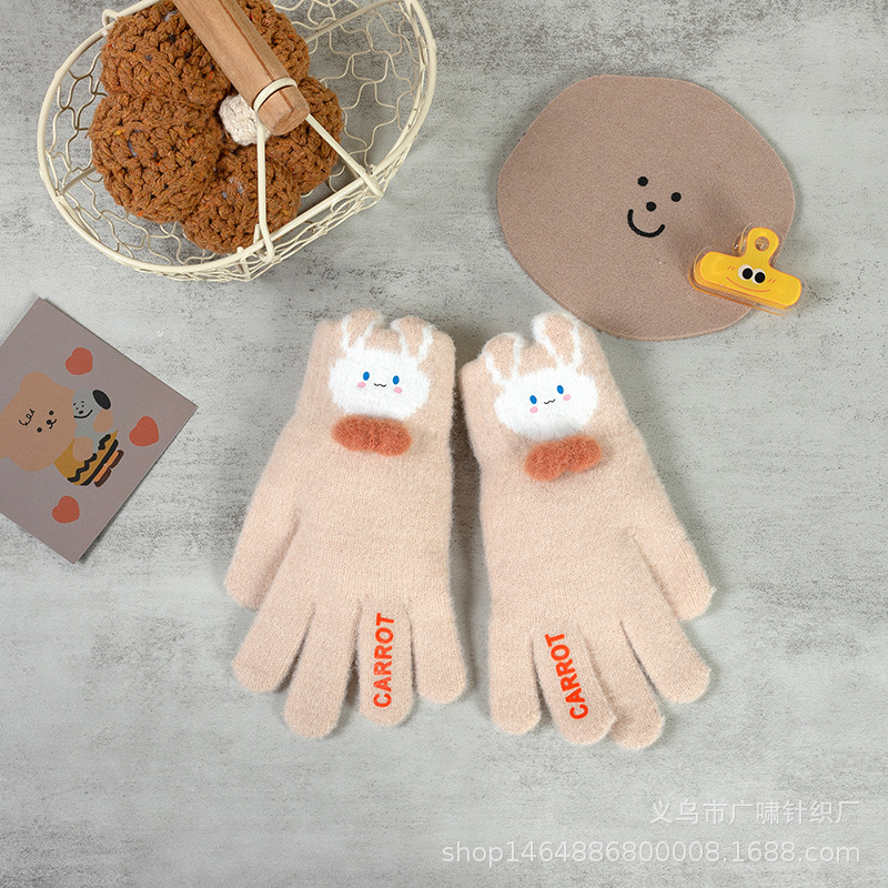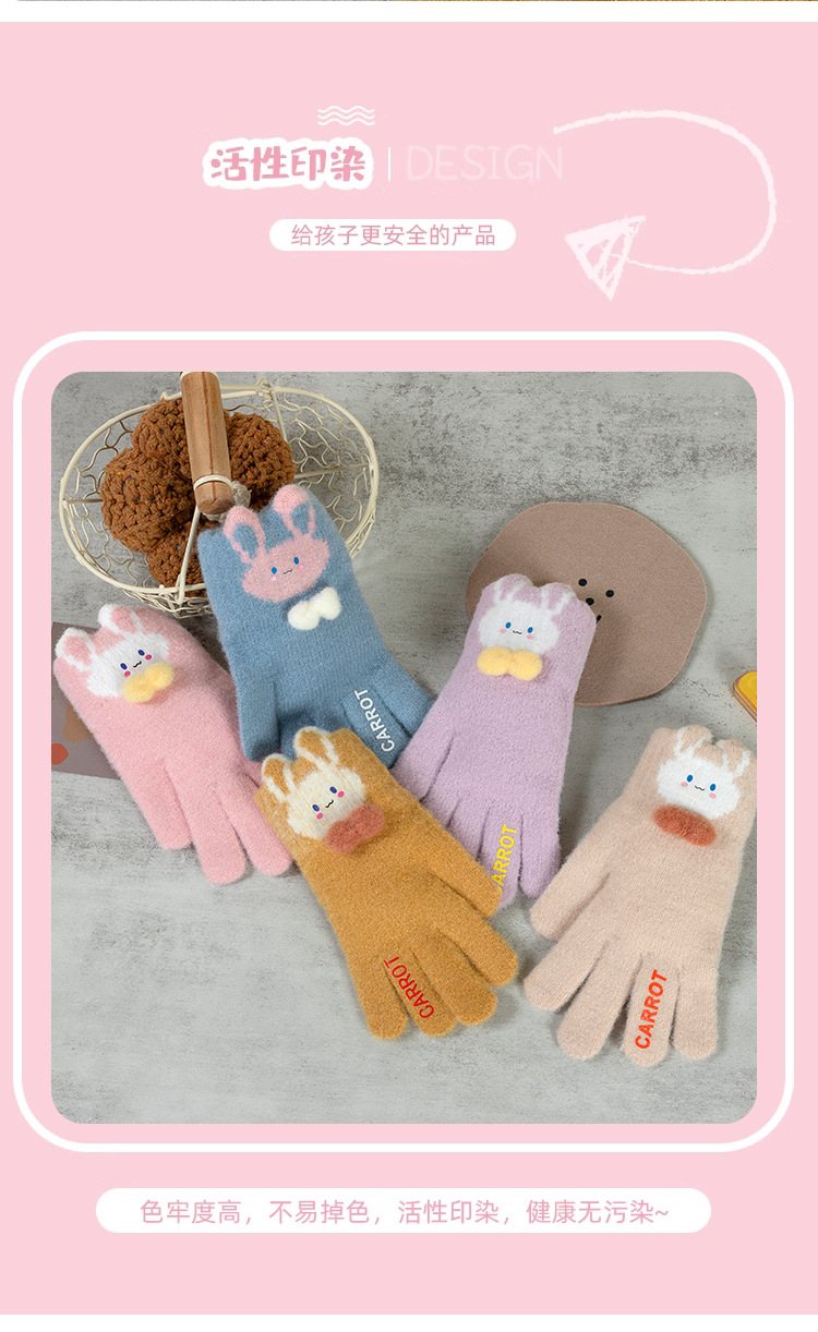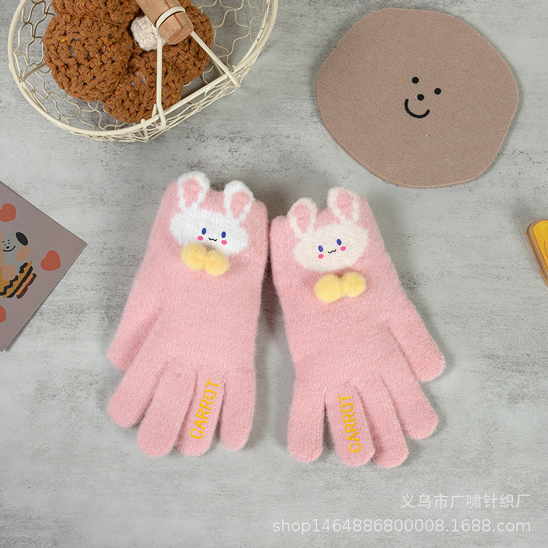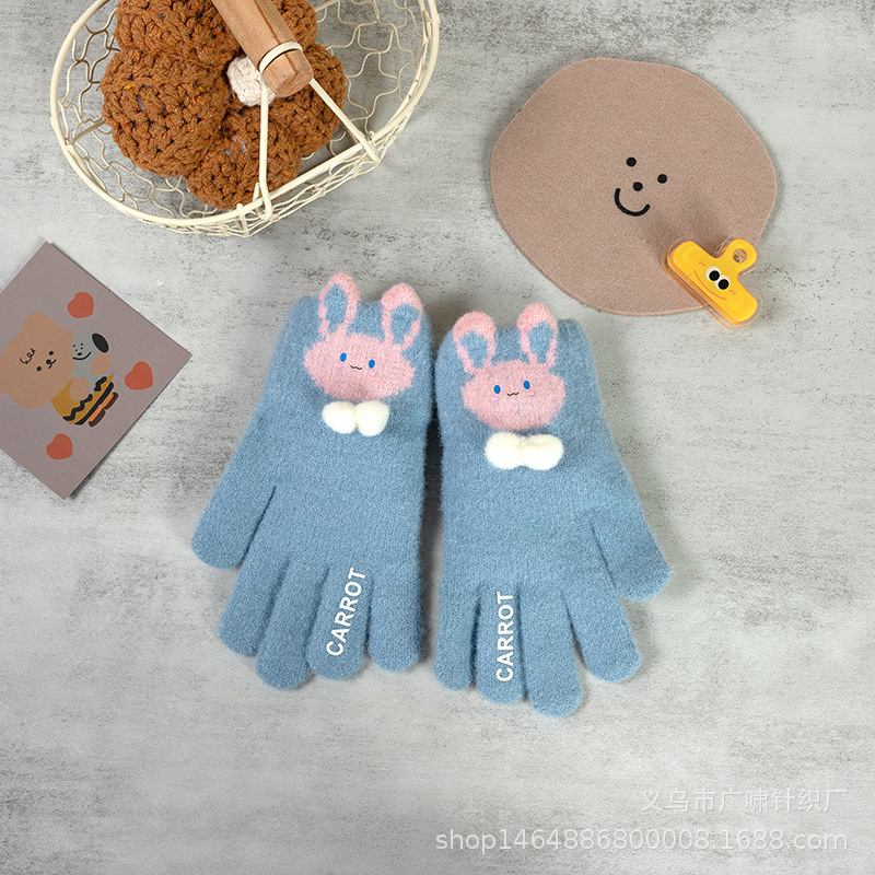 어린이 프린트 나비 넥타이 토끼 다섯 손가락 겨울 쓰기 따뜻한 다섯 손가락 플러스 벨벳 두꺼운 니트 새 장갑 5-13 세스토어 가기