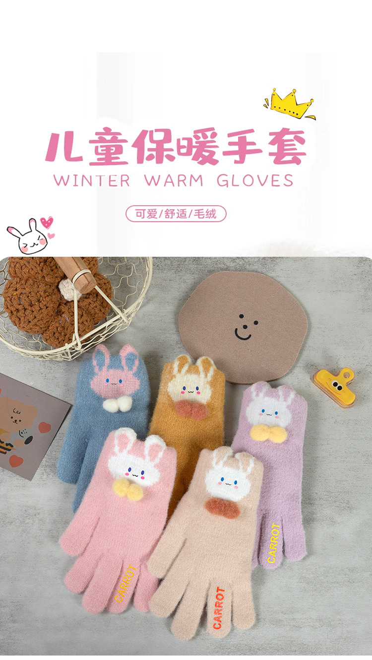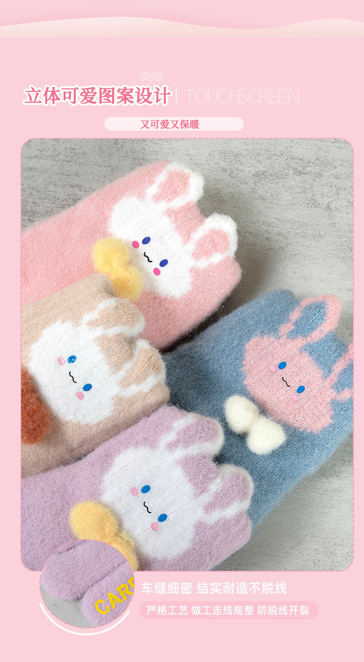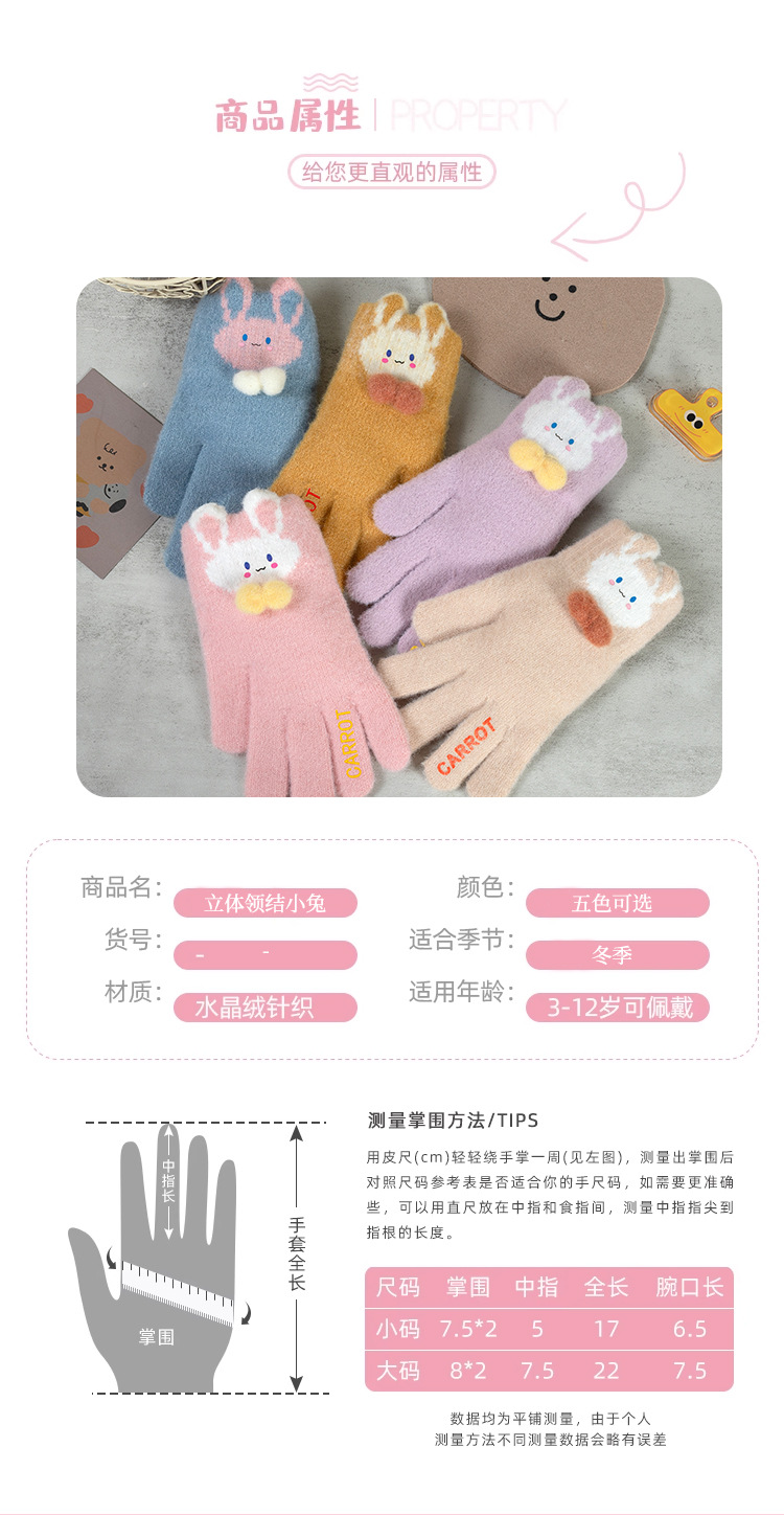 어린이 프린트 나비 넥타이 토끼 다섯 손가락 겨울 쓰기 따뜻한 다섯 손가락 플러스 벨벳 두꺼운 니트 새 장갑 5-13 세스토어 가기
