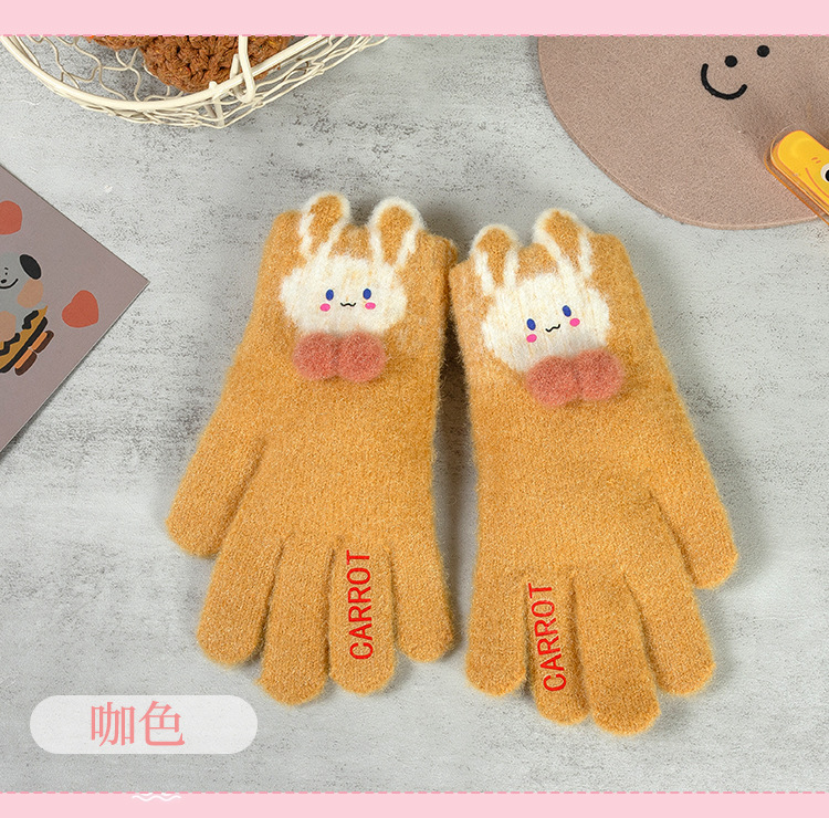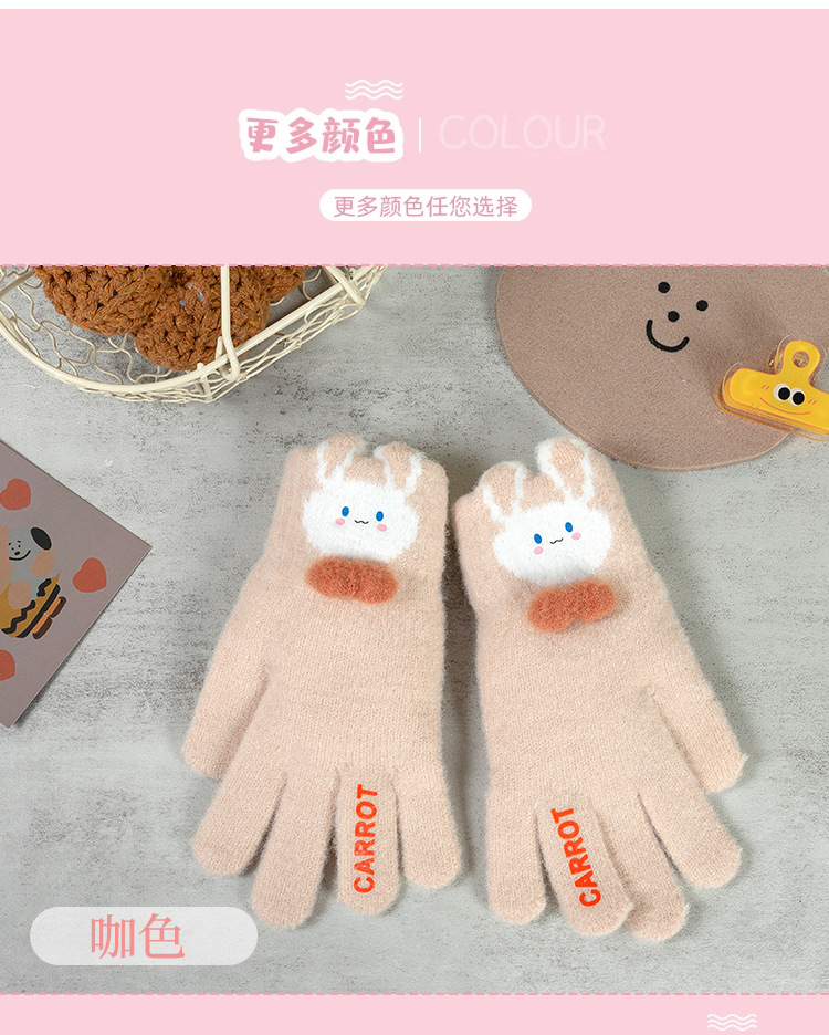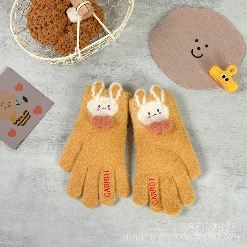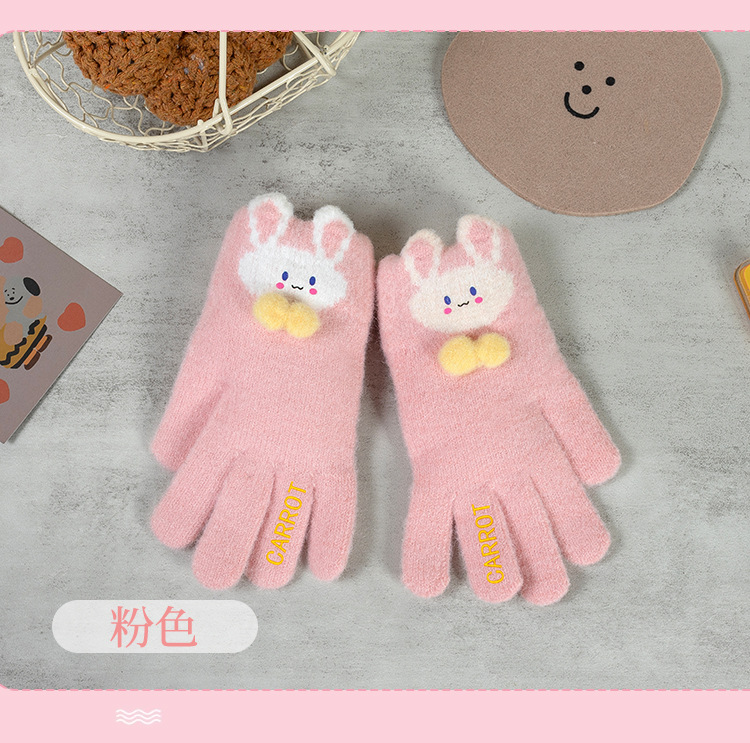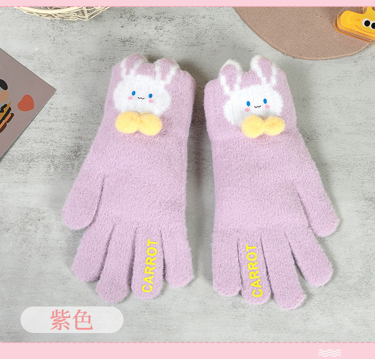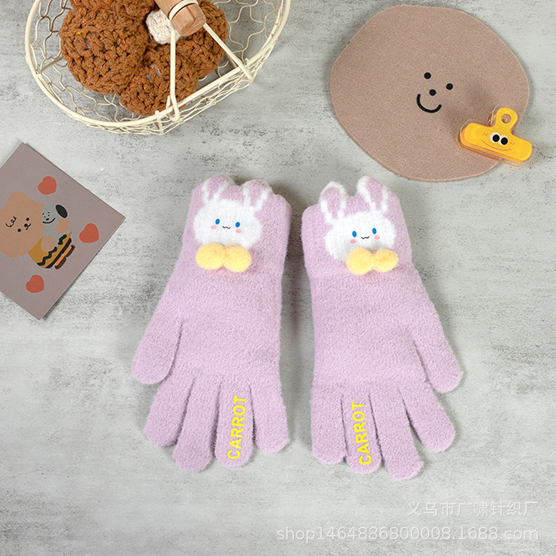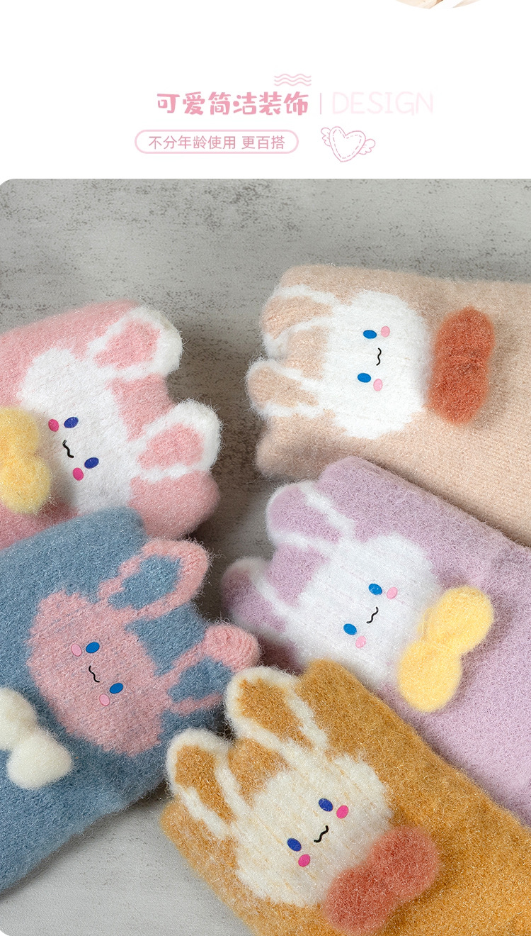어린이 프린트 나비 넥타이 토끼 다섯 손가락 겨울 쓰기 따뜻한 다섯 손가락 플러스 벨벳 두꺼운 니트 새 장갑 5-13 세