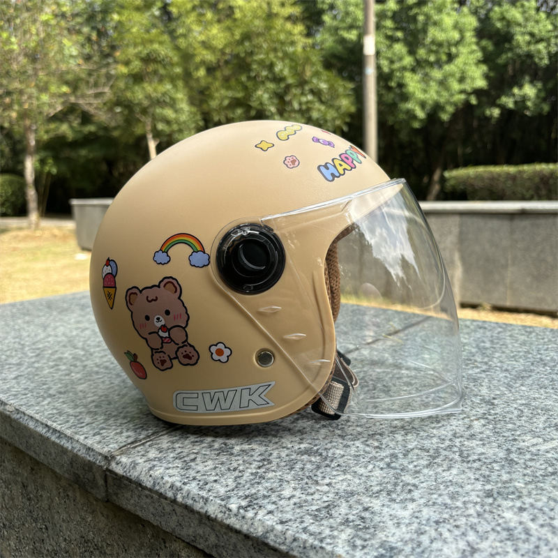 새로운 국가 표준 3 인증 2-6 세 겨울 따뜻하고 편안한 전기 자동차 오토바이 안전 방풍 헬멧 낙하 방지 하프 헬멧스토어 가기
