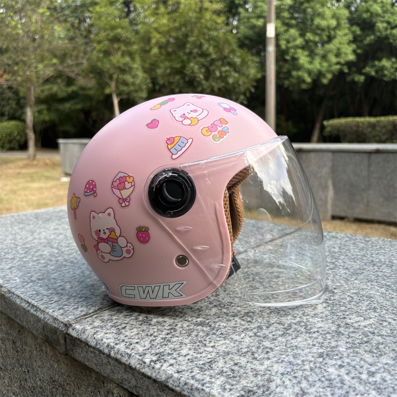 새로운 국가 표준 3 인증 2-6 세 겨울 따뜻하고 편안한 전기 자동차 오토바이 안전 방풍 헬멧 낙하 방지 하프 헬멧