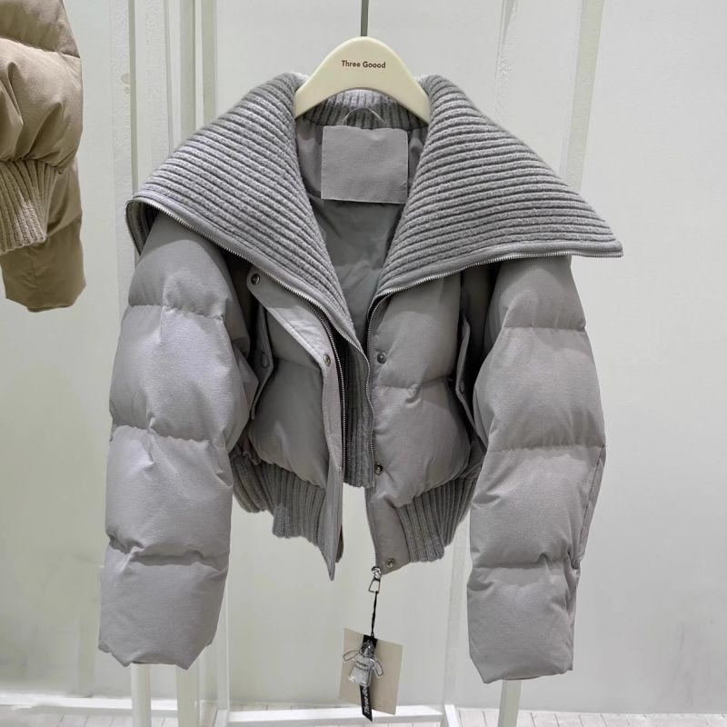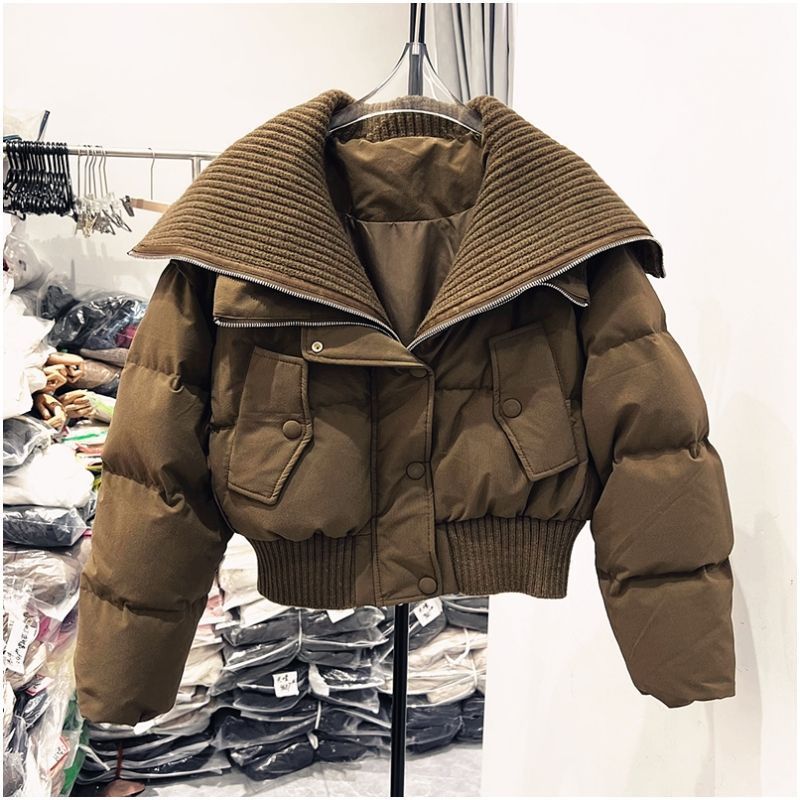2024 새로운 겨울면 패딩 재킷 여성의 짧은 높은 허리 큰 옷깃 패션 높은 감각 좋은 겨울 따뜻한 코트스토어 가기