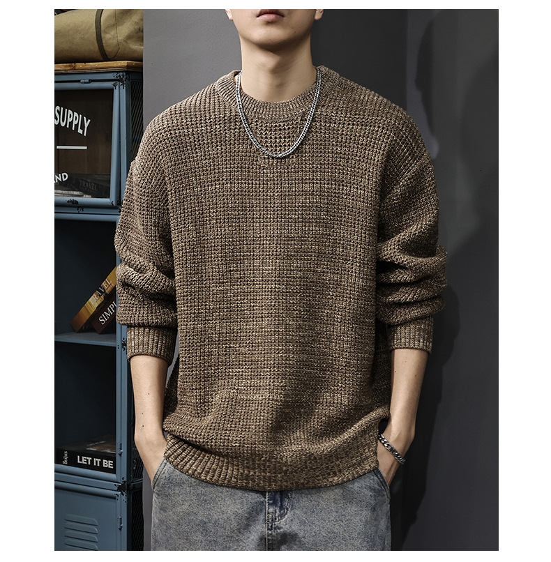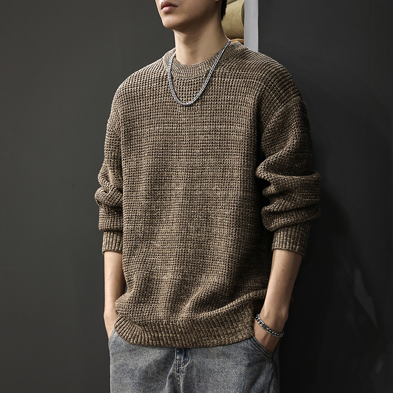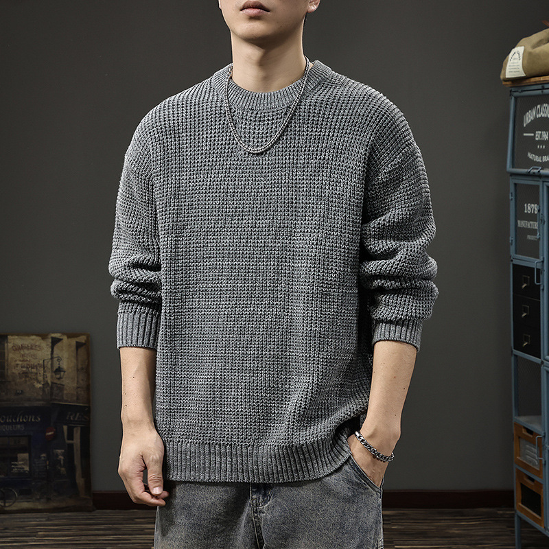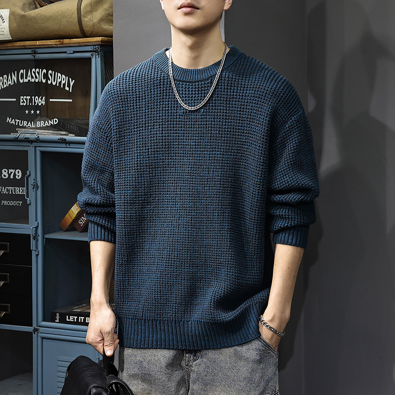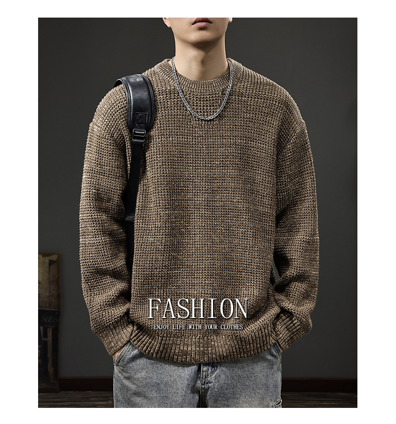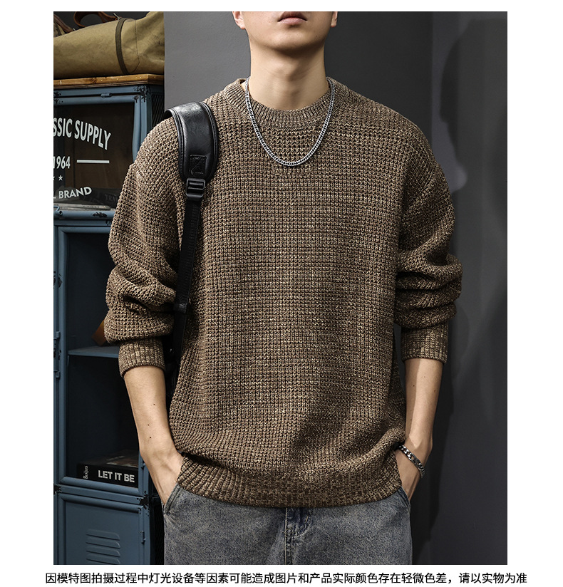 가을 복고풍 스웨터 남성 아메리칸 스타일 게으른 스타일 가을과 겨울 새로운 무거운 느슨한 라운드 넥 풀오버 캐주얼 자켓