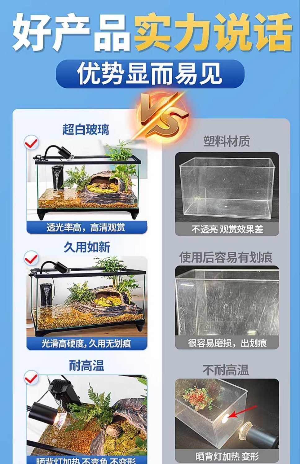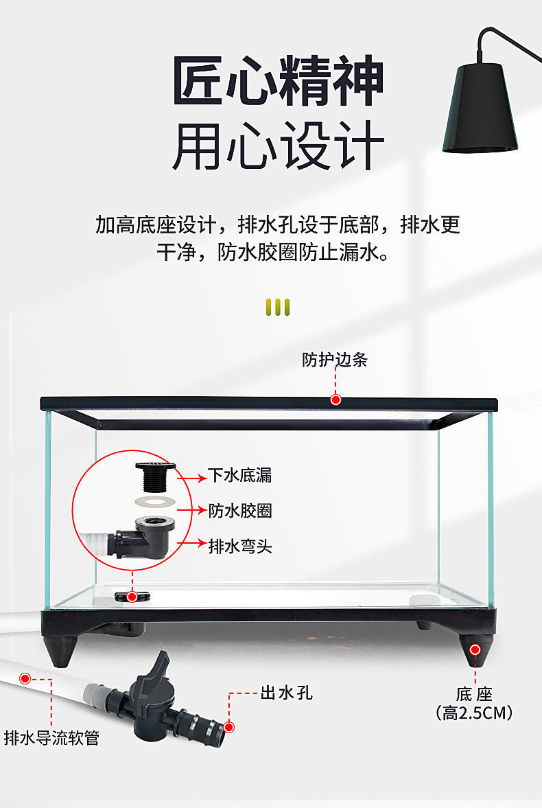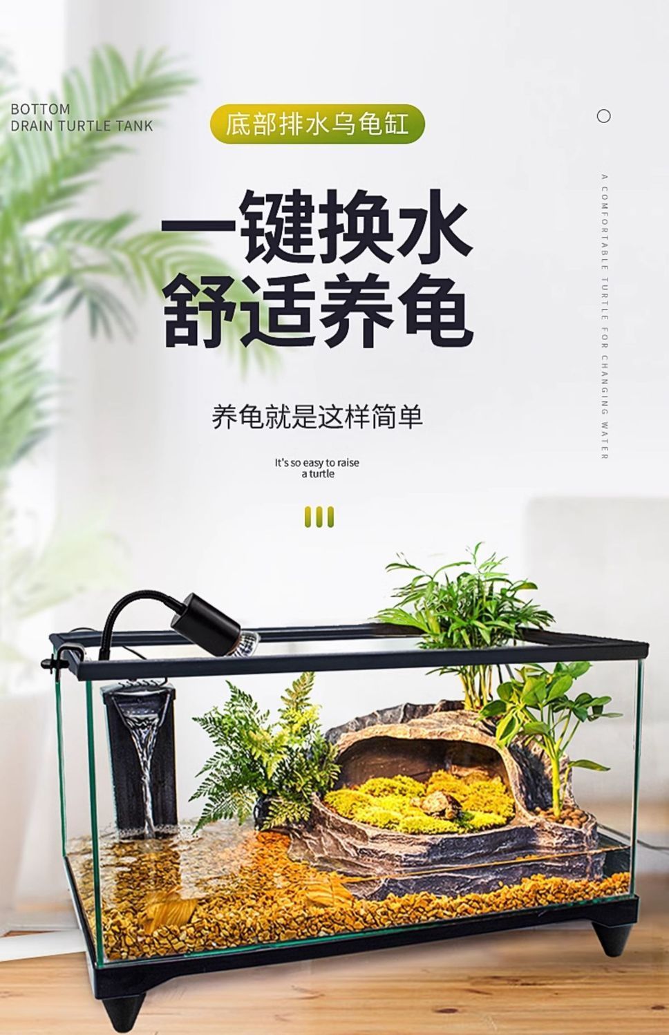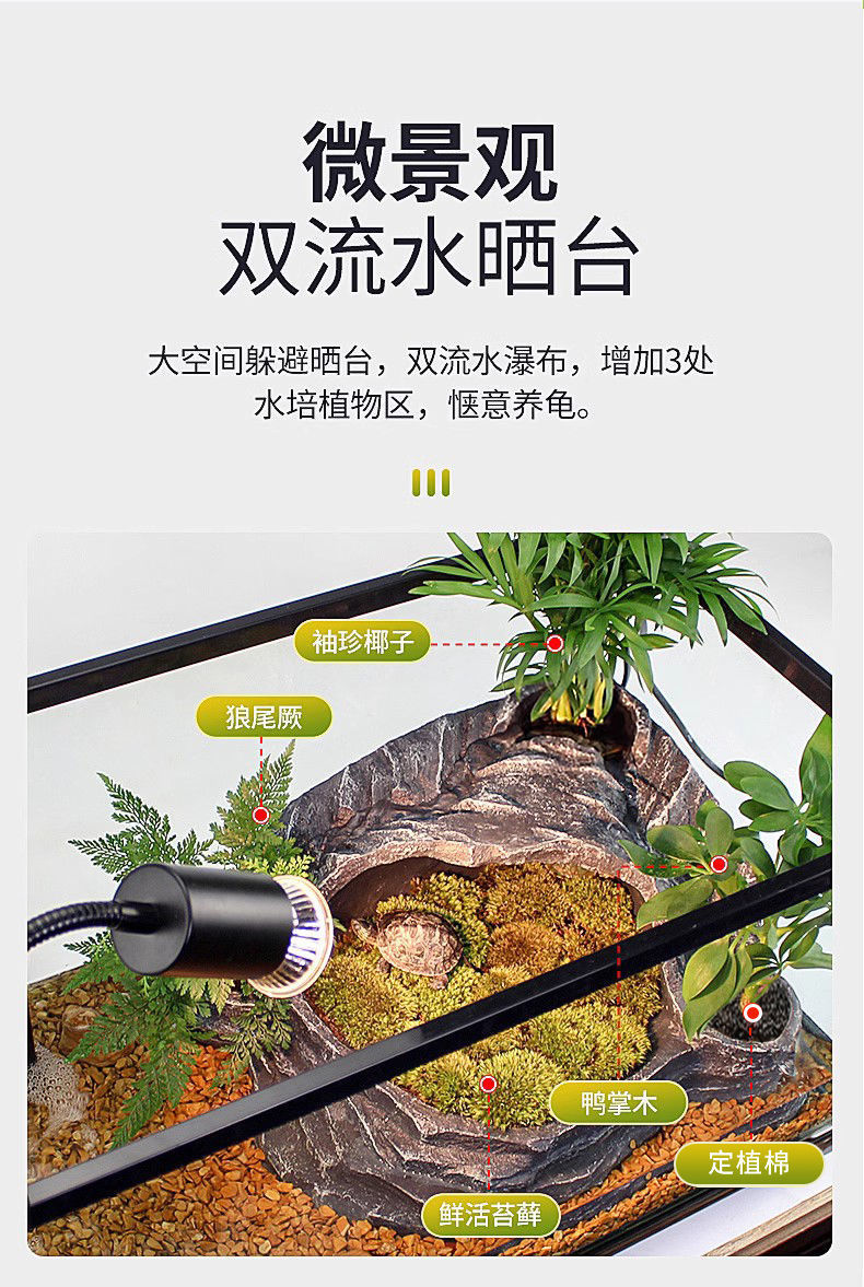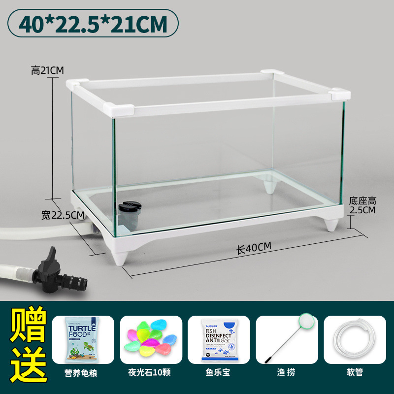 수륙 양용 탱크 거북 먹이기 슈퍼 화이트 유리 생태 바닥 배수 벨트 조경 반 물 거북이 덮개가있는 특수 어항스토어 가기