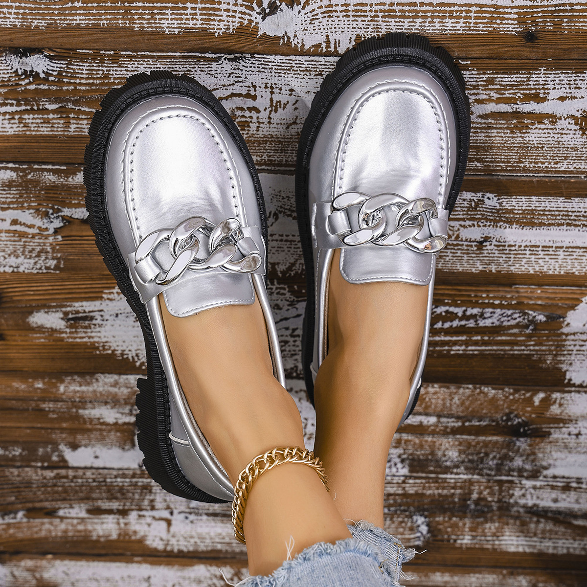 국경 간 플러스 사이즈 영국 스타일의 작은 가죽 신발 여성의 2024 새로운 머핀 두꺼운 밑창 페달 간단한 패션 로퍼 조수스토어 가기