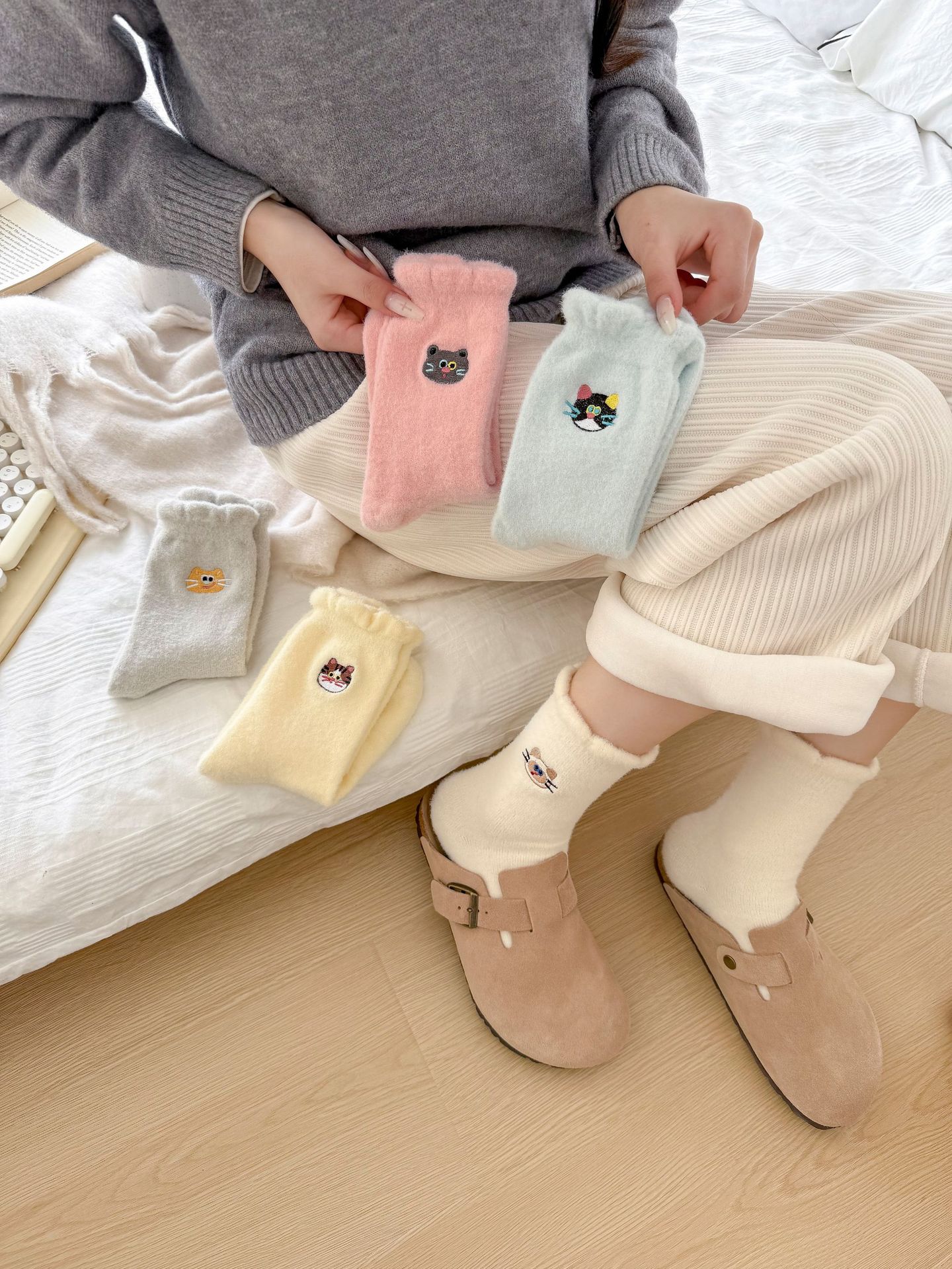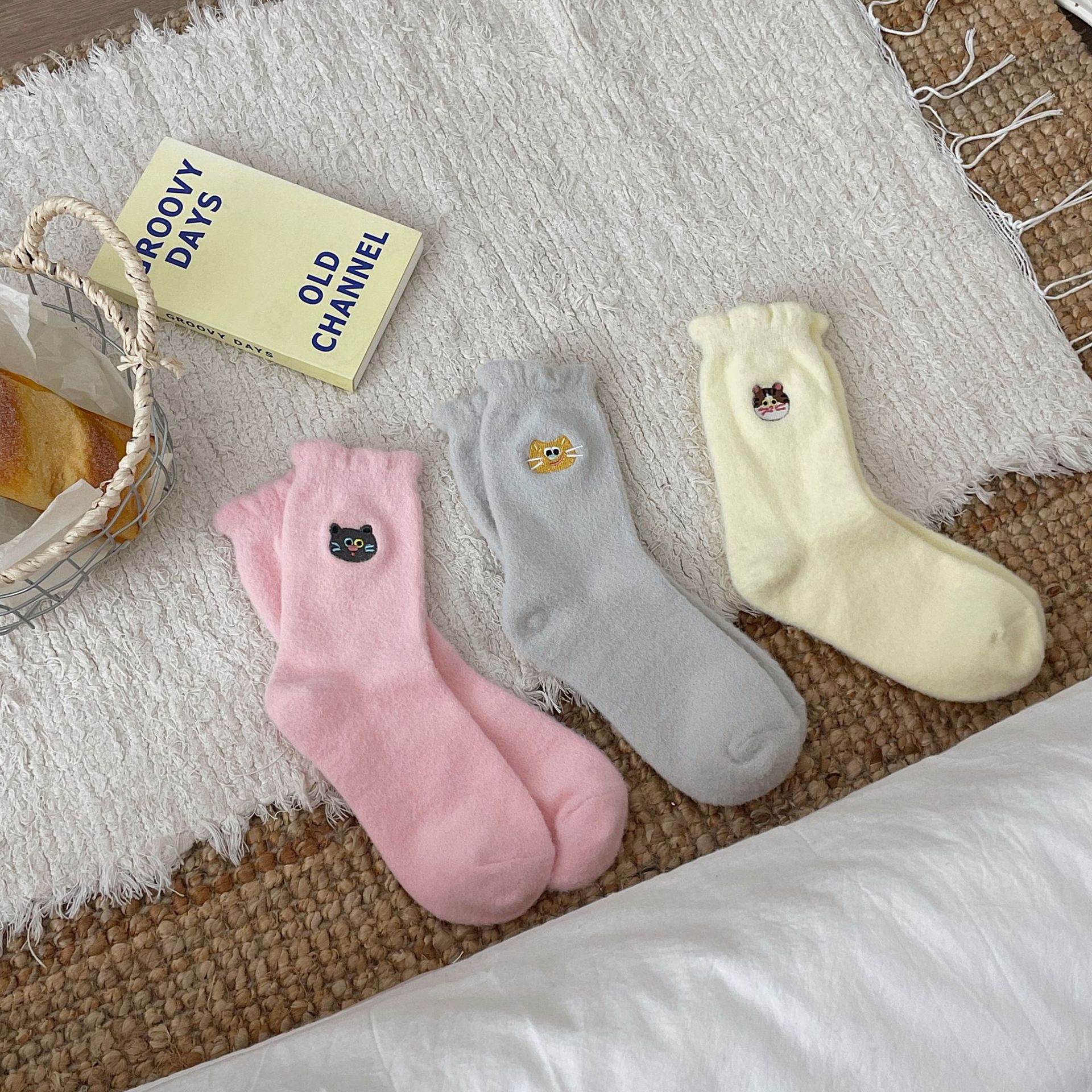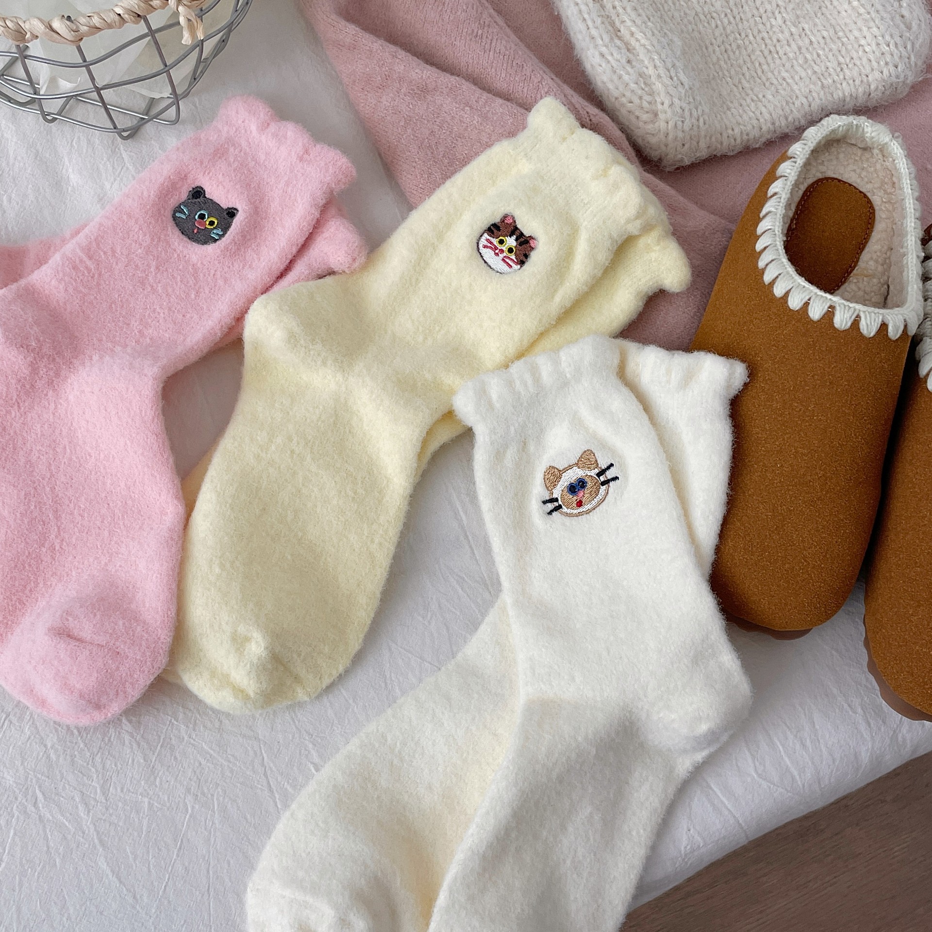 호주 벨벳 고양이 자수 양말 어린이 가을과 겨울 두꺼운 따뜻한 튜브 양말 귀여운 만화 집 수면 아기 양말스토어 가기
