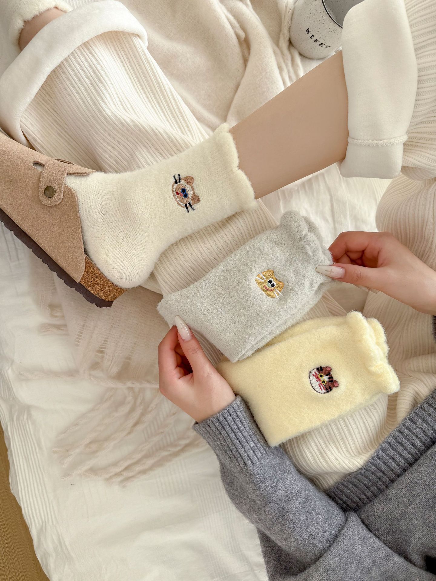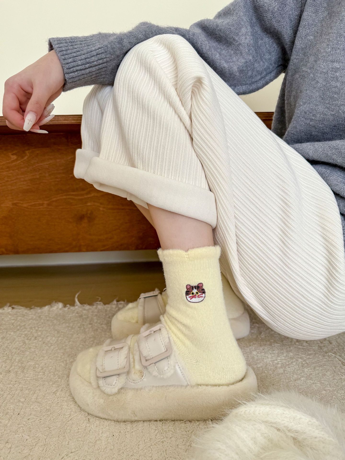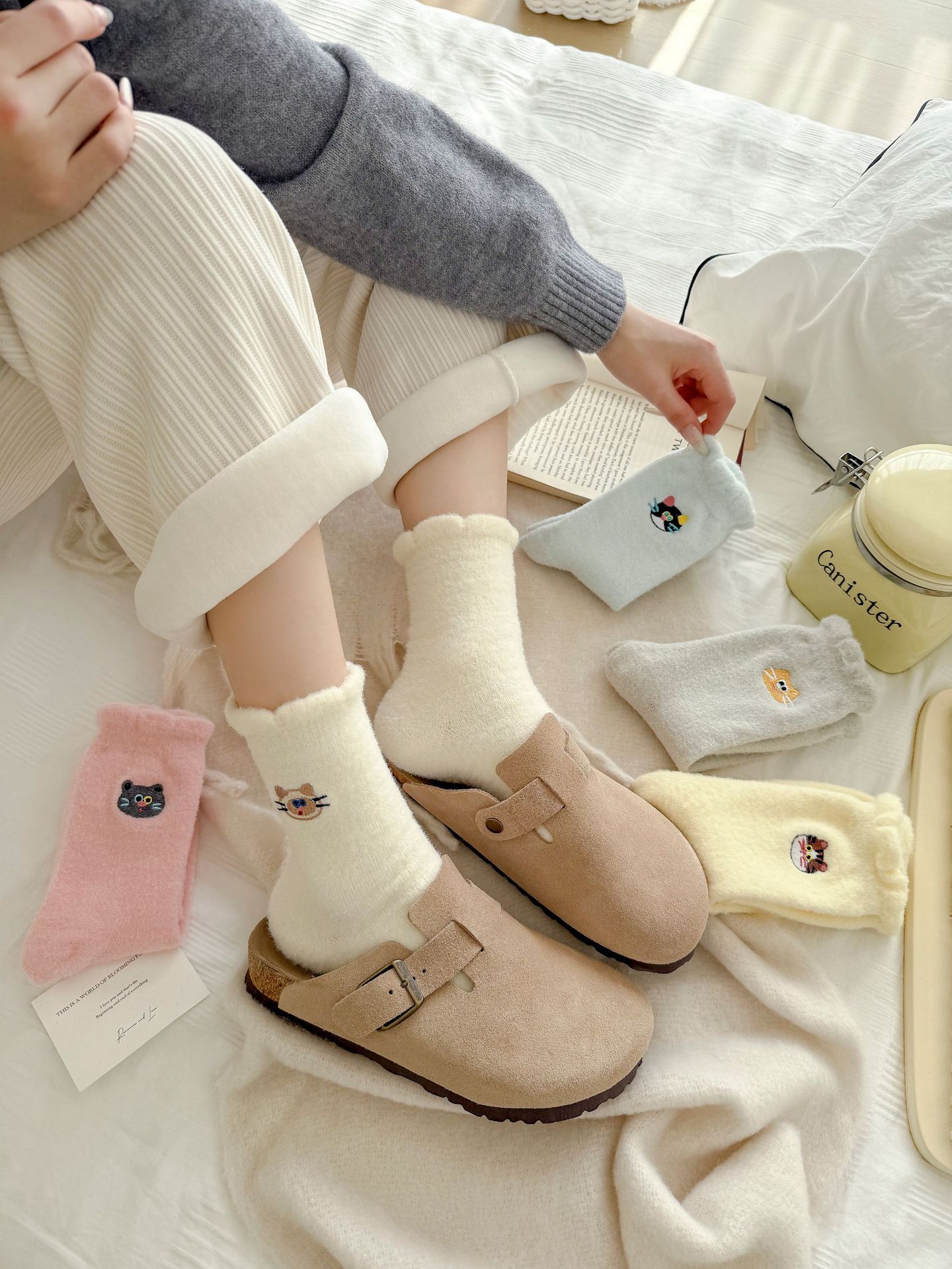 호주 벨벳 고양이 자수 양말 어린이 가을과 겨울 두꺼운 따뜻한 튜브 양말 귀여운 만화 집 수면 아기 양말스토어 가기