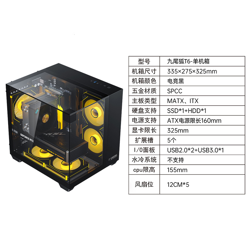 9 꼬리 여우 T6 기둥없는 채광창 바다 전망 룸 컴퓨터 케이스 데스크탑 3면 유리 측면 투명 matx 흰색스토어 가기
