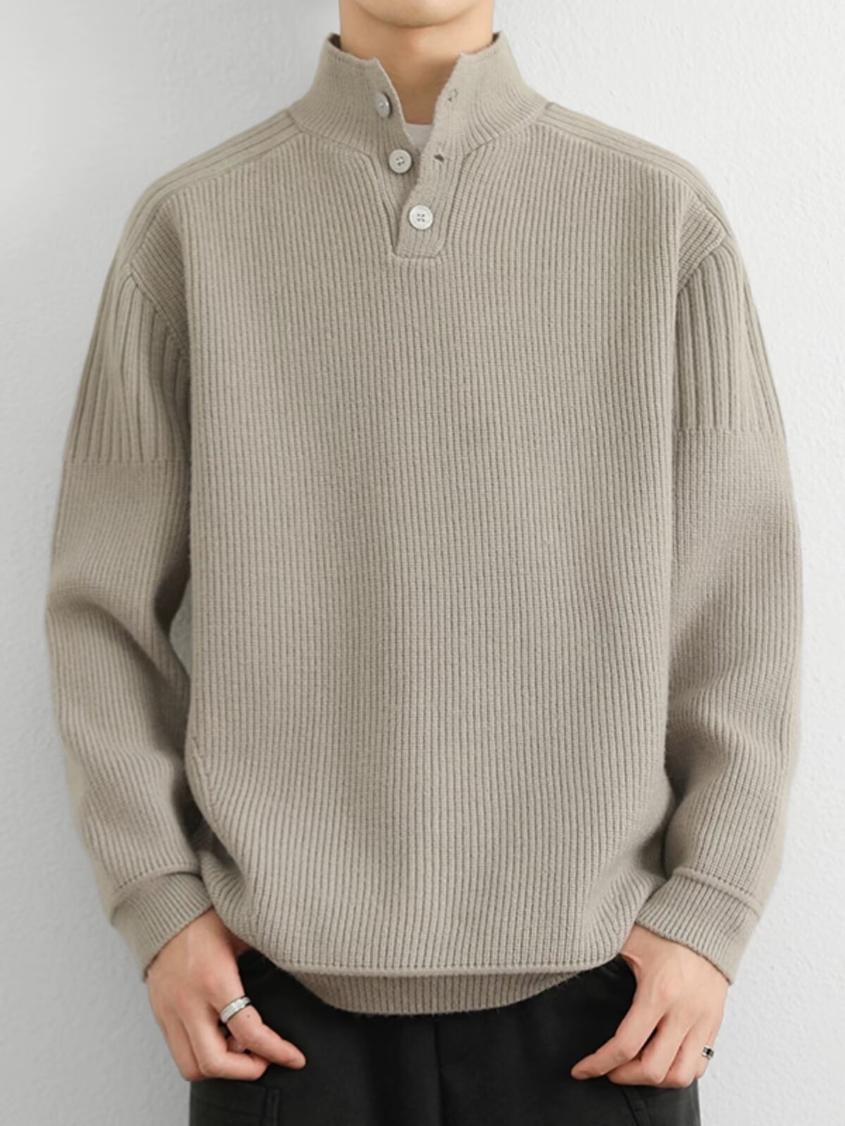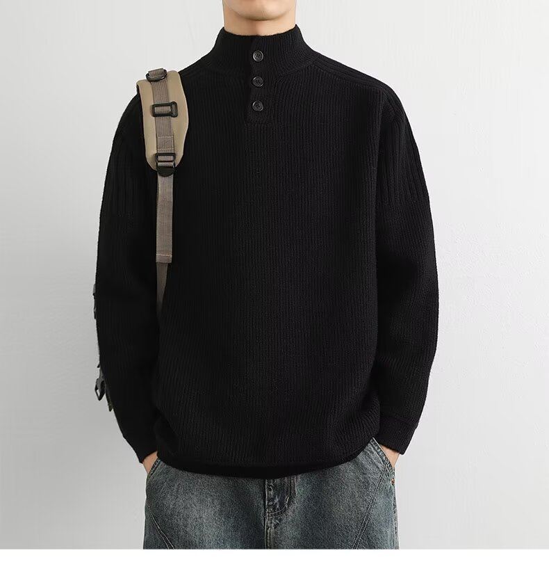 한국식 세미 터틀넥 스웨터 남성 가을과 겨울 하이 엔드 패션 브랜드 느슨한 간단한 스탠드 칼라 스웨터 따뜻한 스웨터스토어 가기