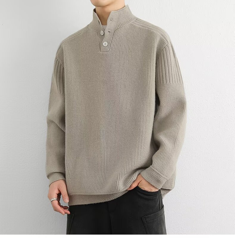 한국식 세미 터틀넥 스웨터 남성 가을과 겨울 하이 엔드 패션 브랜드 느슨한 간단한 스탠드 칼라 스웨터 따뜻한 스웨터