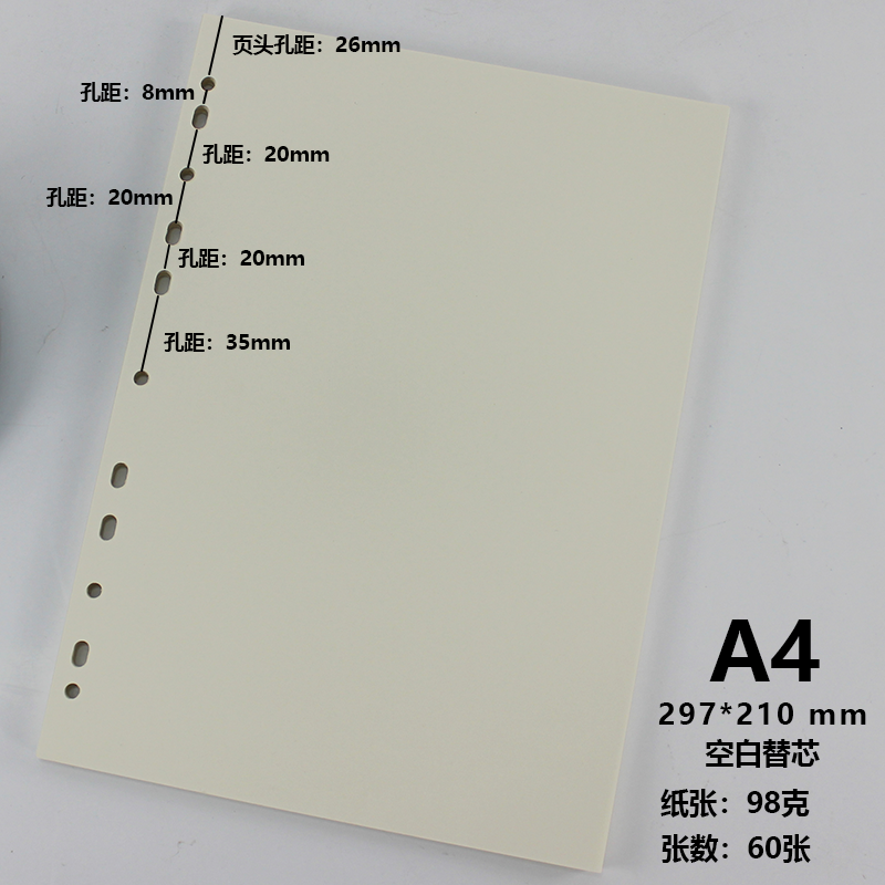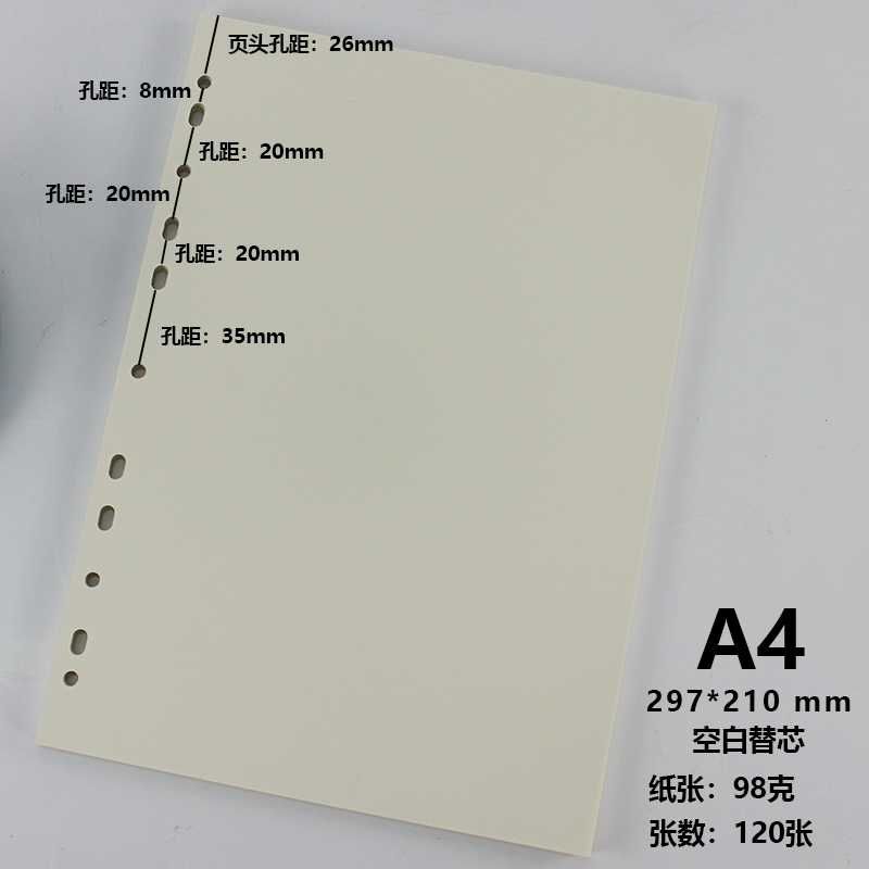 A4 느슨한 잎 노트북 코어 느슨한 잎 코어 종이 교체 코어 A5B5 베이지 색 눈 보호 6 구멍 9 구멍 11 구멍 나선형 코일