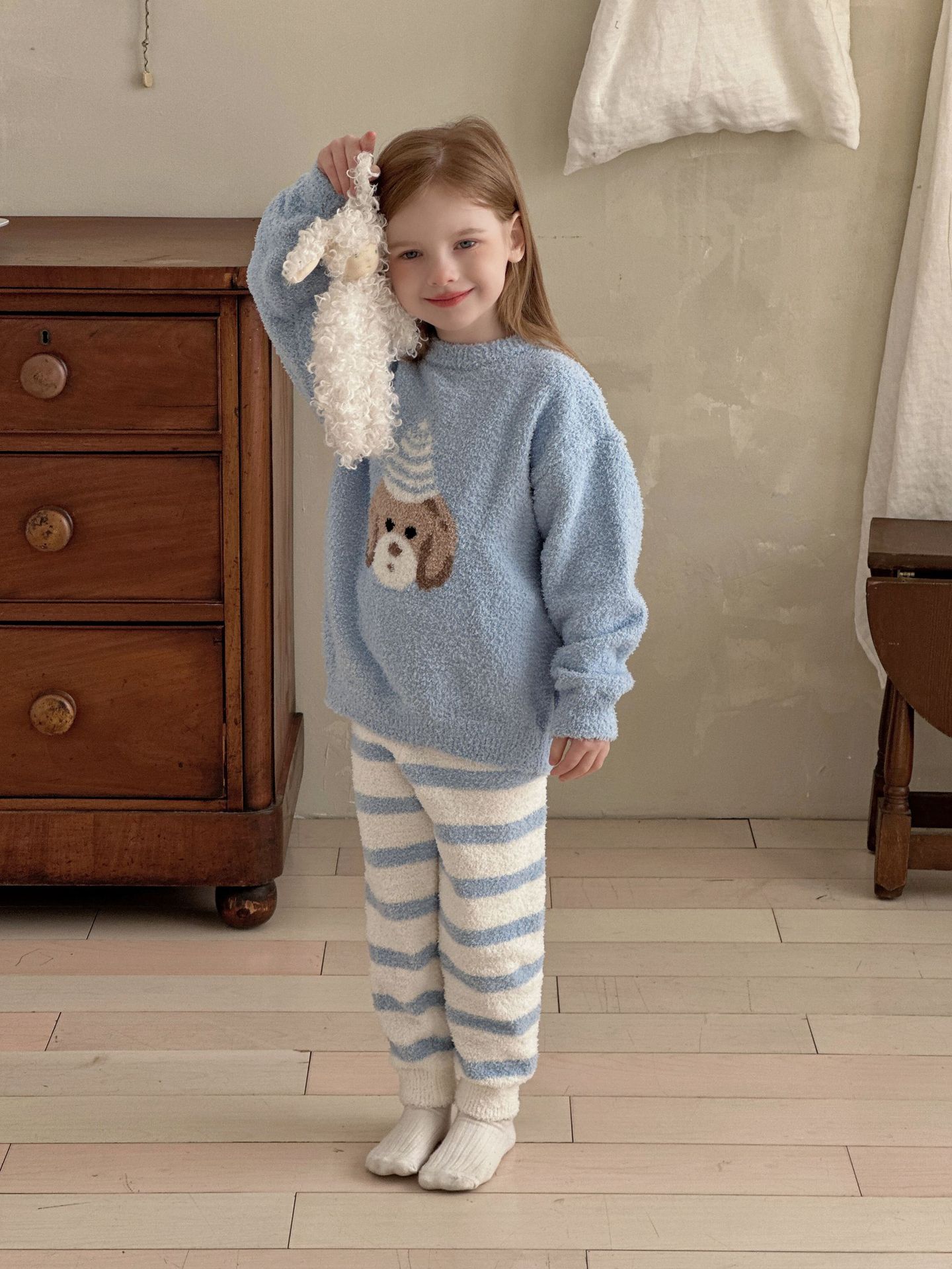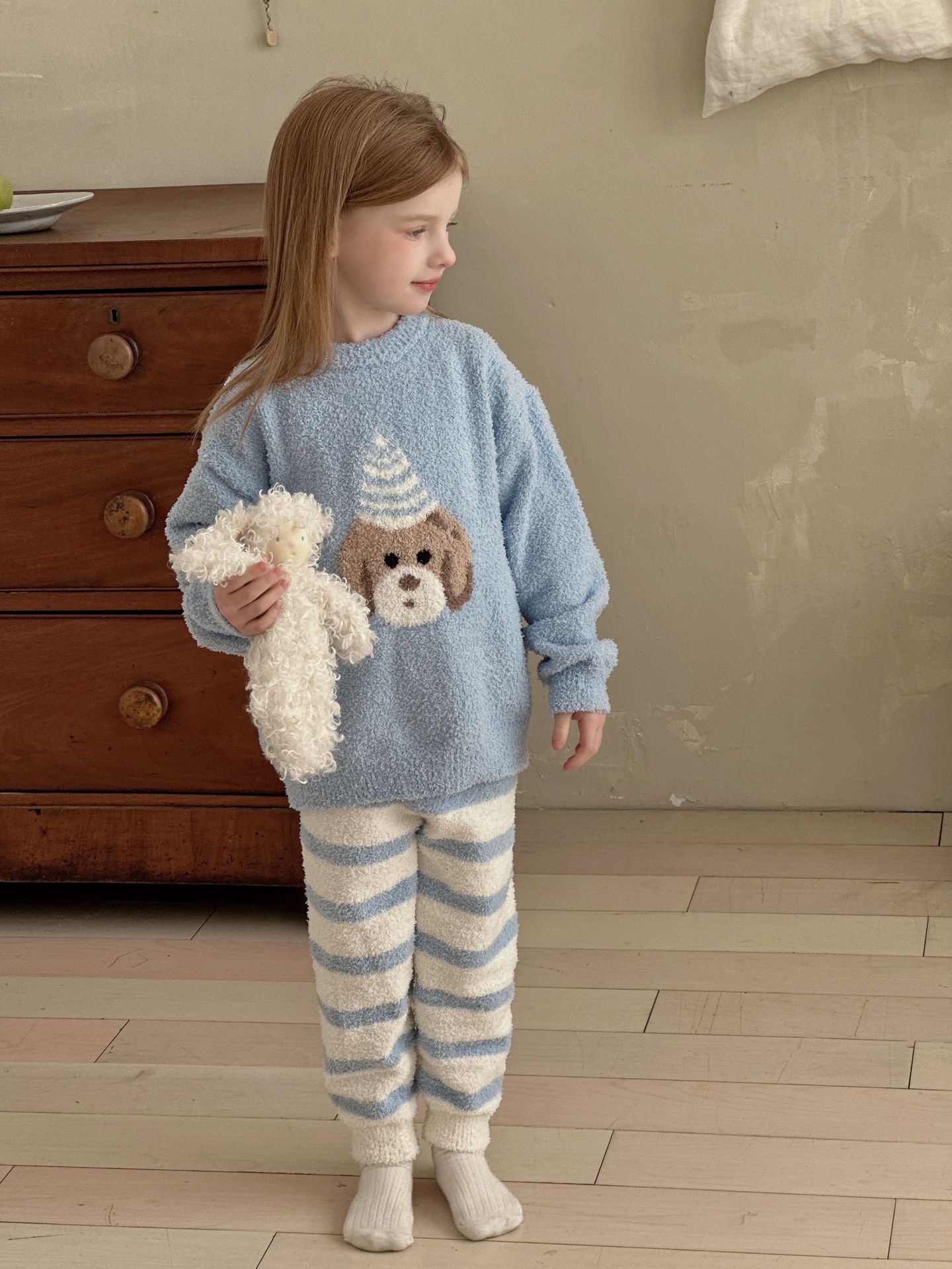 어린이 잠옷 세트 2025 가을 겨울 신상 여아 만화 반벨벳 상의 바지 아기 홈웨어 세트