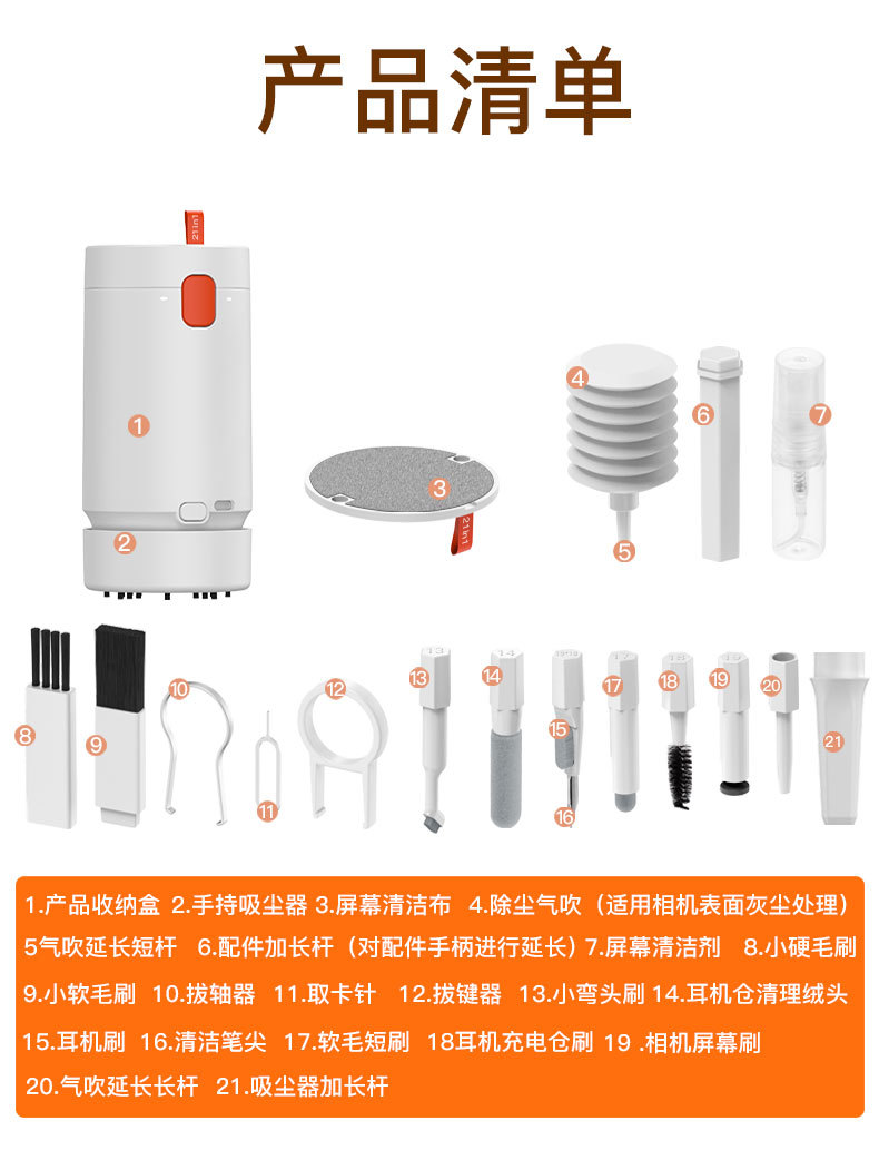 • Q21 ★ 화이트 [21-in-1 다기능 청소 세트]