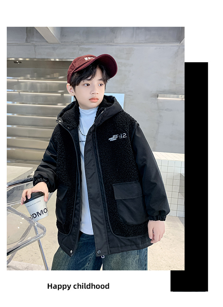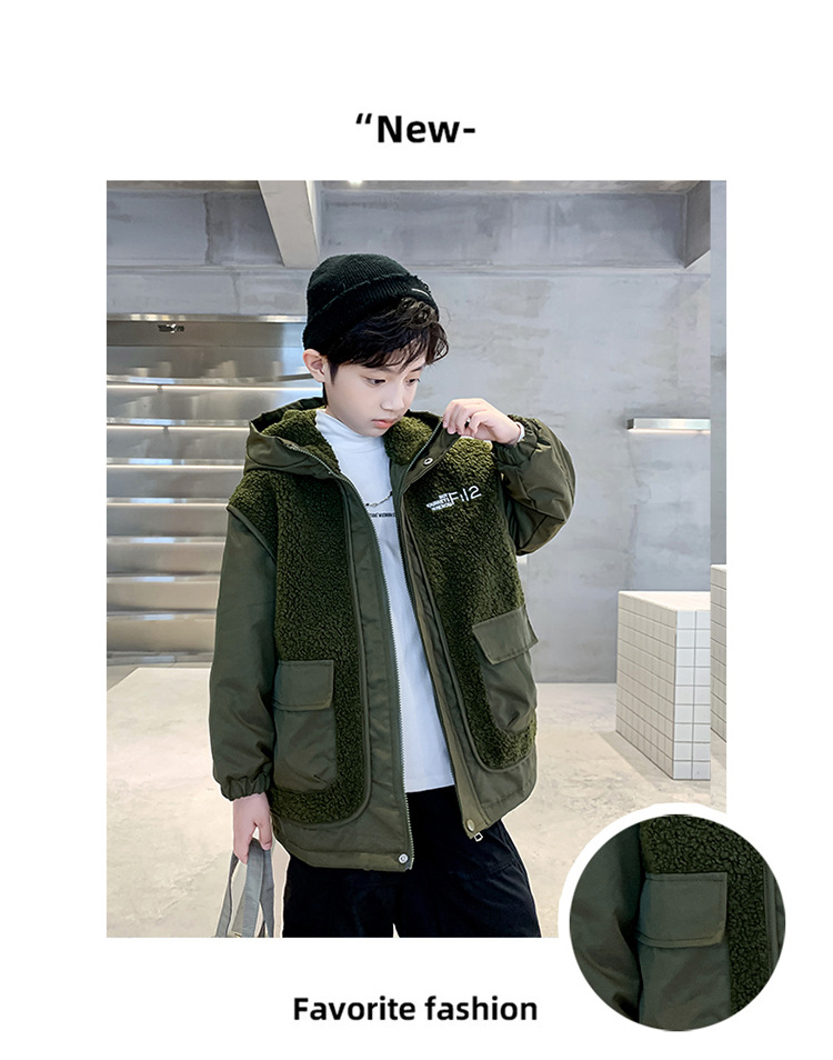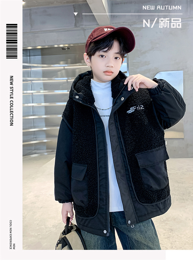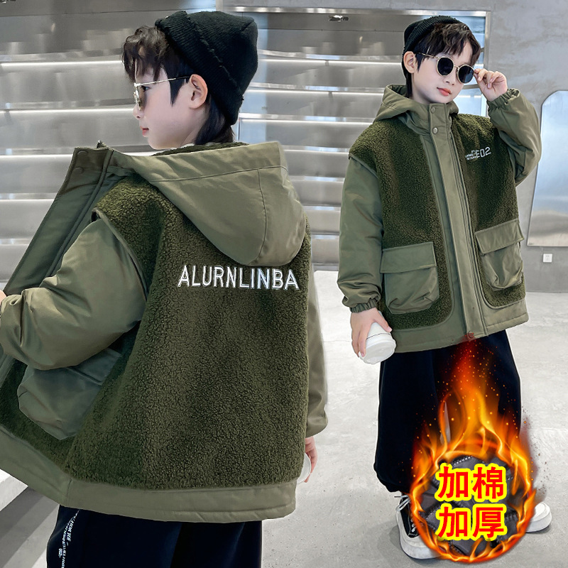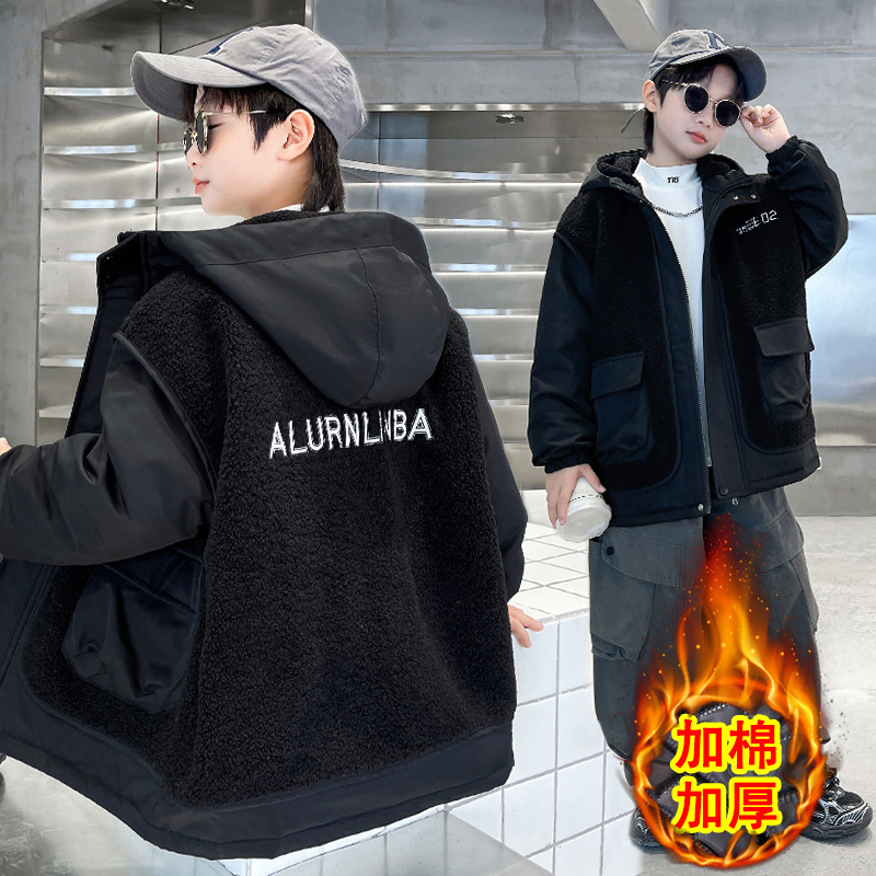 소년의 두꺼운 코트 가을, 겨울 2025 새로운 어린이 양털 스웨터 중형 및 대형 어린이 퀼트 소년 트렌디하고 멋집니다.스토어 가기