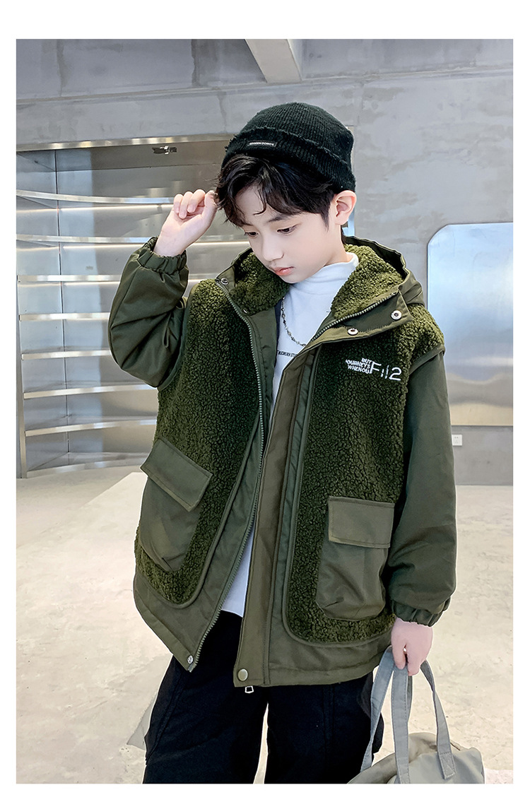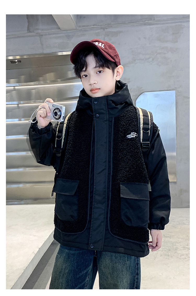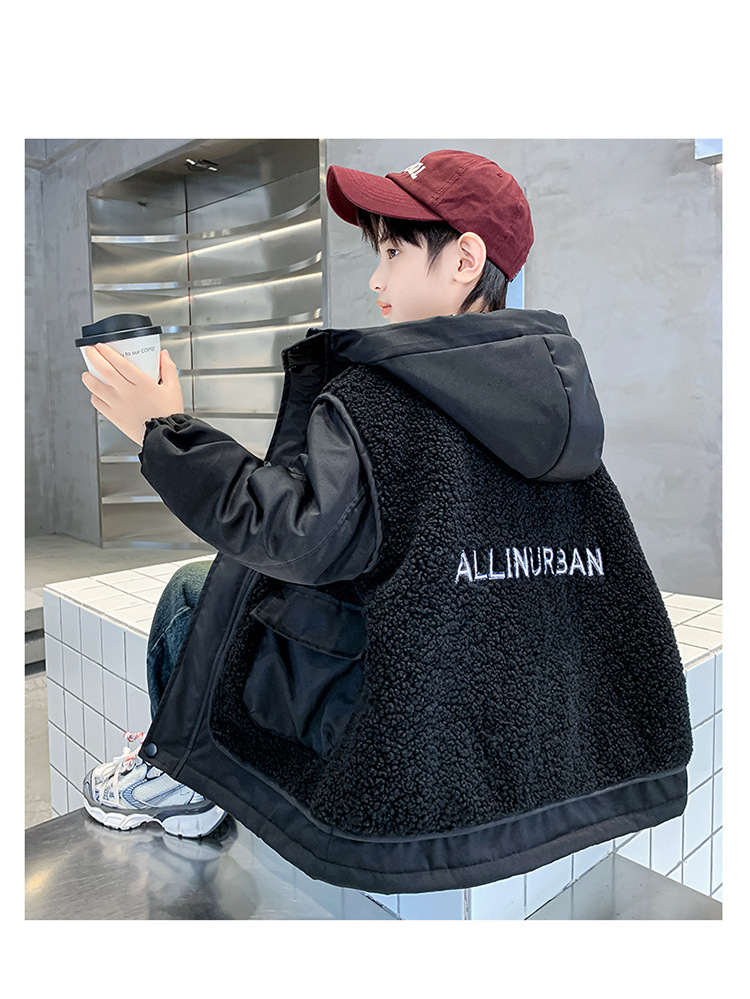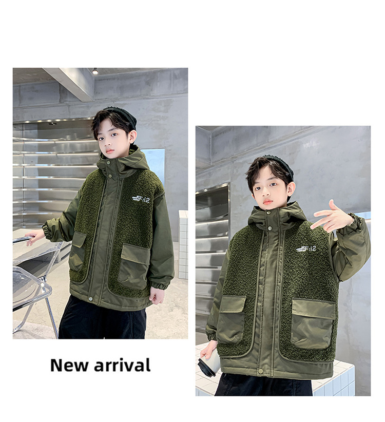 소년의 두꺼운 코트 가을, 겨울 2025 새로운 어린이 양털 스웨터 중형 및 대형 어린이 퀼트 소년 트렌디하고 멋집니다.스토어 가기