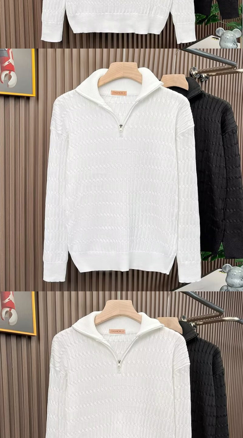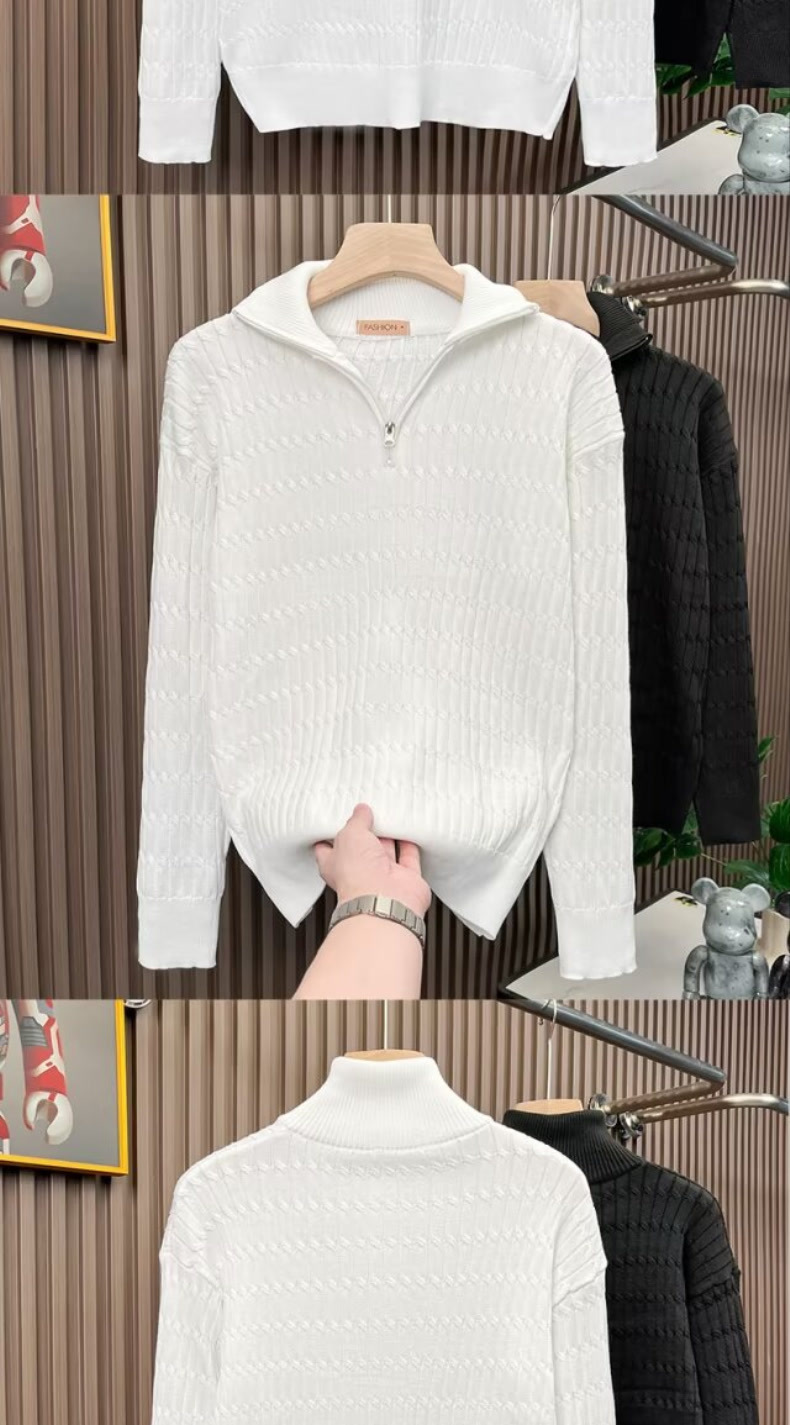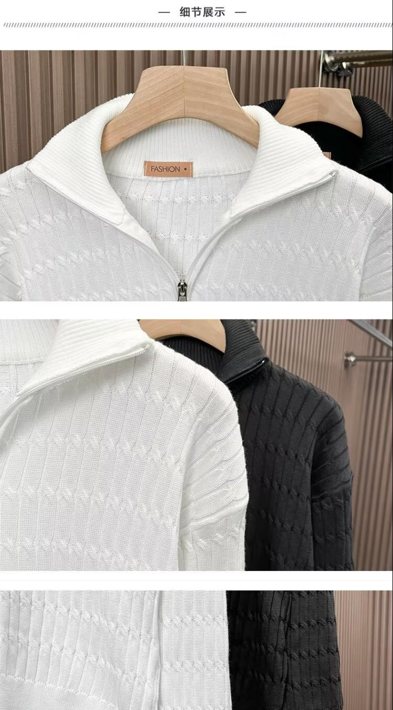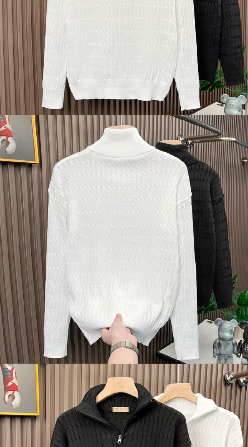 하프 터틀넥 지퍼 자카드 스웨터 남자와 여자 하이 엔드 터틀넥 긴소매 스웨터 패셔너블 올 매치 탑 재킷스토어 가기