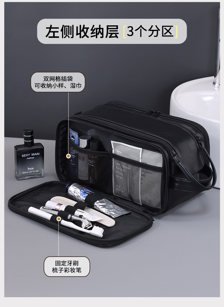 국경 간 새로운 3 오픈 다기능 PU 남성 워시 백 대용량 고급 화장품 가방 화장품 보관 가방스토어 가기