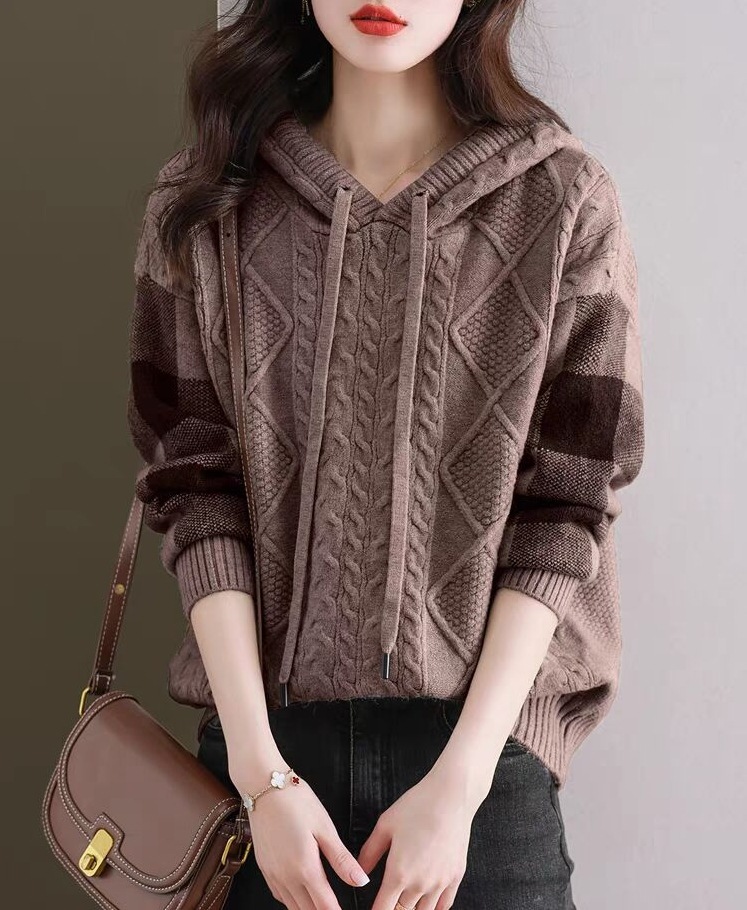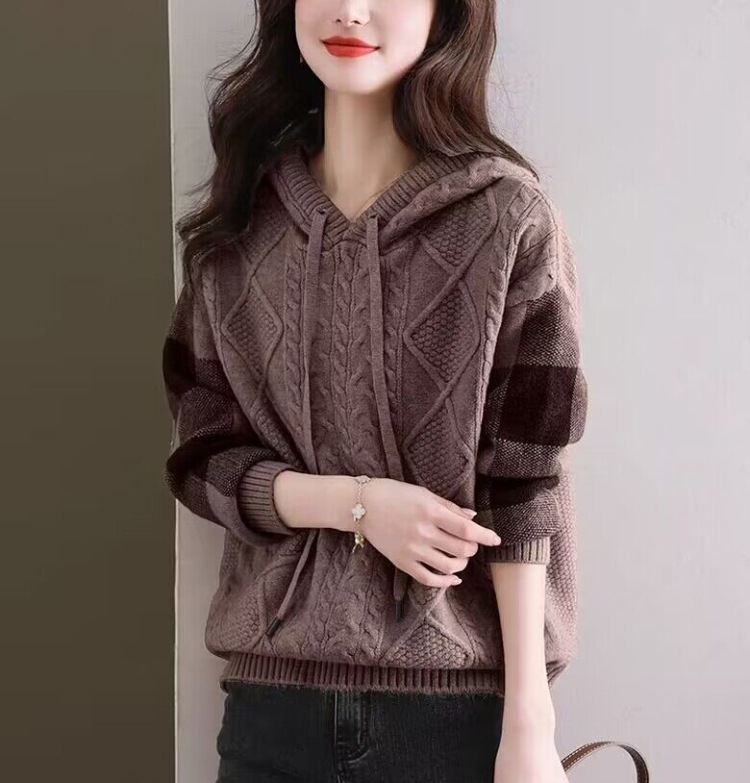 스웨터 여성의 가을과 겨울 2023 새로운 게으른 스타일 캐주얼 후드 느슨한 니트 셔츠 긴 소매 탑베이스 셔츠스토어 가기