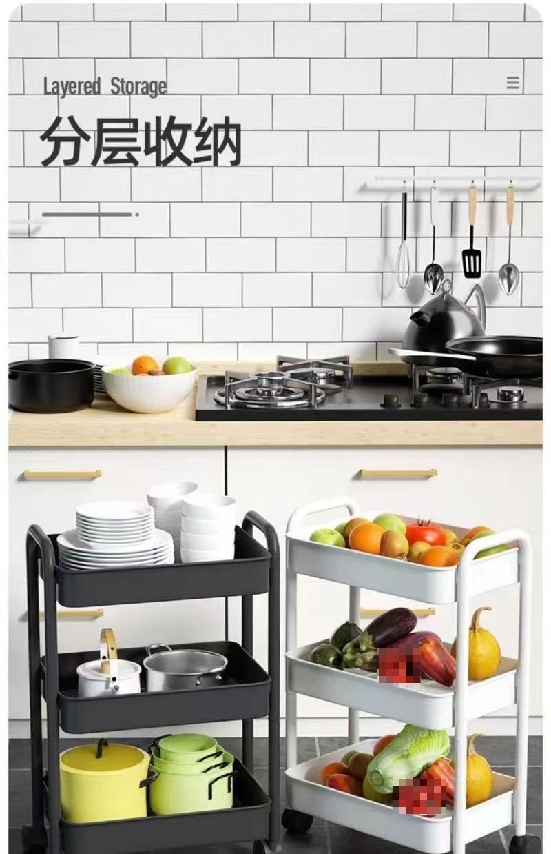 厨房收纳置物架落地家用可移动多层储物架小推车多功能蔬菜篮子架스토어 가기