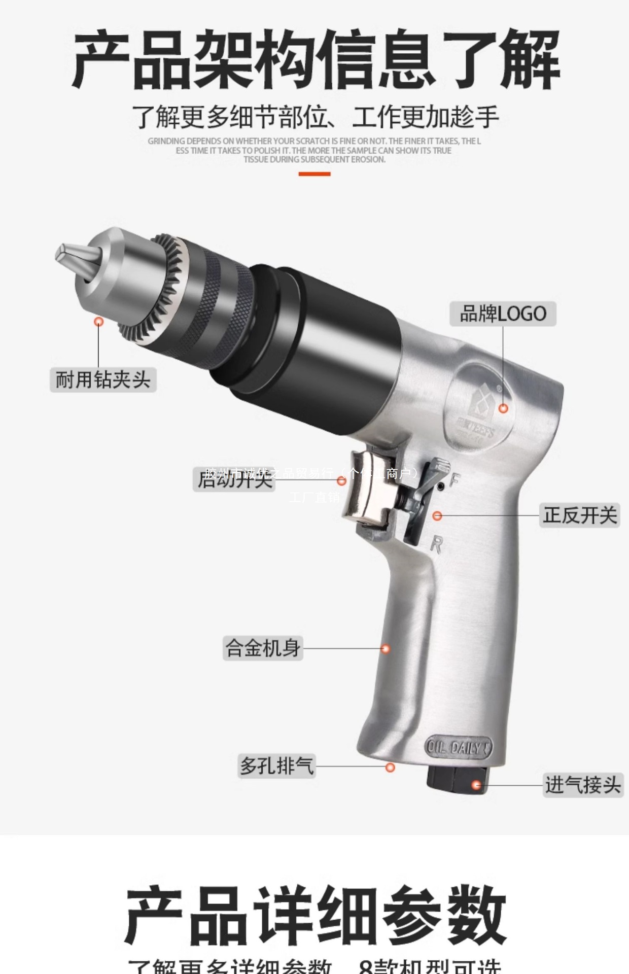 Tian Feng Gun 에어 드릴 공압 핸드 건 드릴 공압 드릴링 머신 태핑 머신 에어 드릴 스크루 드라이버 펀칭 벨트 포지티브 및 리버스스토어 가기