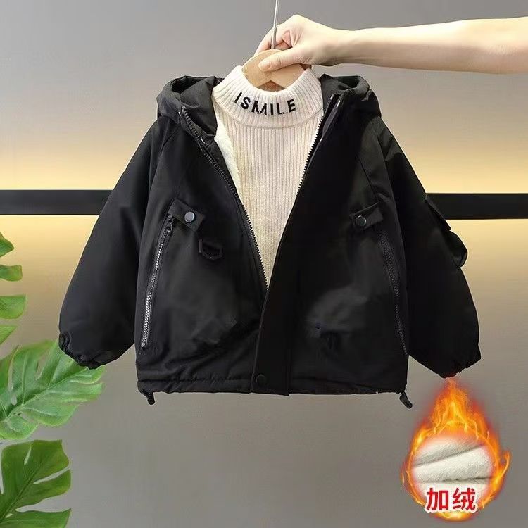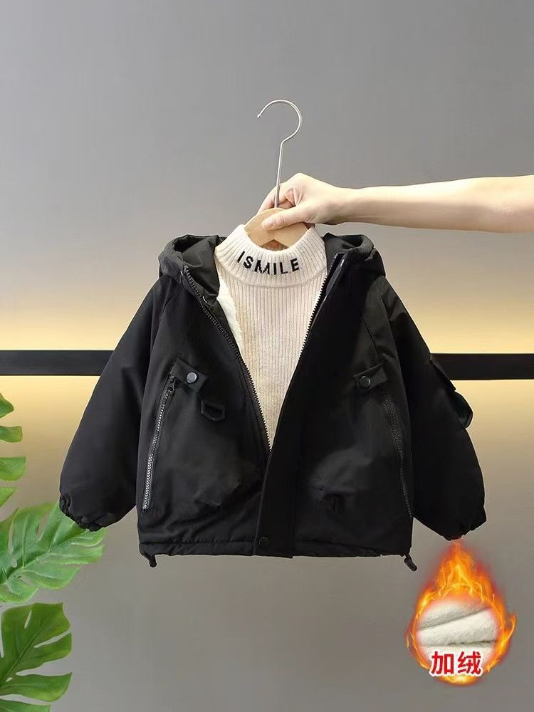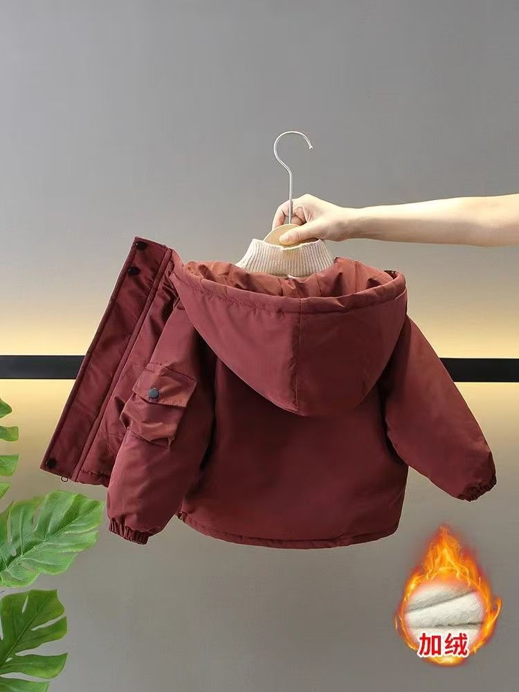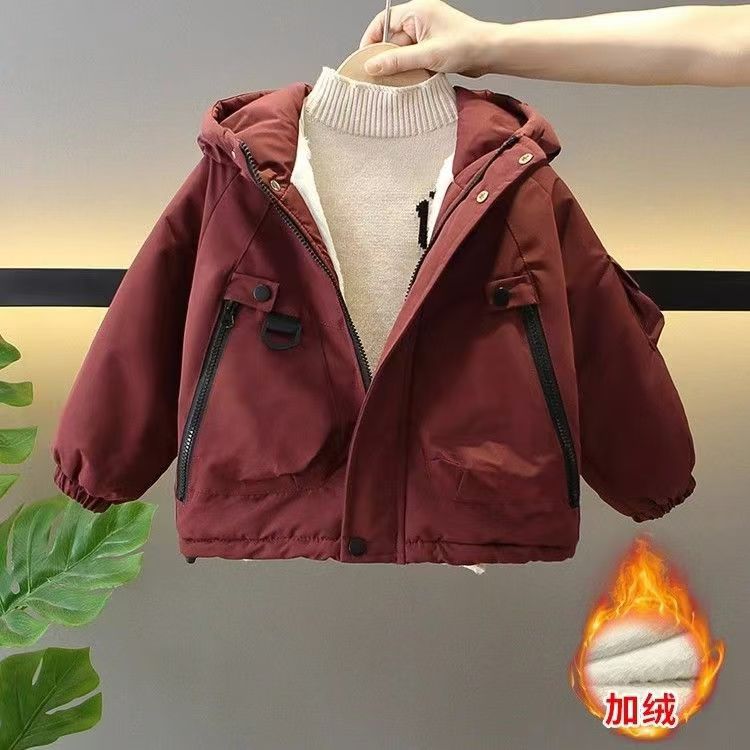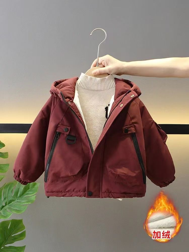 2024 뉴 보이즈 벨벳 재킷 어린이 파이크 의류 가을과 겨울 레드 아동면 패딩 재킷 겨울 옷 베이비 탑스토어 가기