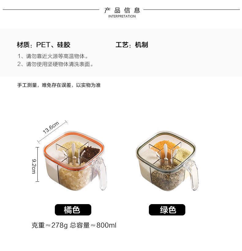 조미료 상자 통합 주방 다기능 투명 조미료 항아리 소금 후추 MSG 조합 조미료 상자 저장 용기 가정용스토어 가기