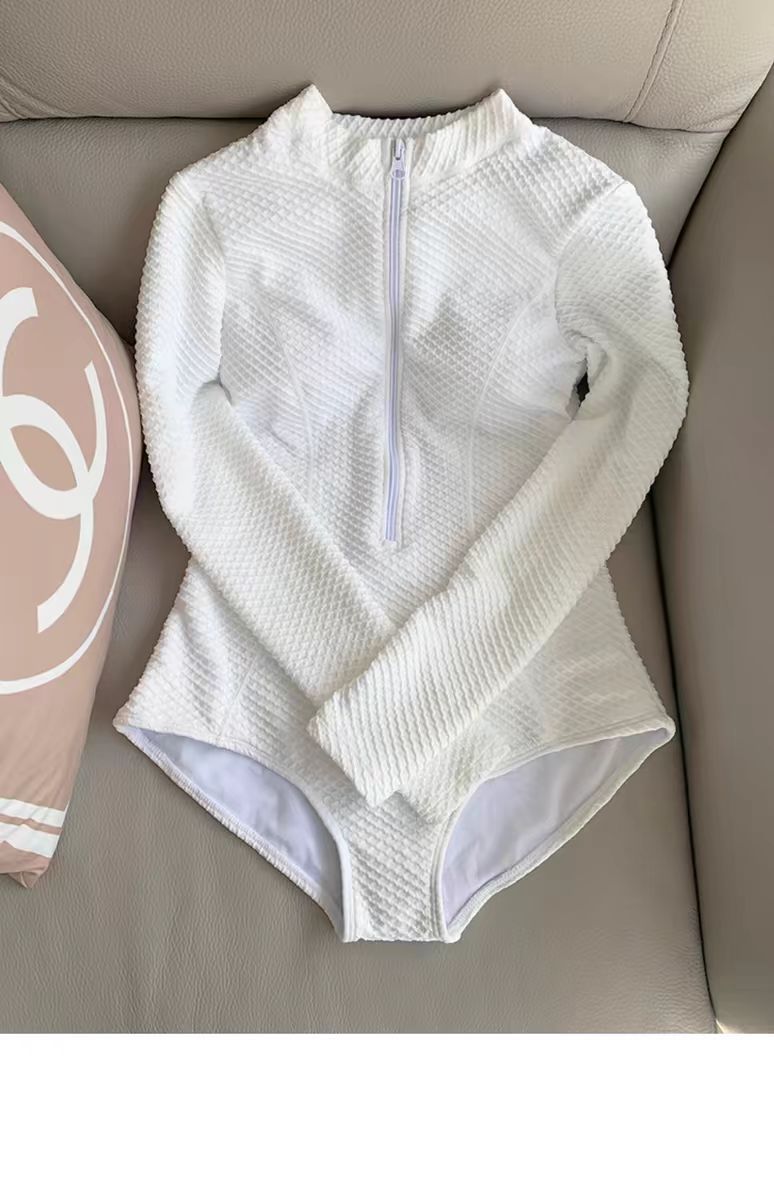흰색 긴팔 수영복 아마존 2025 새로운 도착 수영복 여성 솔리드 컬러 온천 다이빙 세트 국경 간 공급스토어 가기