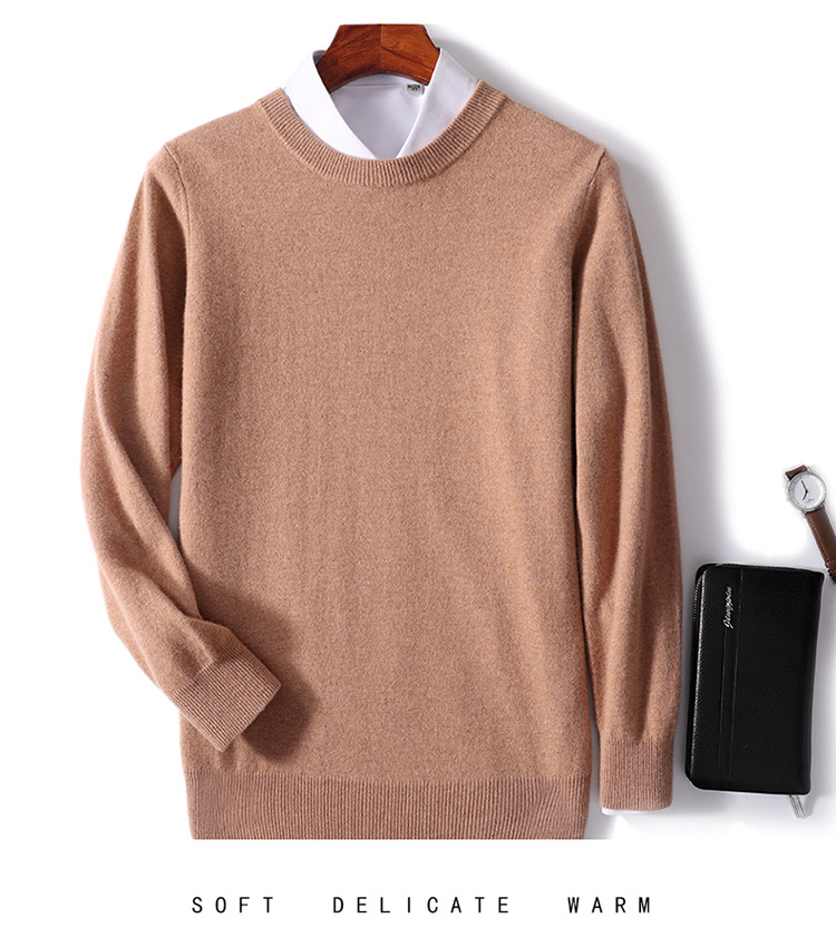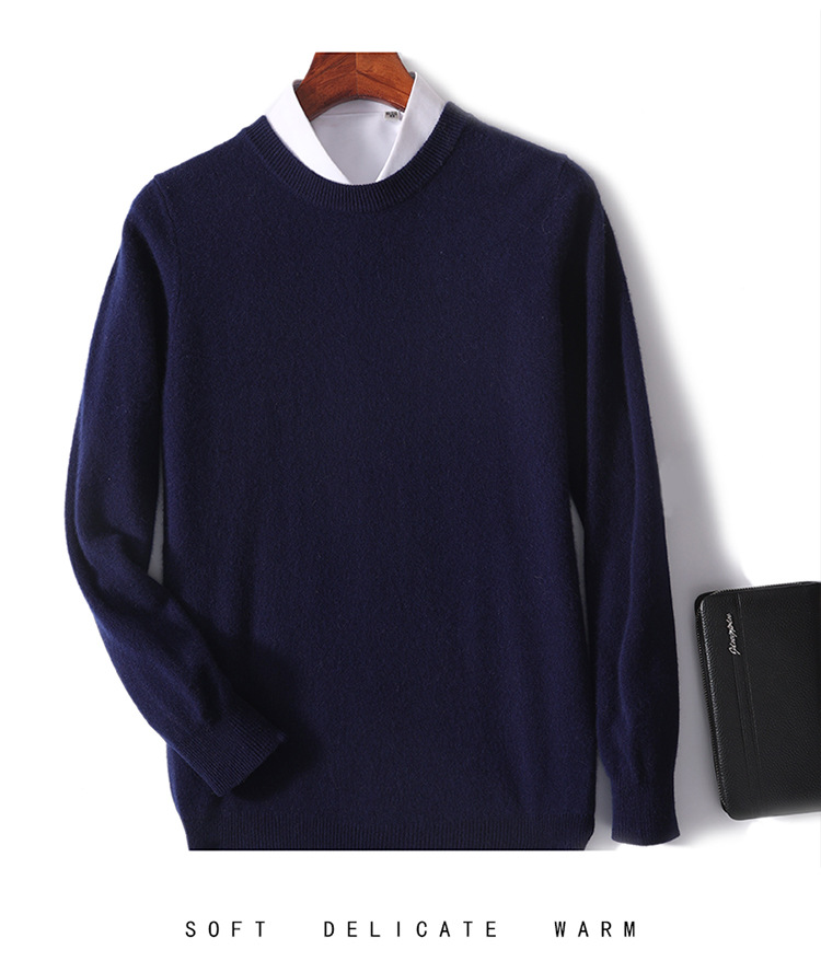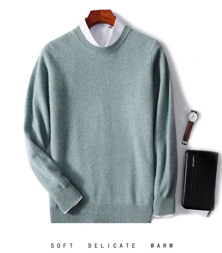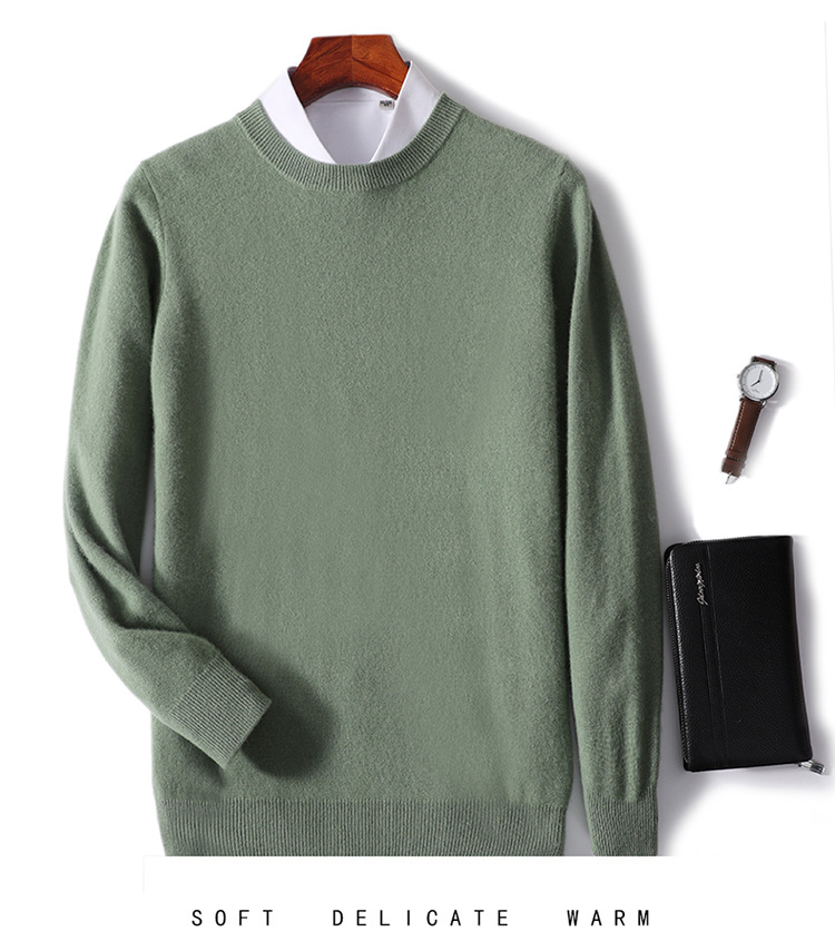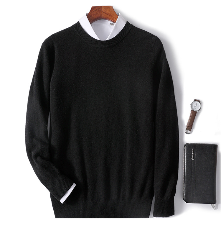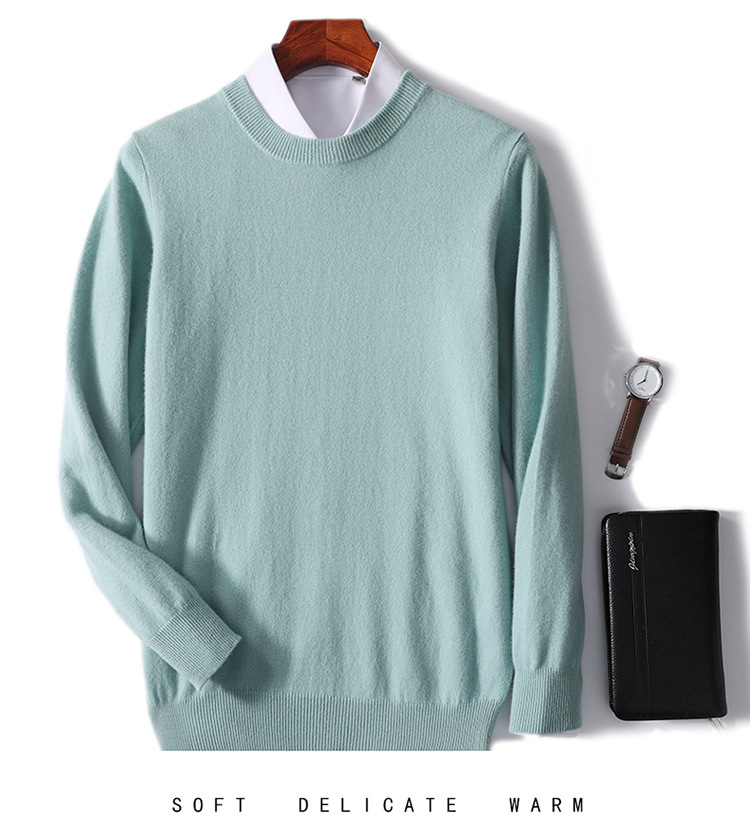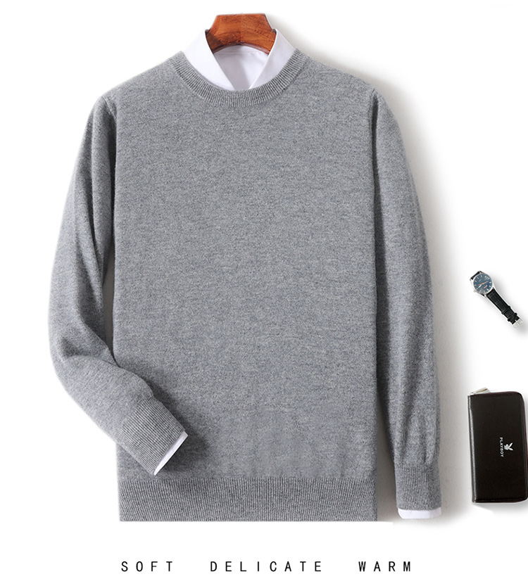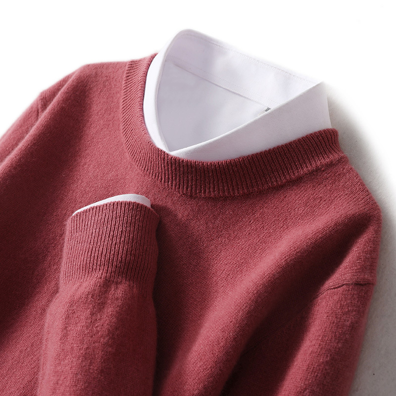 가을과 겨울 2024 새로운 순수 양모 크루 넥 남성용 스웨터 풀오버 솔리드 컬러 따뜻한 루즈베이스 셔츠 스웨터