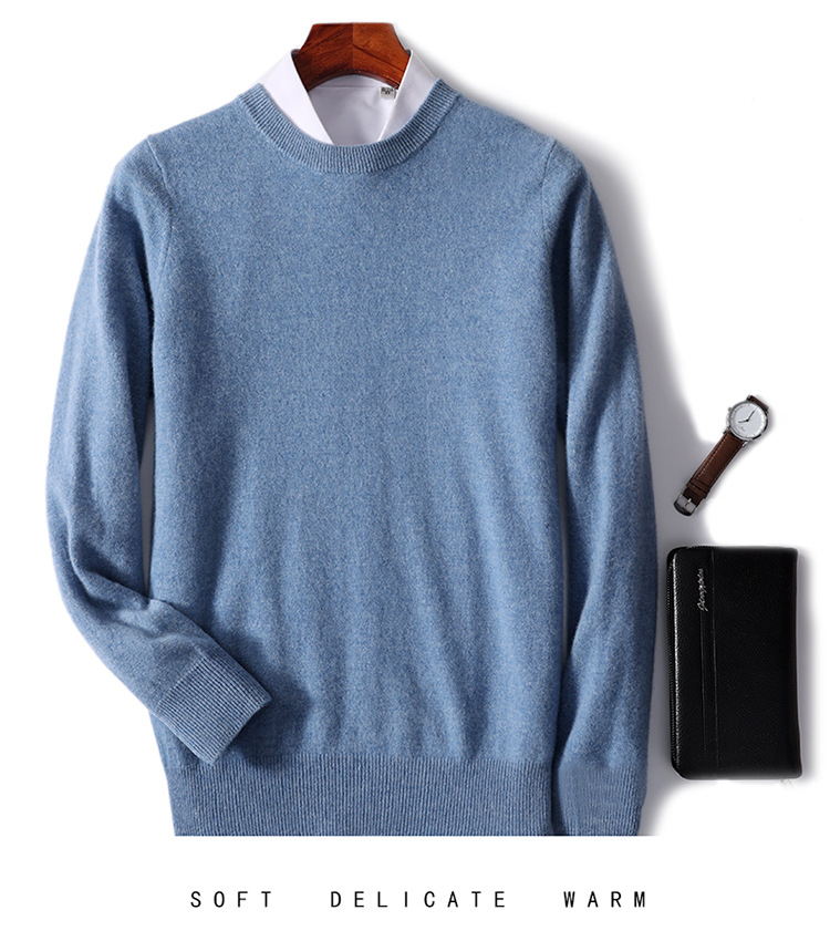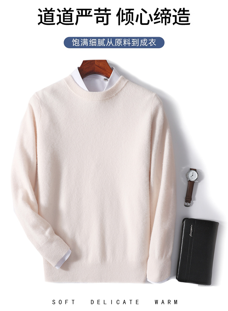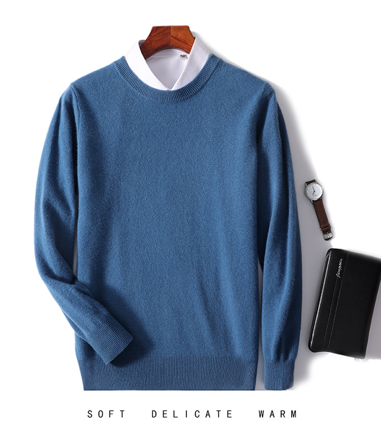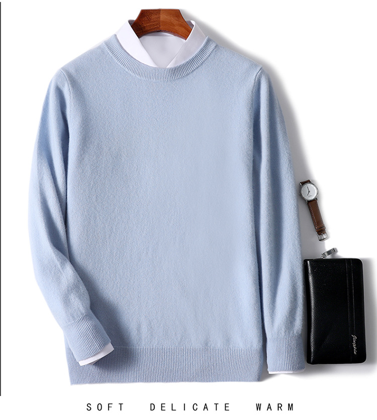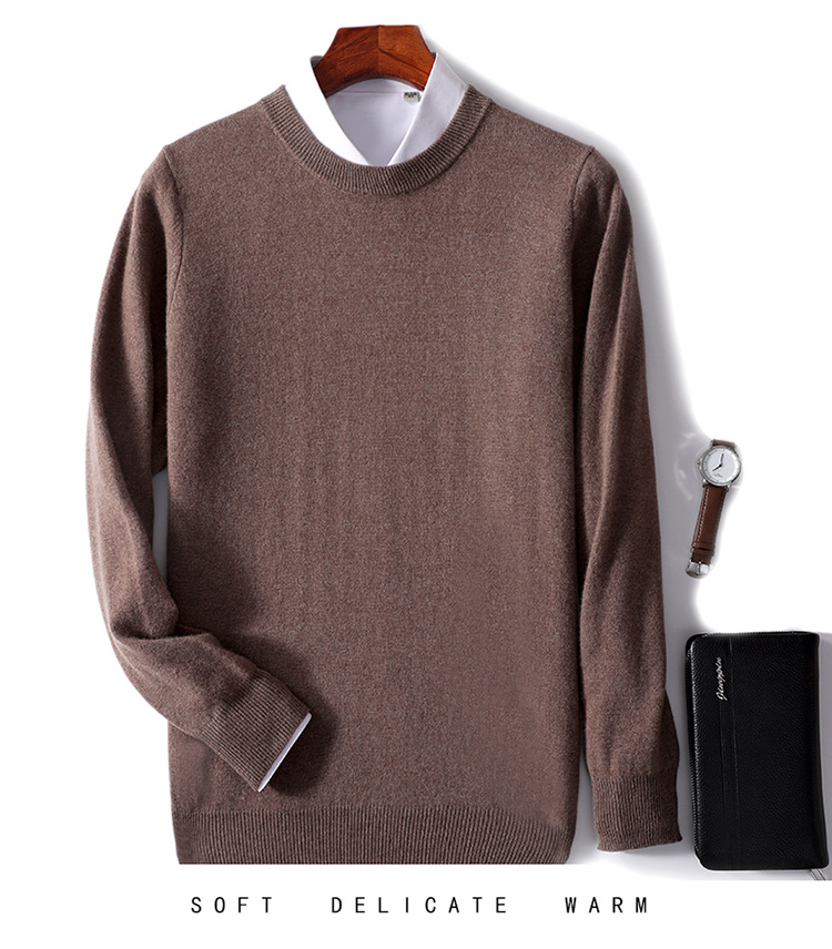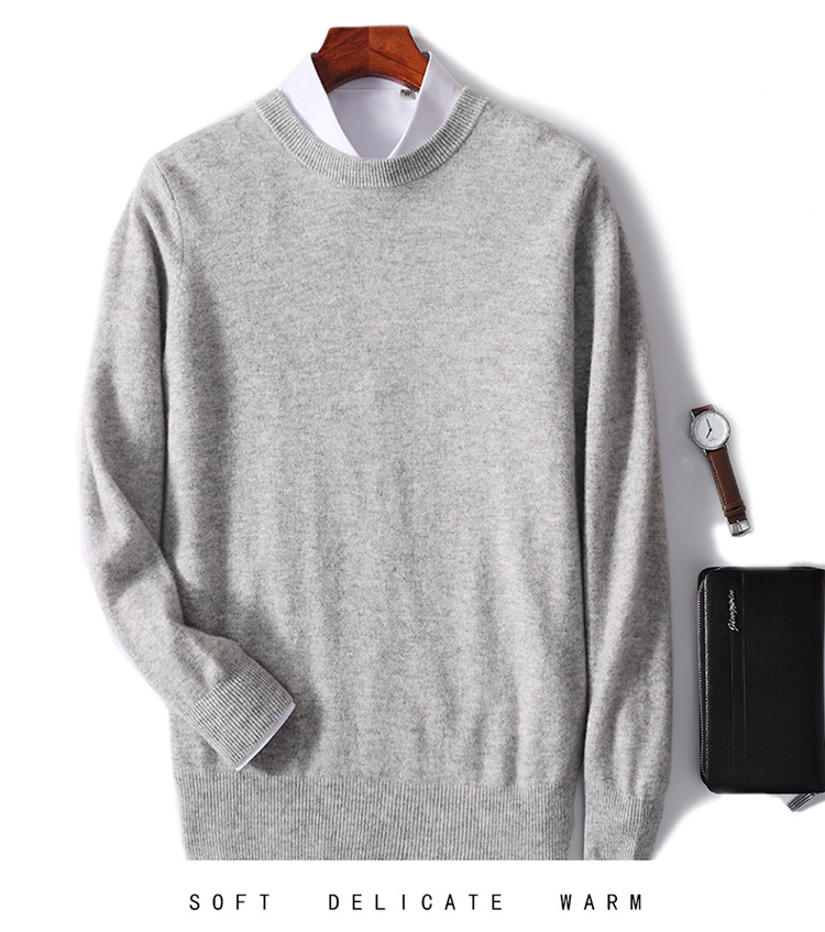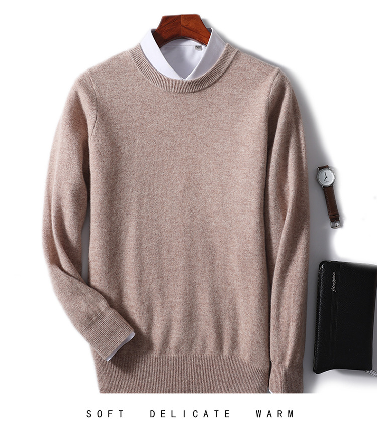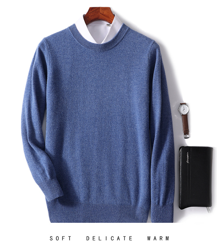 가을과 겨울 2024 새로운 순수 양모 크루 넥 남성용 스웨터 풀오버 솔리드 컬러 따뜻한 루즈베이스 셔츠 스웨터