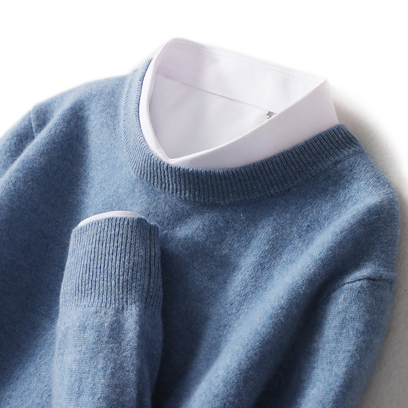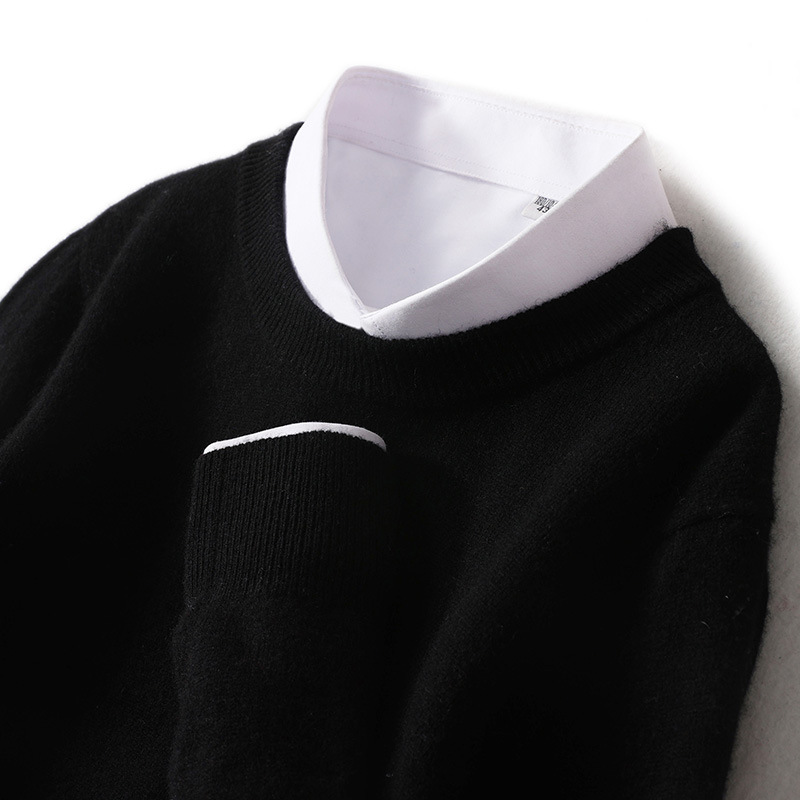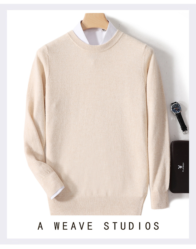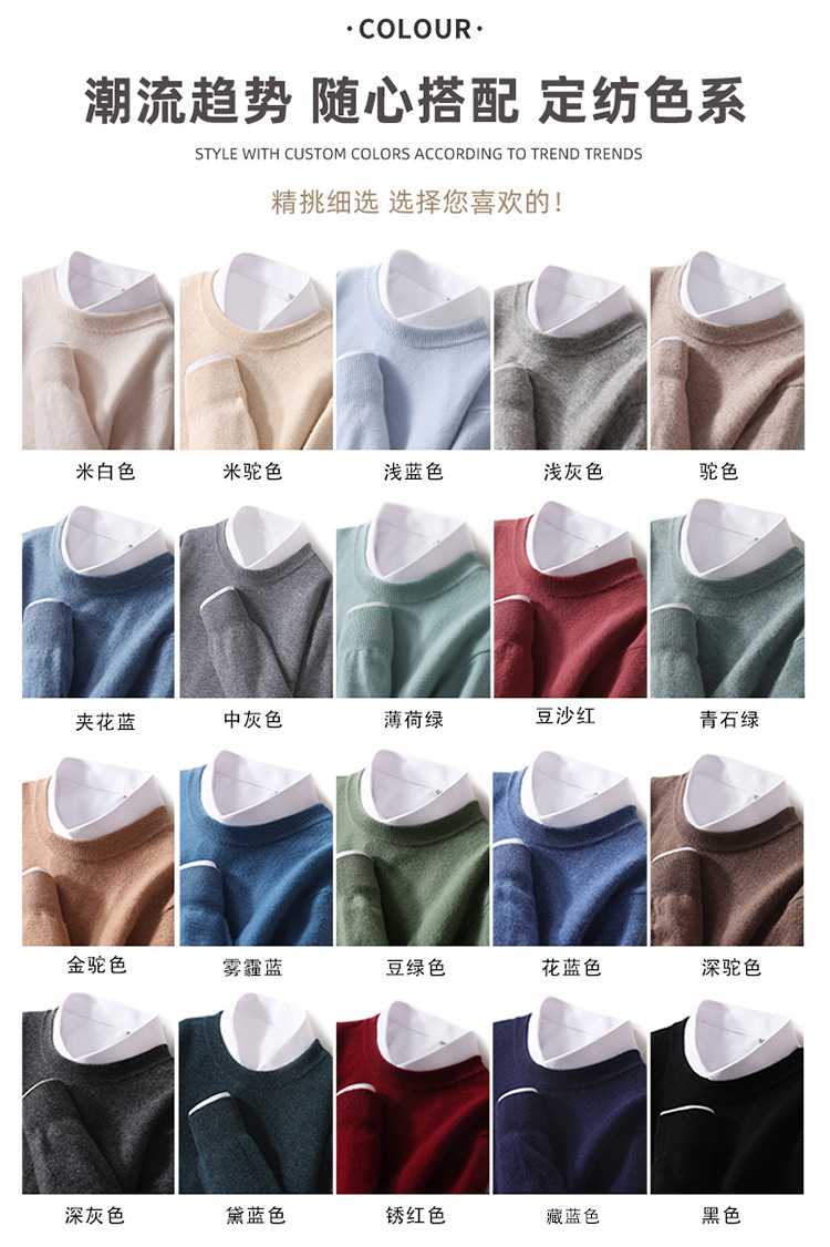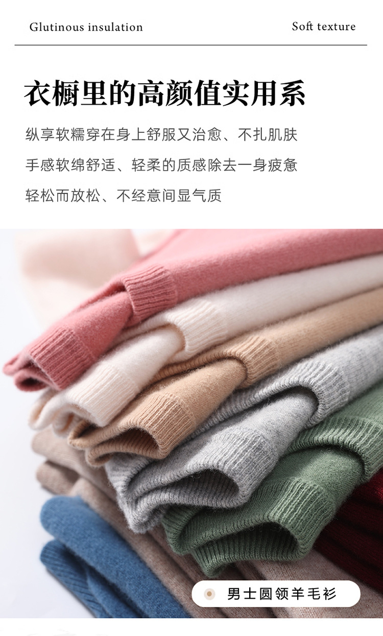 가을과 겨울 2024 새로운 순수 양모 크루 넥 남성용 스웨터 풀오버 솔리드 컬러 따뜻한 루즈베이스 셔츠 스웨터스토어 가기